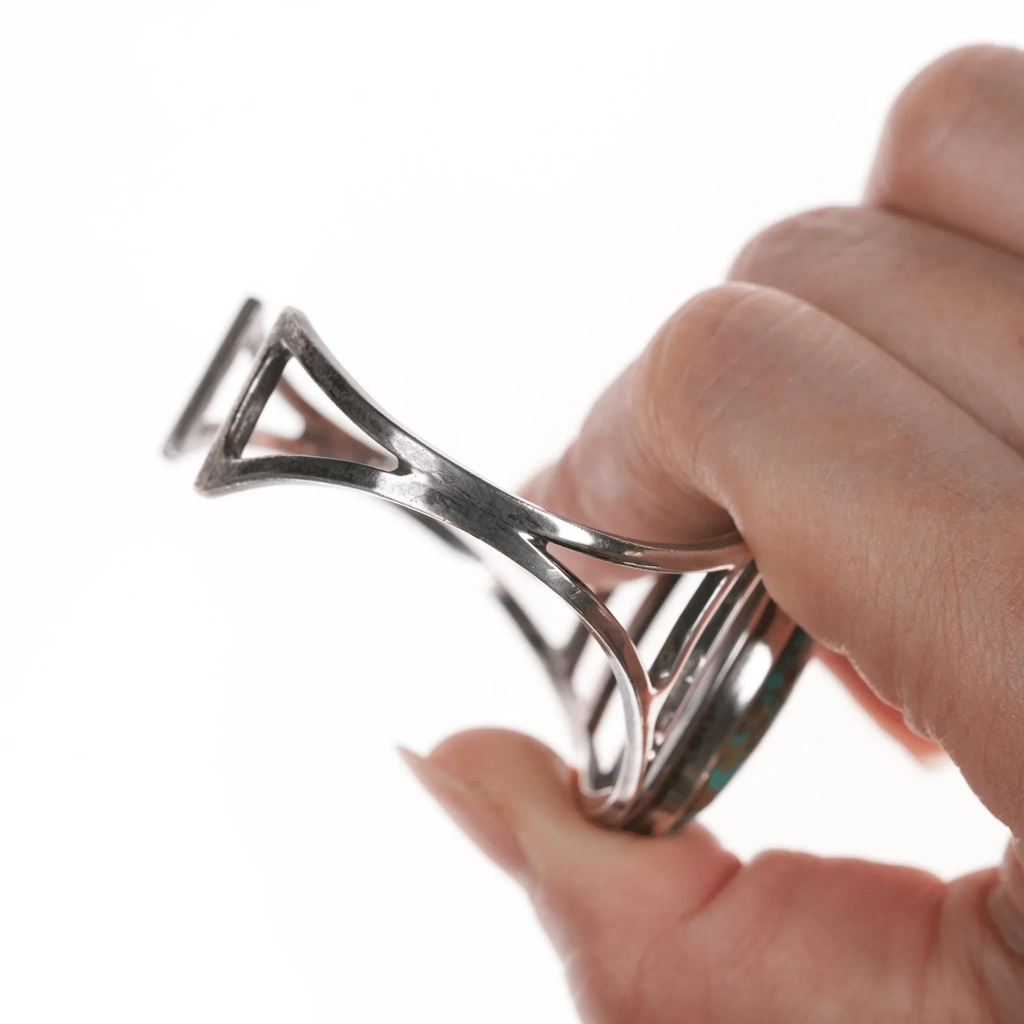 6 3/8" Vintage Native American silver and cobblestone turquoise cuff bracelet<br><br>Marked or unmarked as shown in pics, weight and other measurements in pics. Sorry but my jewelry is stored in a secure location and cannot be accessed for more pictures,<br>videos, or measurements until sold. If you look at pictures/description your<br>question should be answered. Thank you so much for your time and consideration!<br><br>All precious metals are tested and guaranteed. A Native American jewelry piece referred to as "silver" or "ingot" is guaranteed to be at least 90% silver. Bracelets are photographed on a 6" women's wrist.