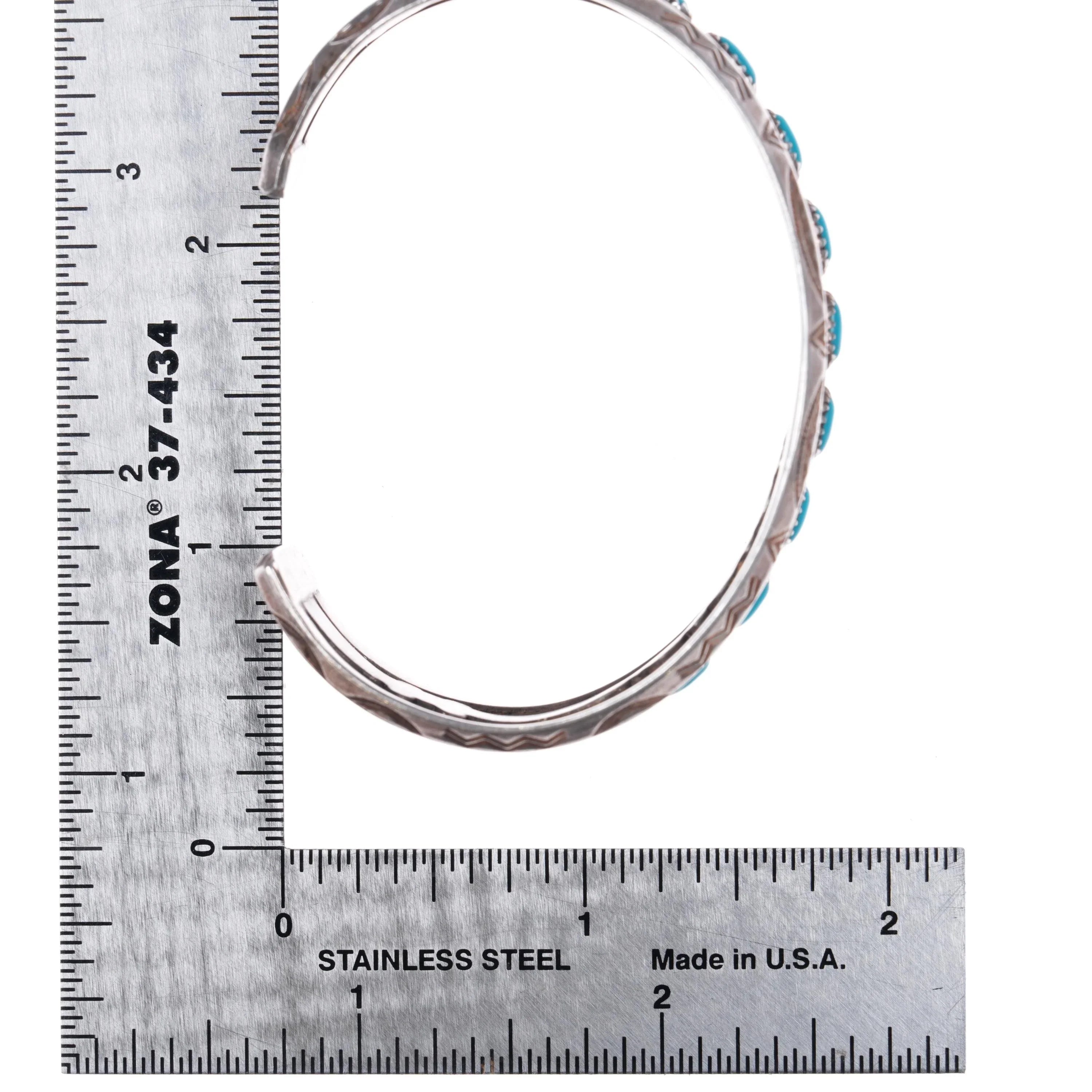6.3" Bell Trading Post Sterling silver carinated turquoise row cuff bracelet