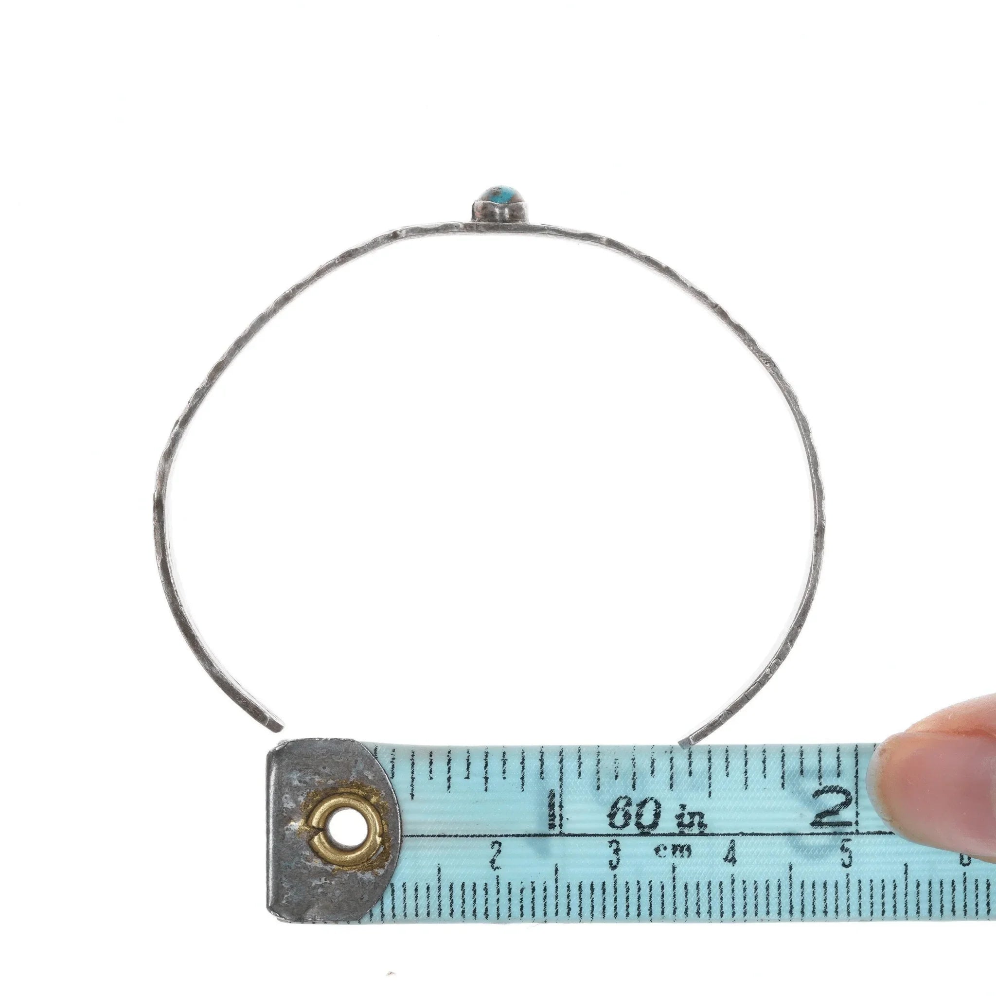 6.35" 30's-40's Stamped Silver Cuff Bracelet with turquoise 9 mm wide in center,<br>weight and other measurements in pics, no issues, unmarked or marked as shown.<br><br>All precious metals are tested and guaranteed, any Native American jewelry<br>referred to as Silver or Sterling is guaranteed to be a minimum of 90% (coin)<br>silver and possibly higher content. Anything marked is guaranteed to be what<br>it's marked, most bracelets are photographed on a 6" wrist (non hairy), rings<br>photographed on the appropriate sized finger when possible. With bracelets if<br>the measurement is not given in the description then inside circumference is<br>shown where the metal meets the number on the the cloth tape measure.