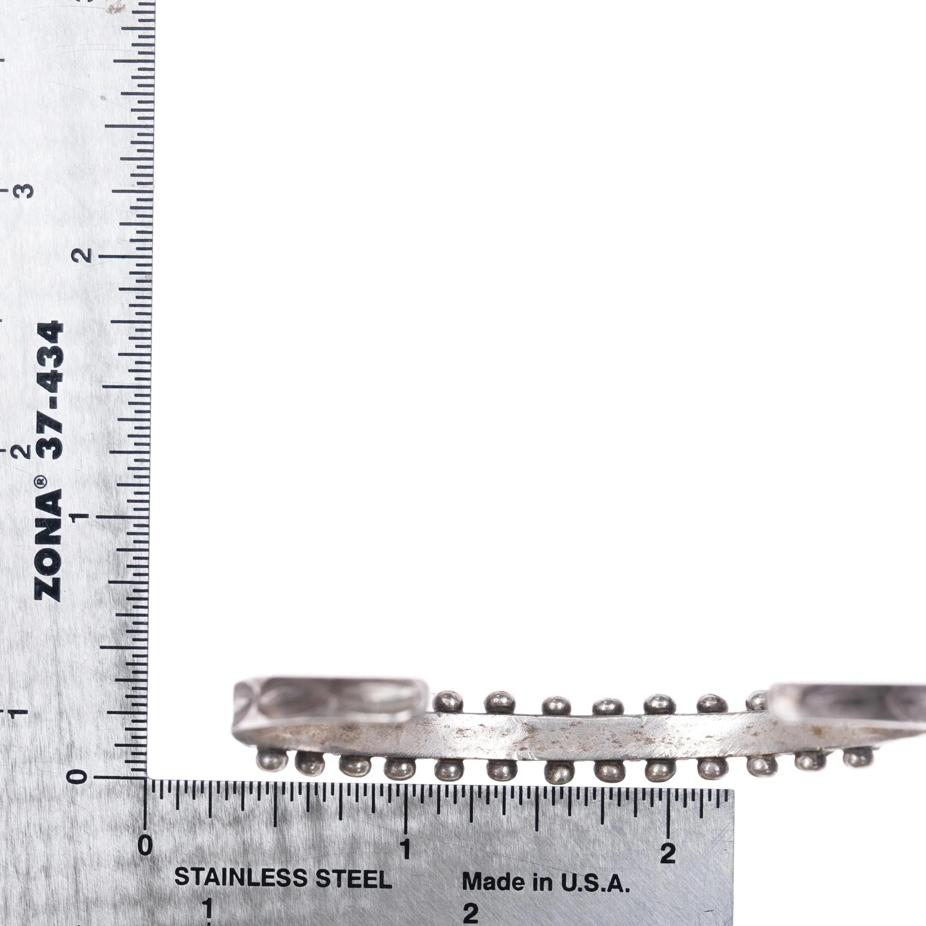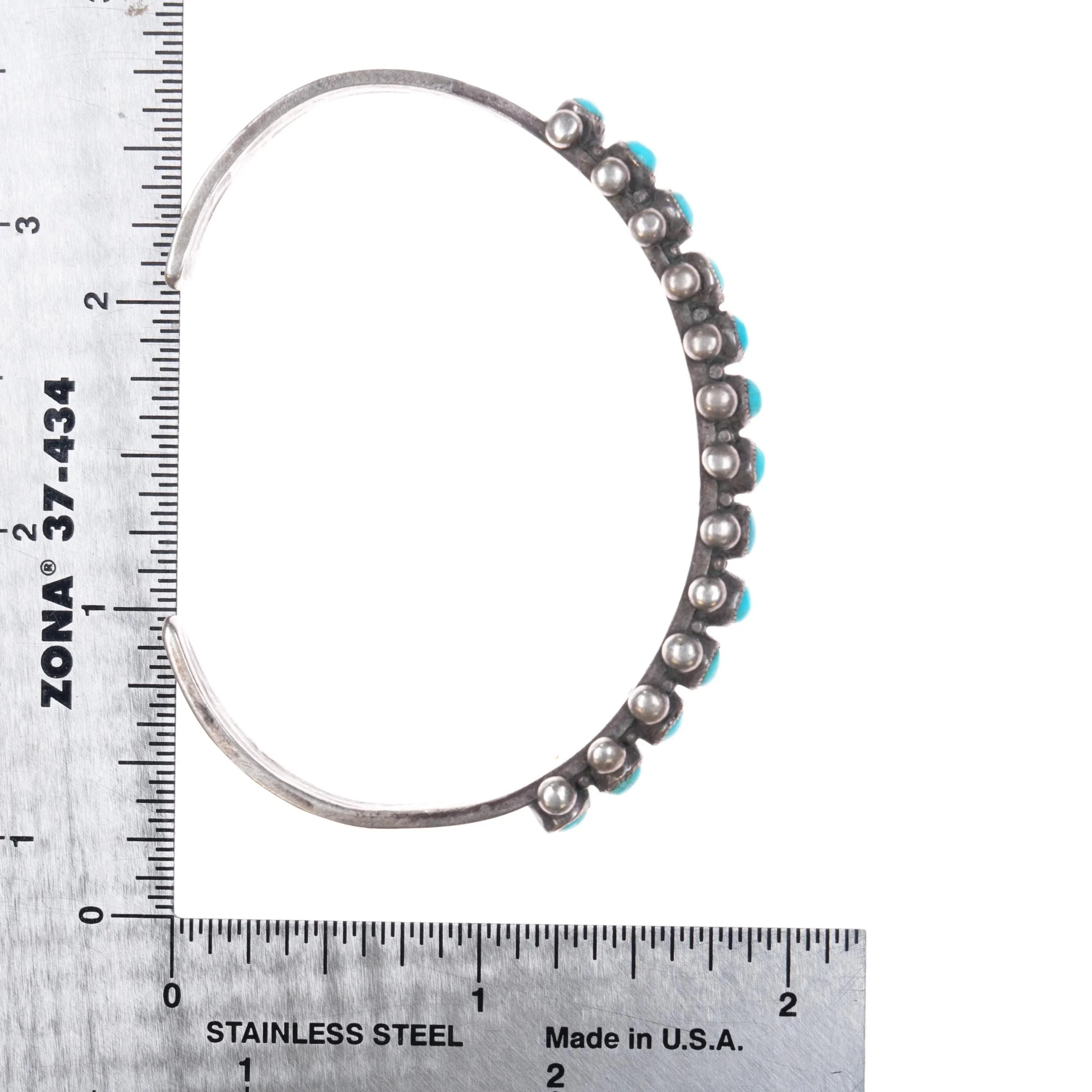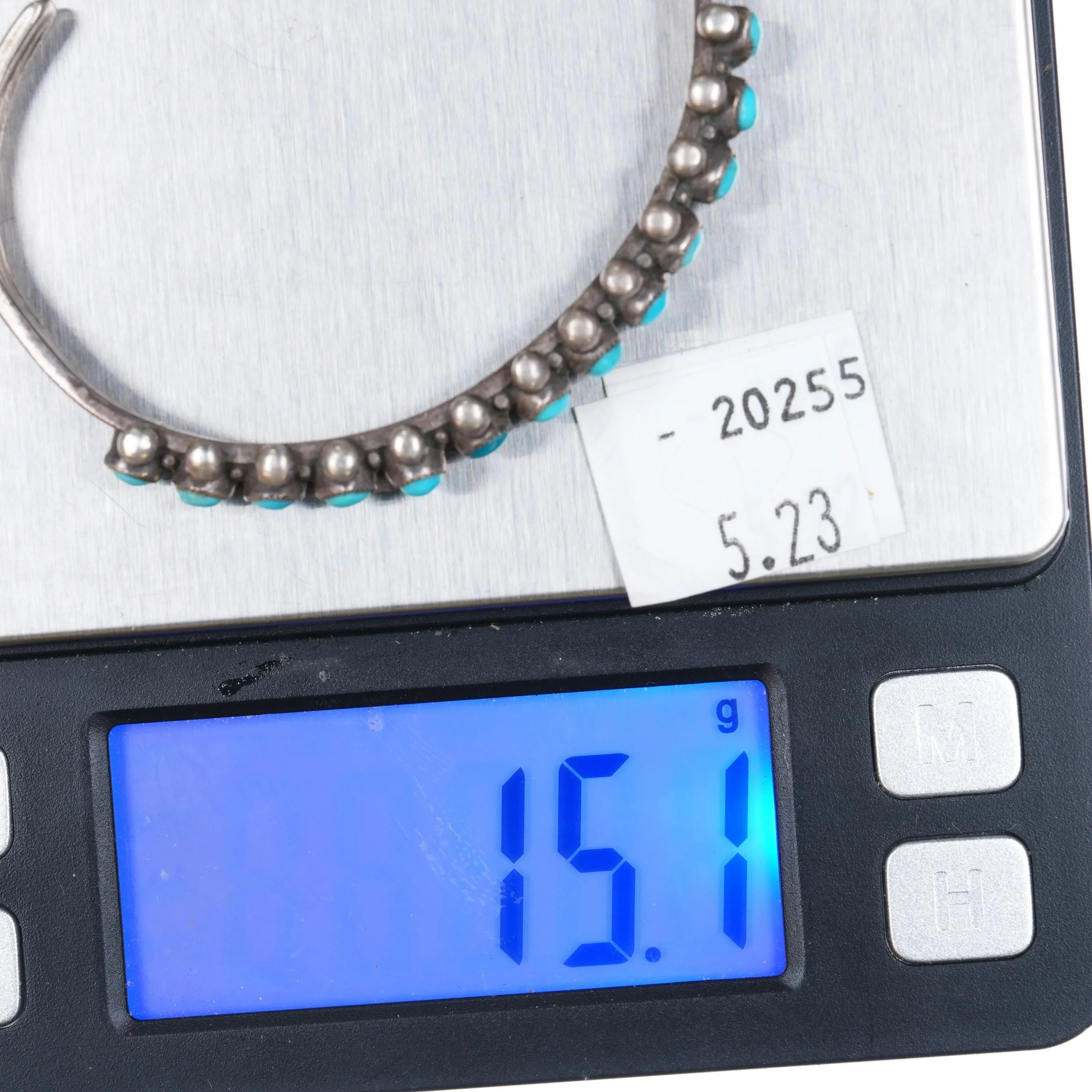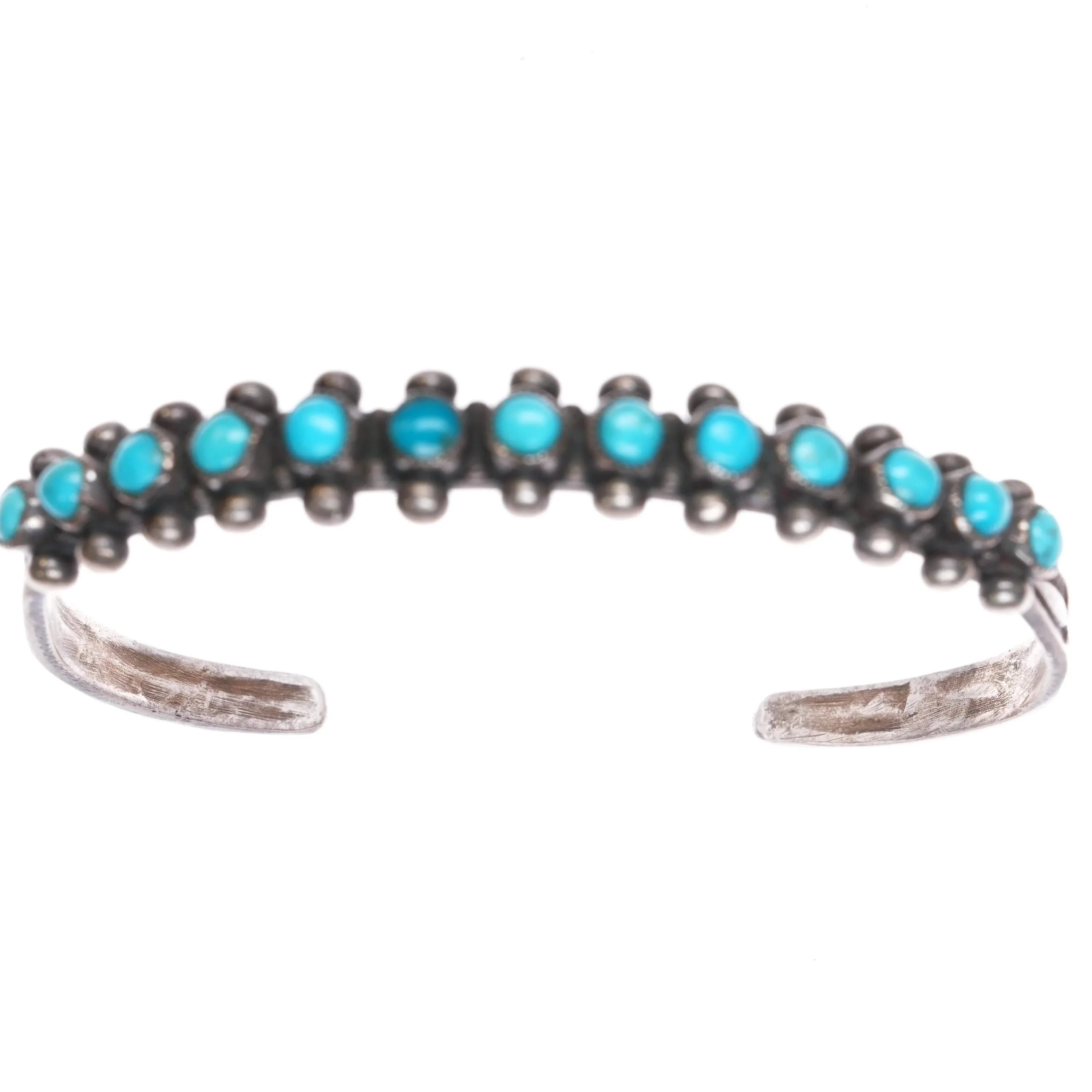 6.35" c1940 Zuni stamped sterling silver snake eye turquoise row cuff bracelet
