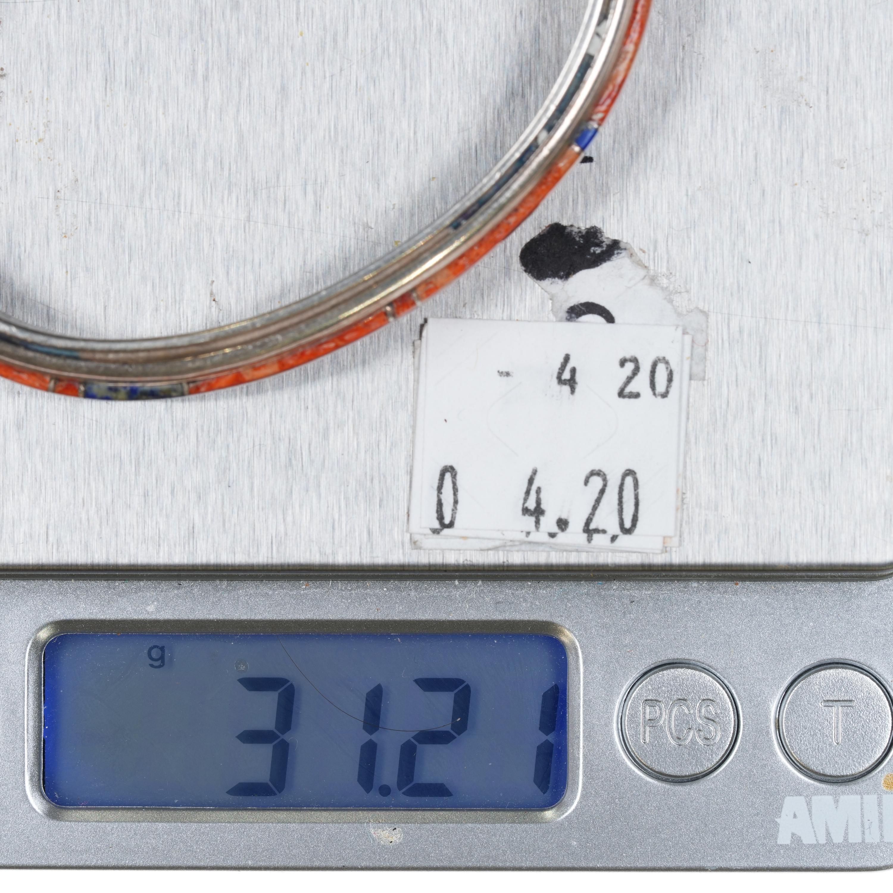 6.35" Navajo sterling silver Sponge coral Lapis channel inlay cuff bracelet. Weight and measurements in pictures, solid sterling silver with no issues.