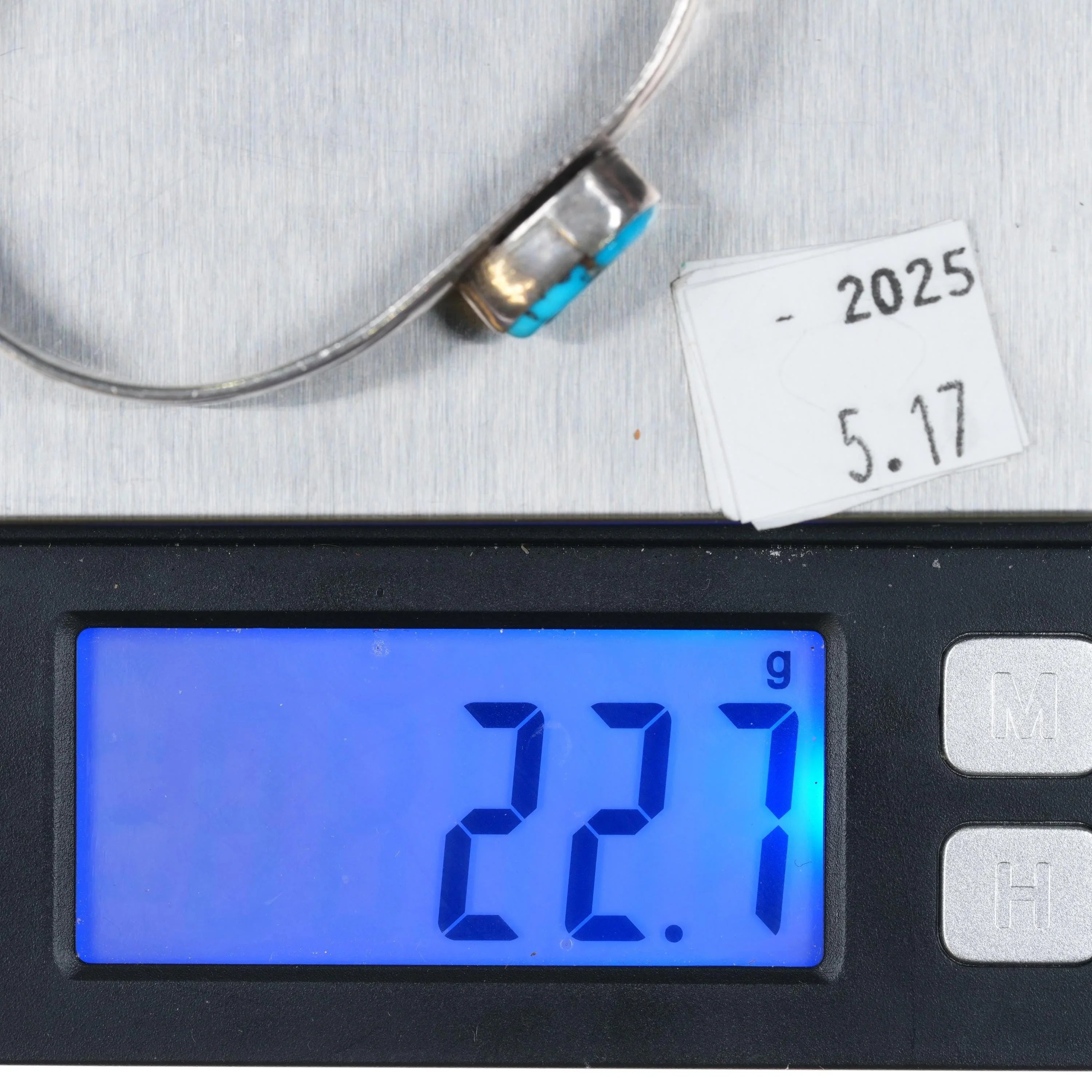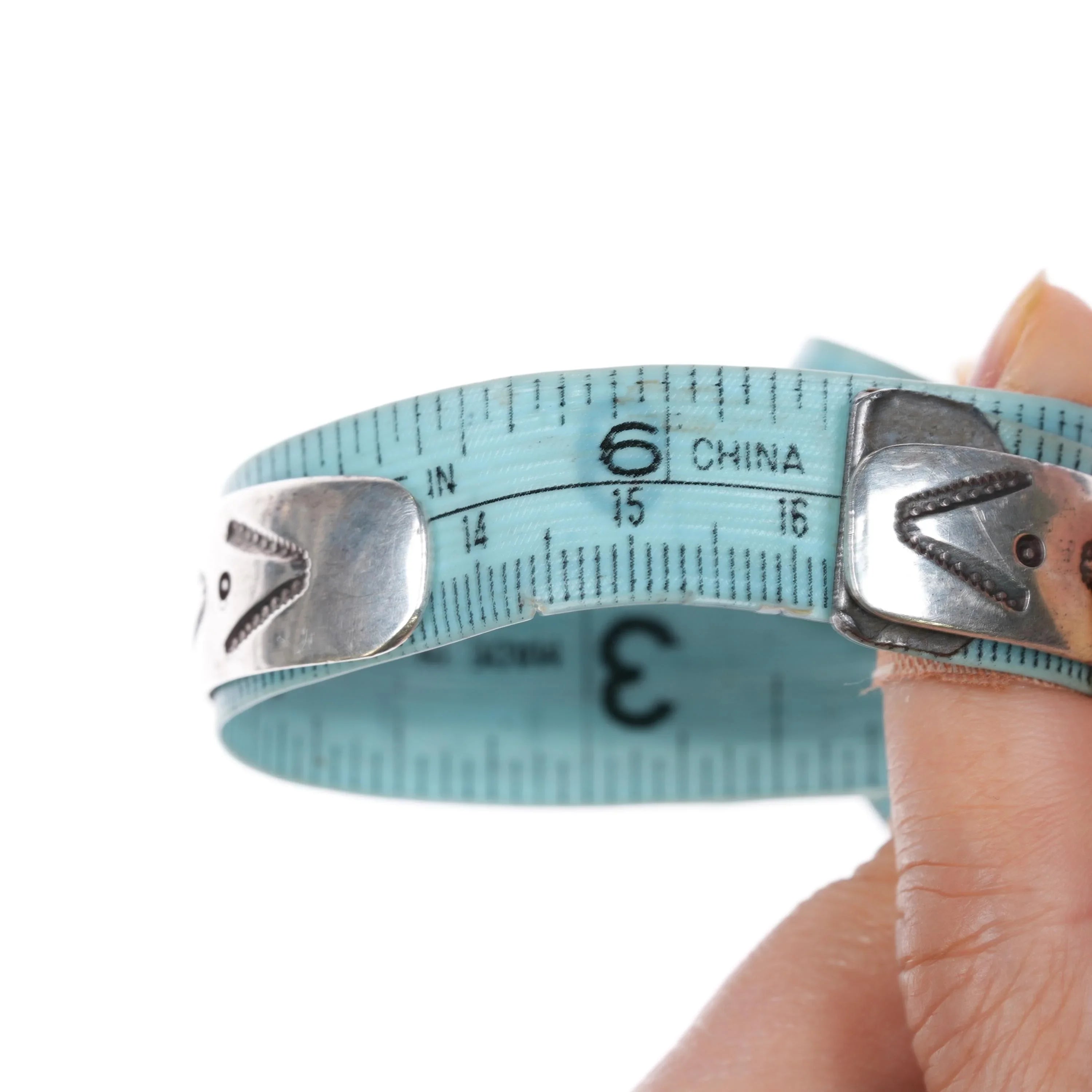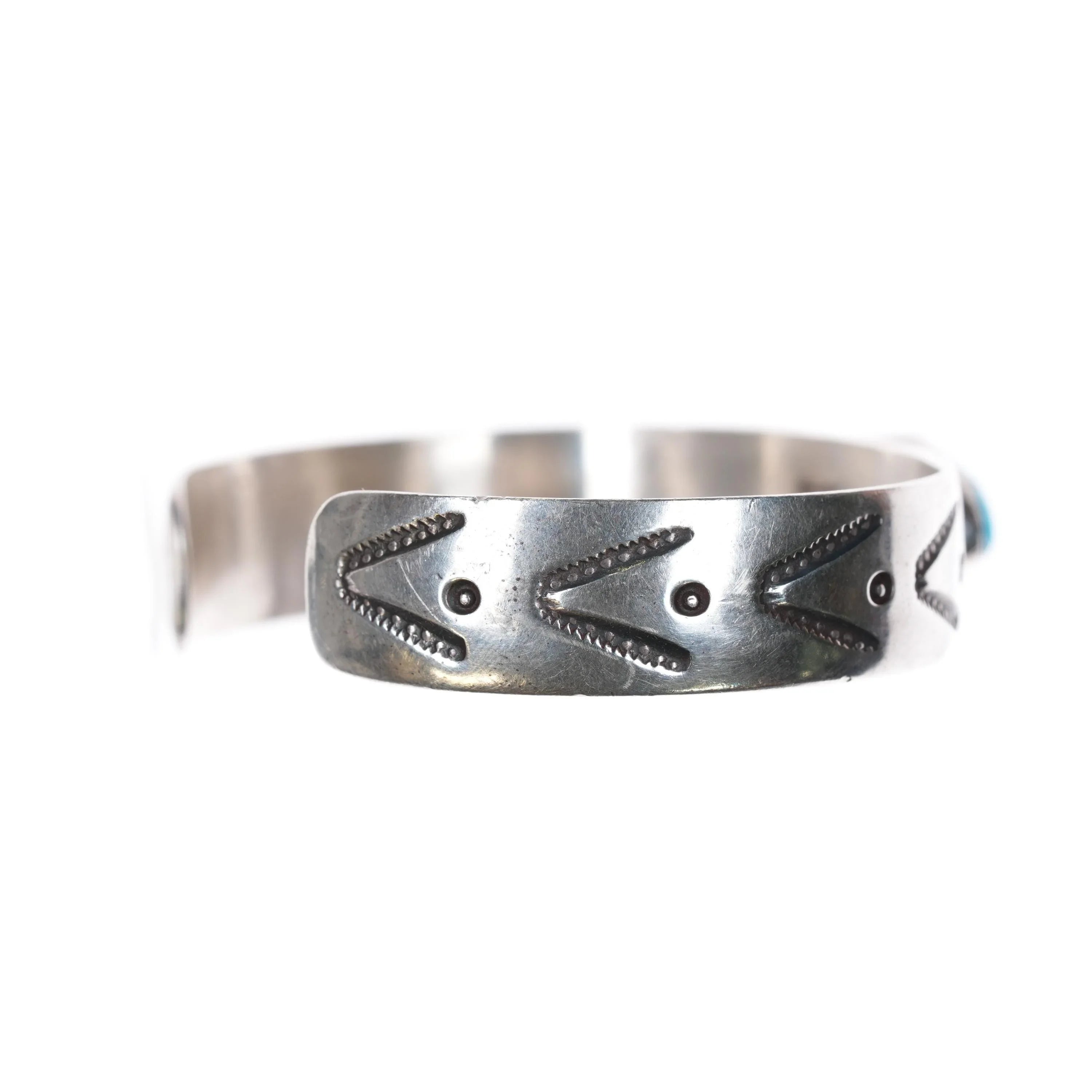6.35" Vintage Navajo sterling silver CW Hand stamped cuff bracelet w/turquoise