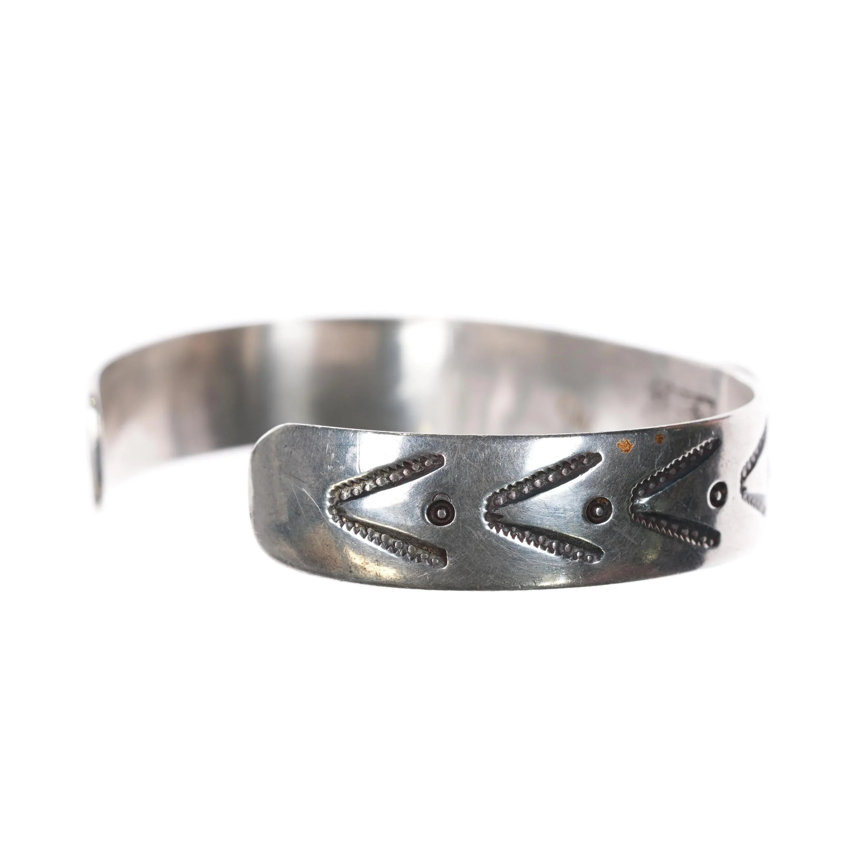 6.35" Vintage Navajo sterling silver CW Hand stamped cuff bracelet w/turquoise. Solid sterling silver (tested), Nice old bracelet from the last quarter of the 20th century.. No damage extremely high quality vintage bracelet with the artists hallmark shown.
