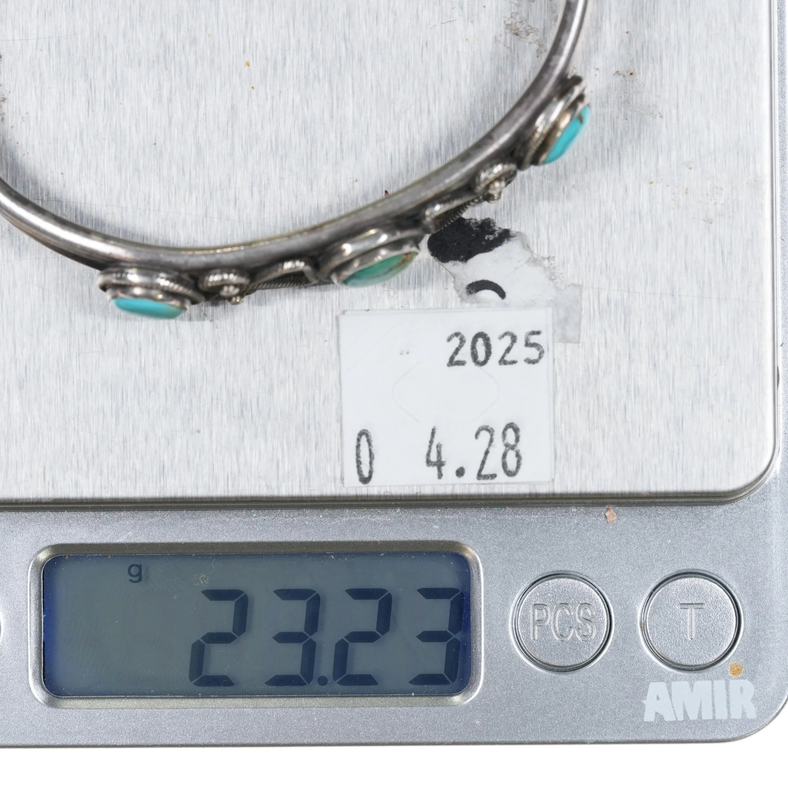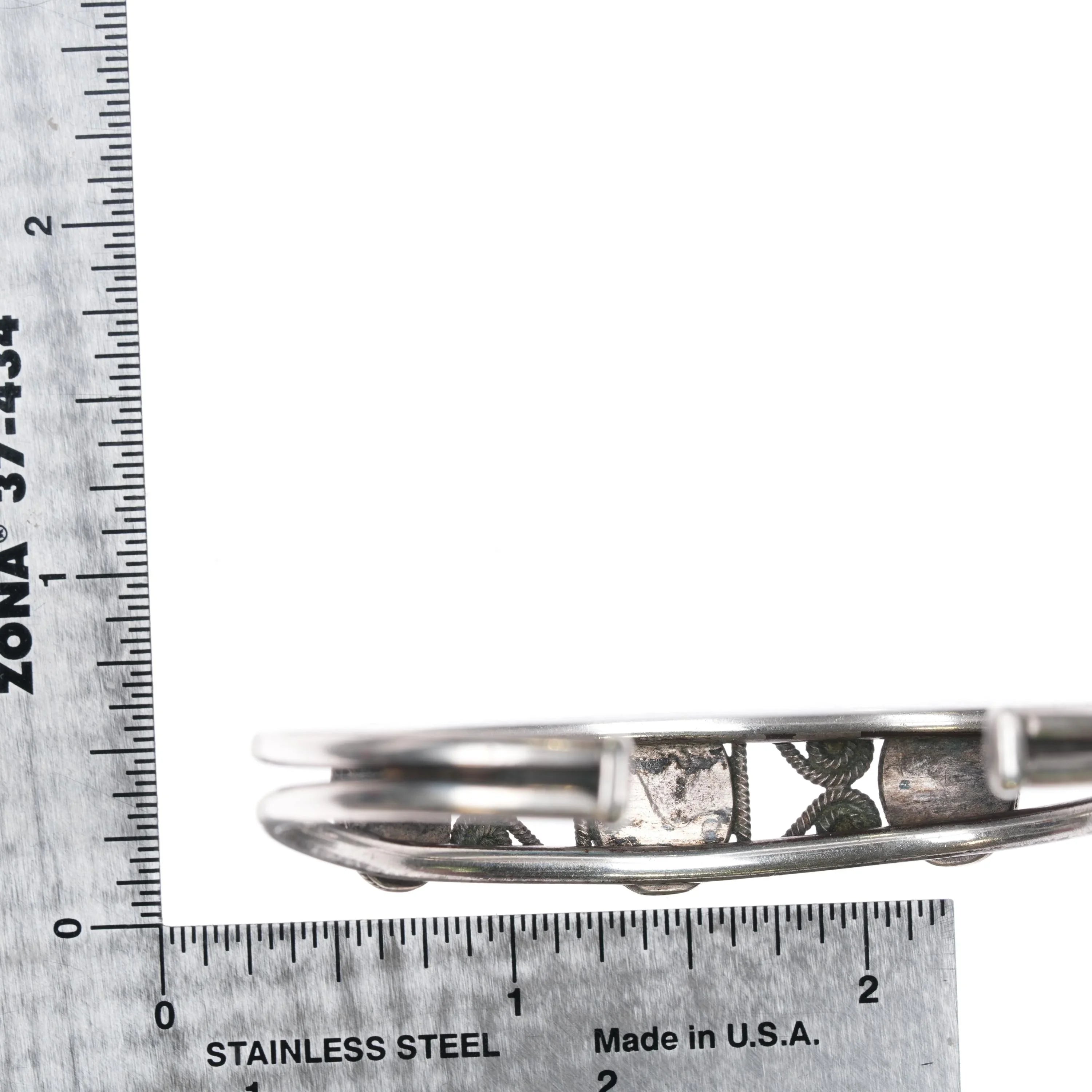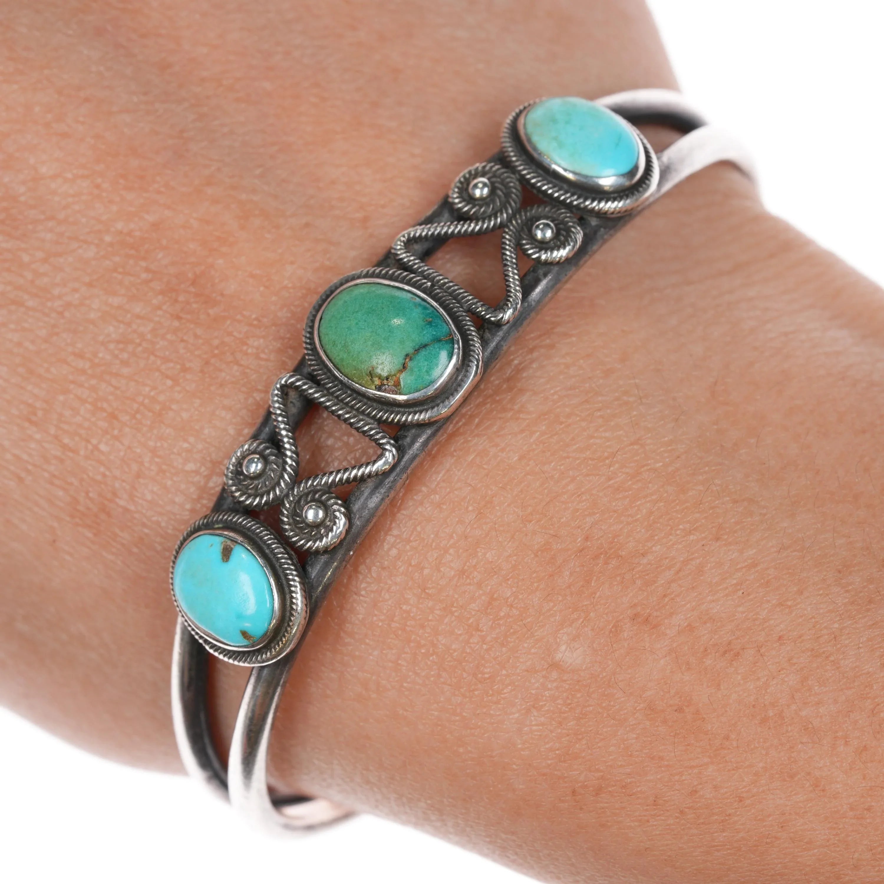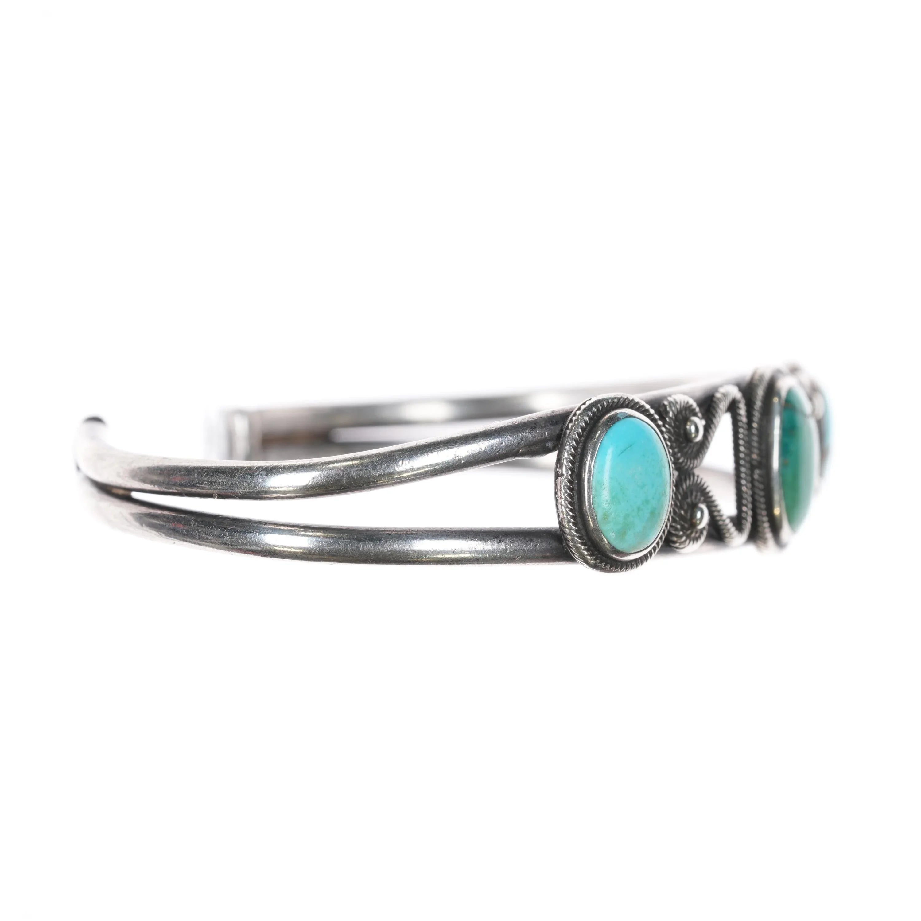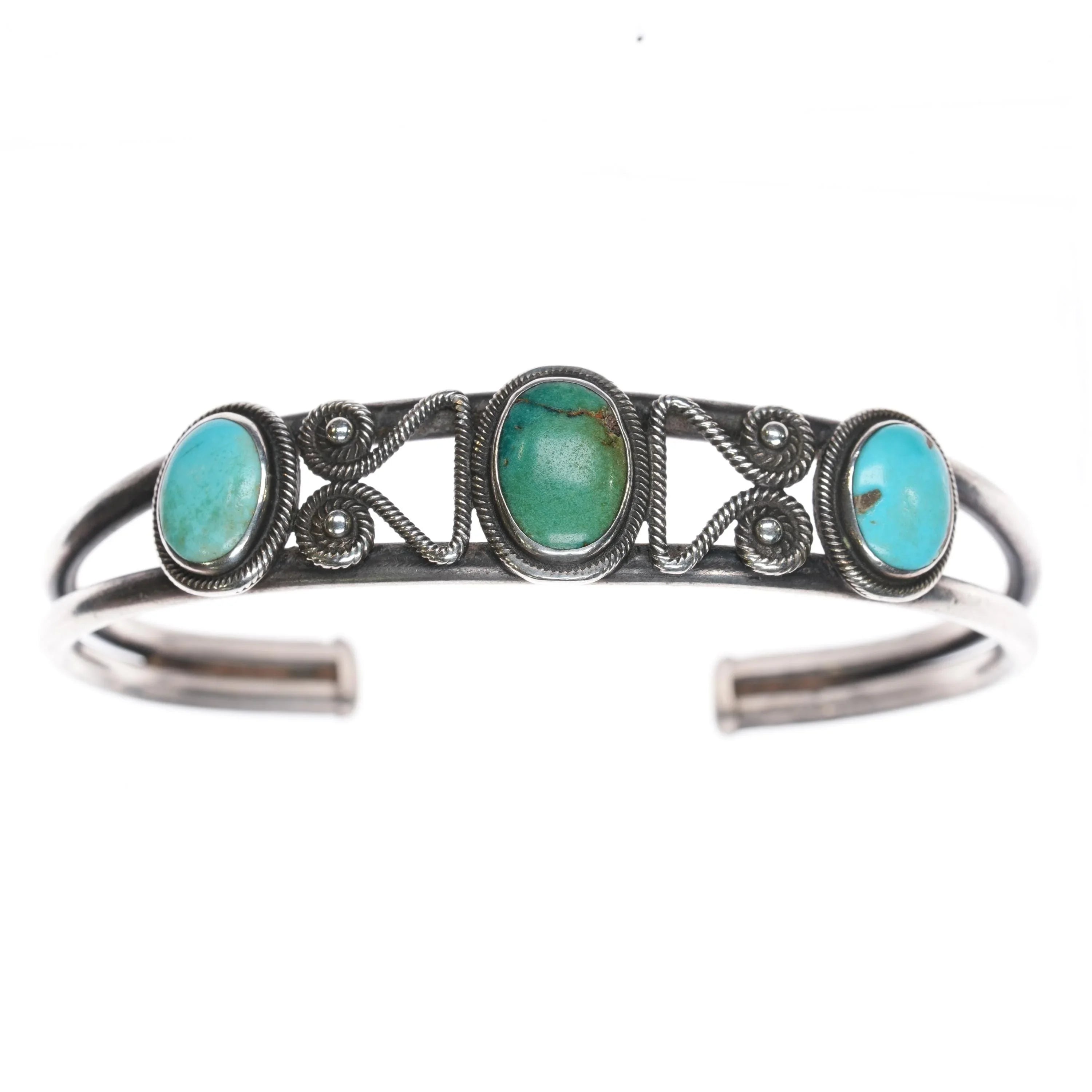 6.375" 20's-30's Navajo Ingot Silver 3 stone cuff bracelet w/nice twisted wire