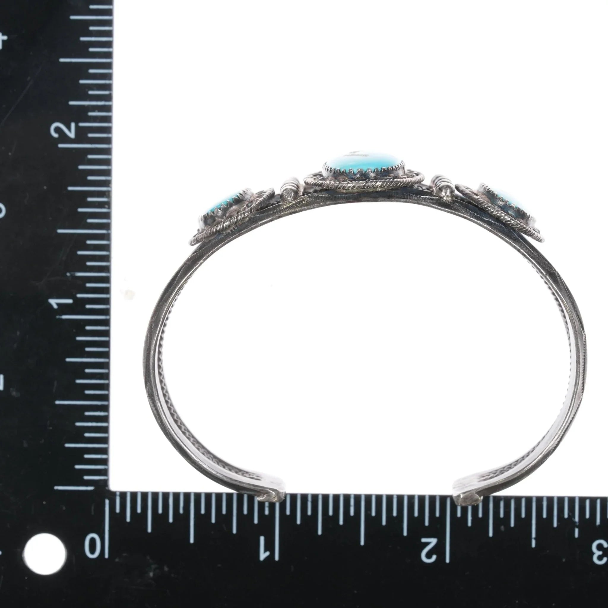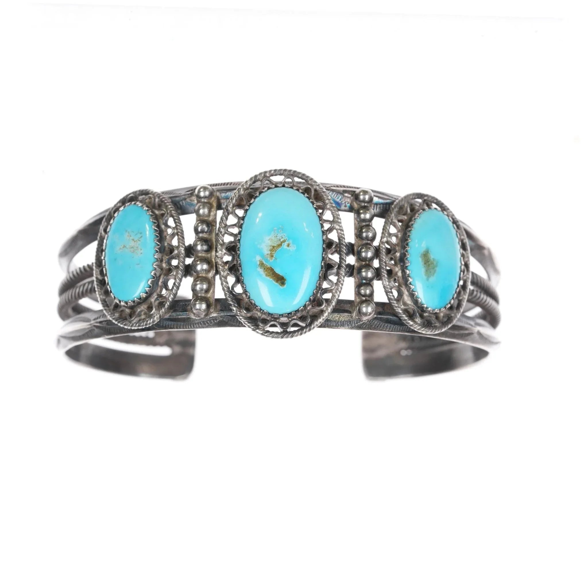 6.5" 40's-50's Native American silver cuff bracelet with nice turquoise