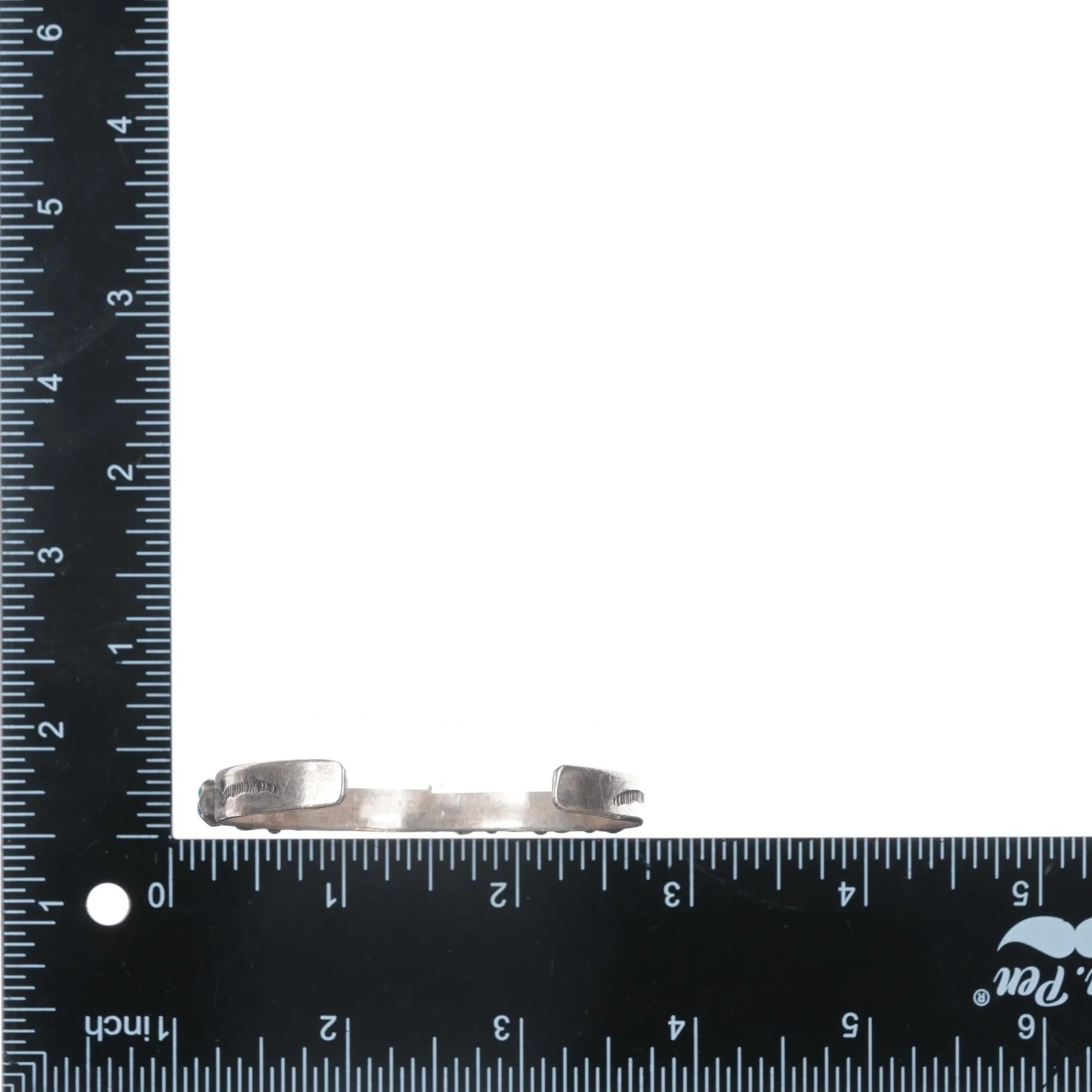 Marked or unmarked as shown in the pics. If a mark isn't shown then it isn't marked which is common with pre 1970's Native American jewelry that isn't from one of the larger trading posts. All precious metals are tested and guaranteed, any Native American jewelry<br>referred to as Silver or Sterling is guaranteed to be a minimum of 90% (coin)silver and possibly higher content. Anything marked is guaranteed to be what<br>it's marked, most bracelets are photographed on a 6" wrist (non hairy), rings<br>photographed on the appropriate sized finger when possible. With bracelets if<br>the measurement is not given in the description then inside circumference is<br>shown where the metal meets the number on the the cloth tape measure.