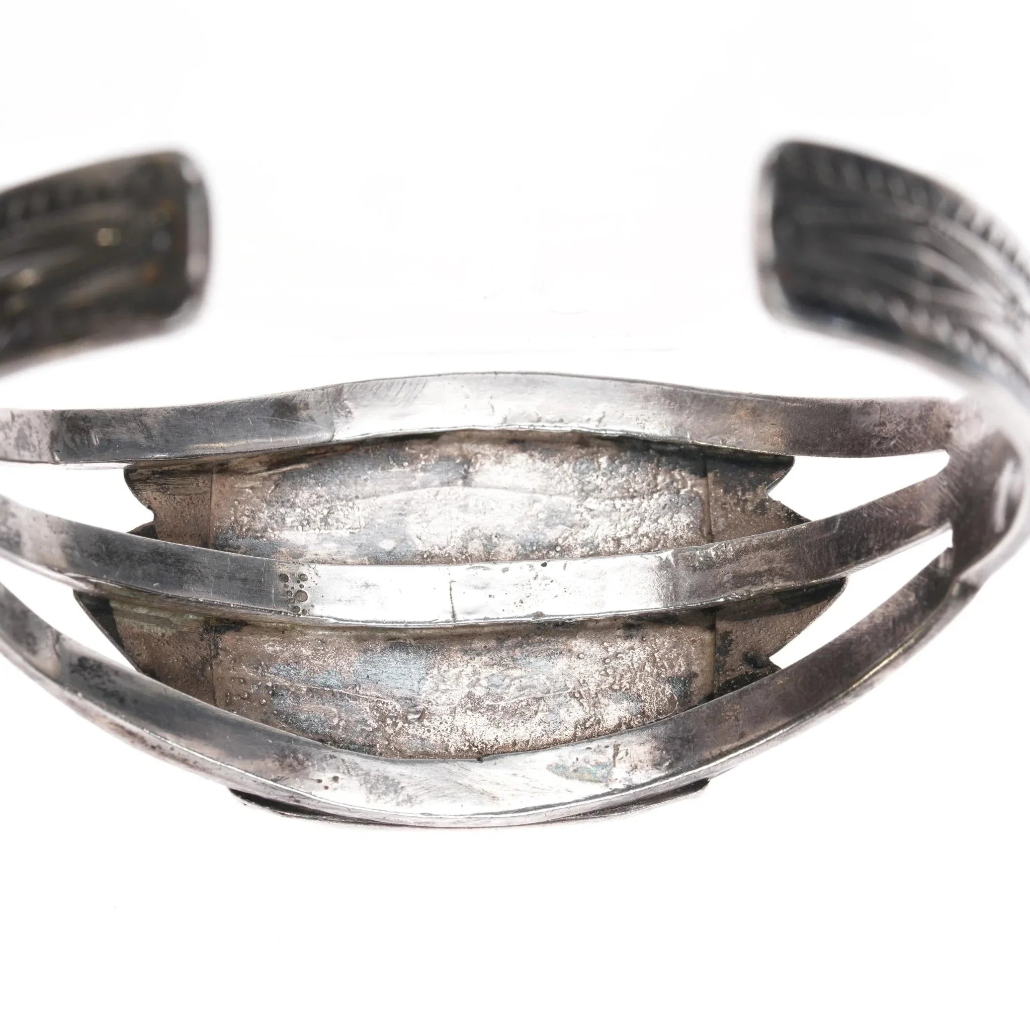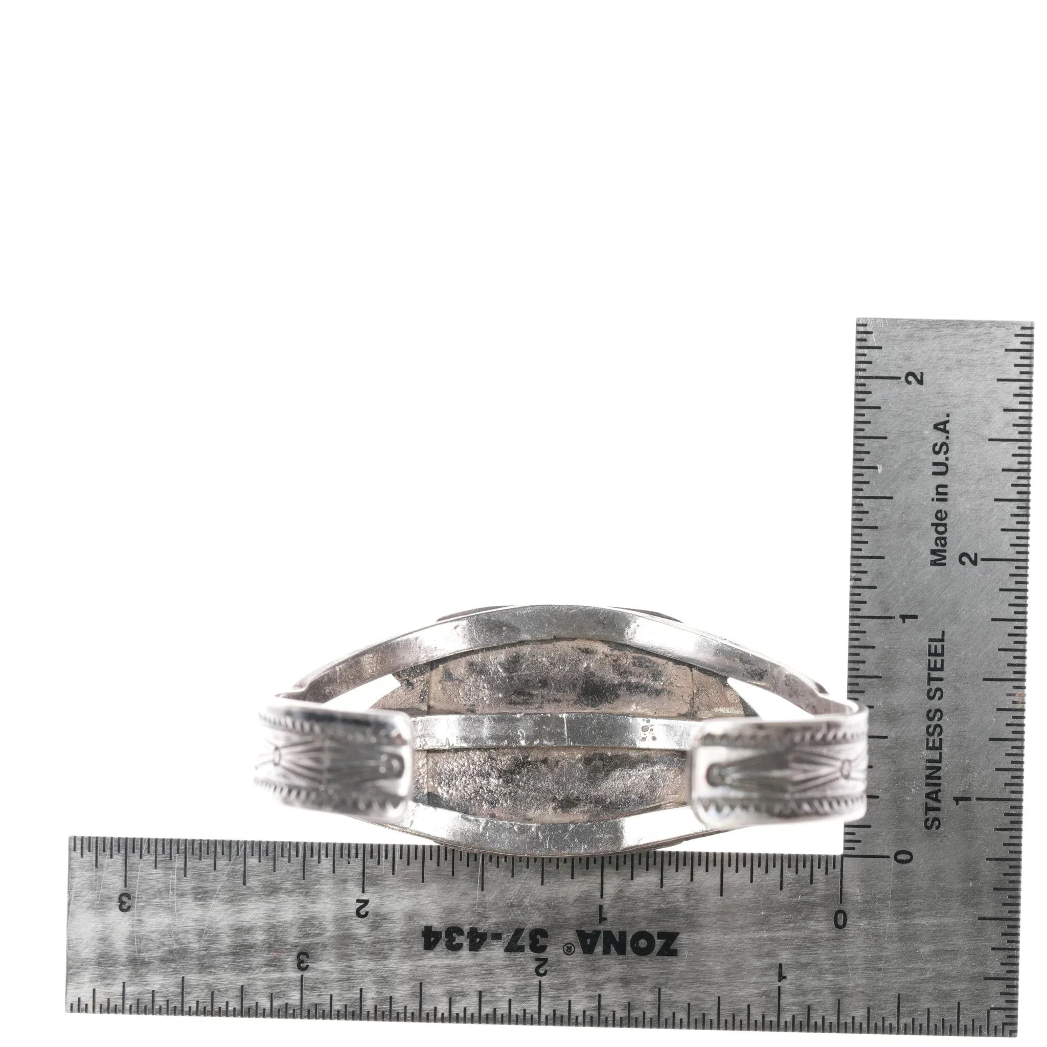All precious metals are tested and guaranteed. A Native American jewelry piece referred to as "silver" or "ingot" is guaranteed to be at least 90% silver. I rarely use the word "sterling" when referring to older Native American silver or really any older silver jewelry as silver contents vary and "sterling" is 92.5% silver. No older jewelry is going to be exactly 92.5% silver, some a little over, some a little under. It wasn‘t an exact thing with handmade jewelry. I‘ve seen thousands of pieces xrf‘d to prove this. Bracelets are photographed on a 6" women‘s wrist.