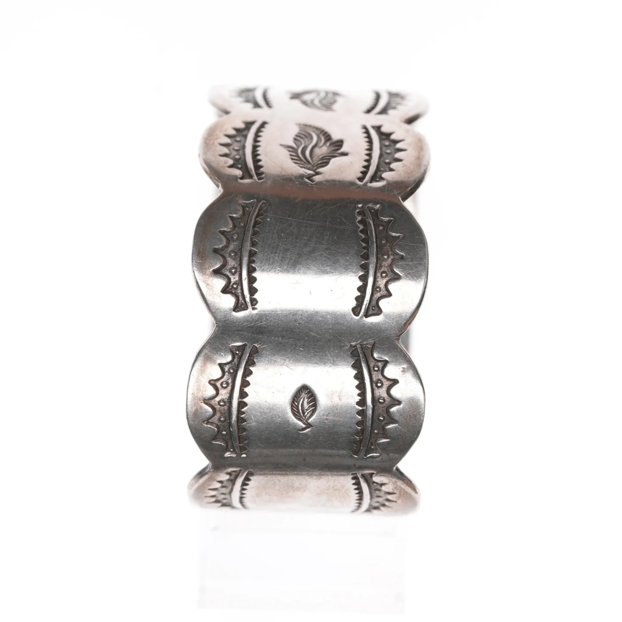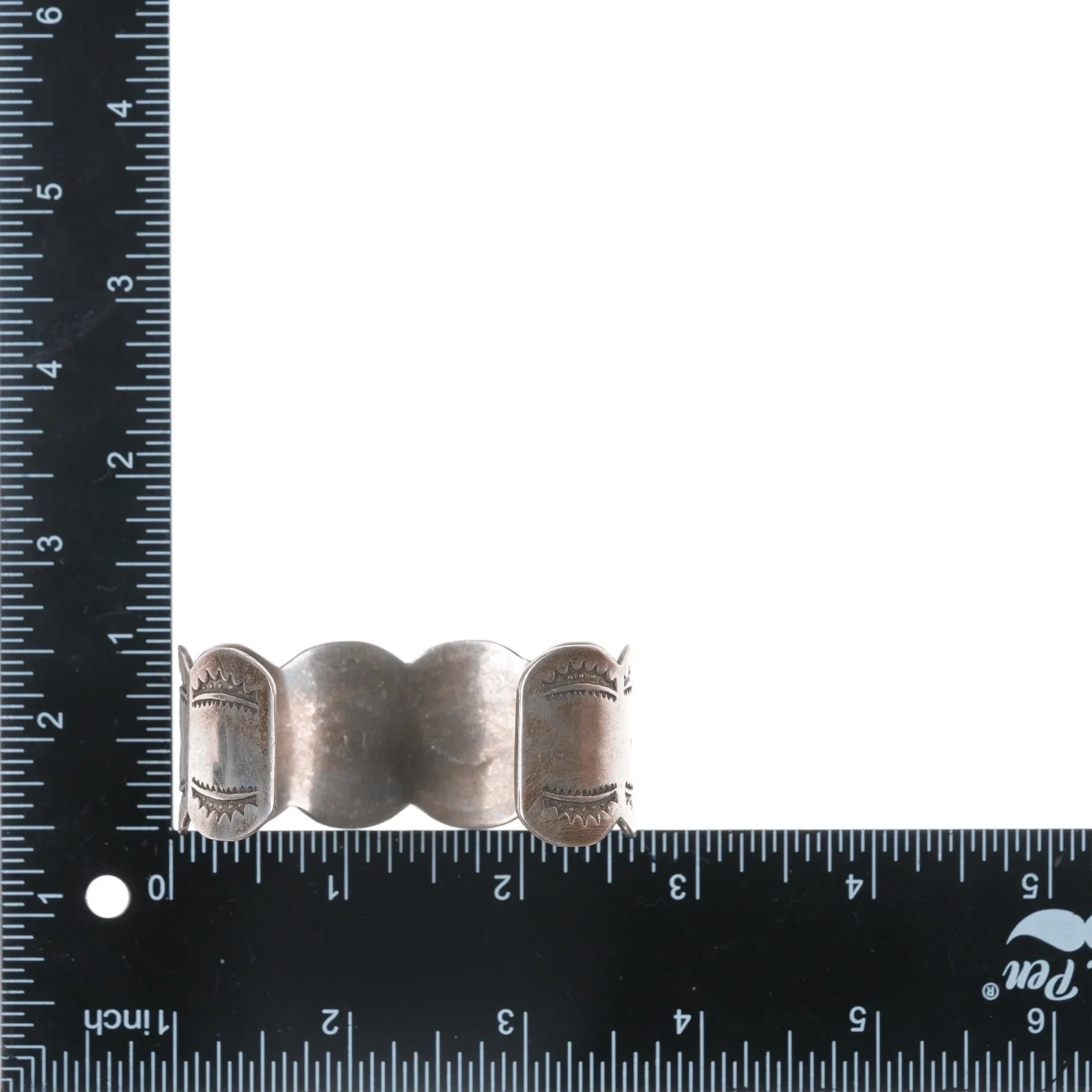 6.625" Vintage Native American silver heavy stamped cuff bracelet