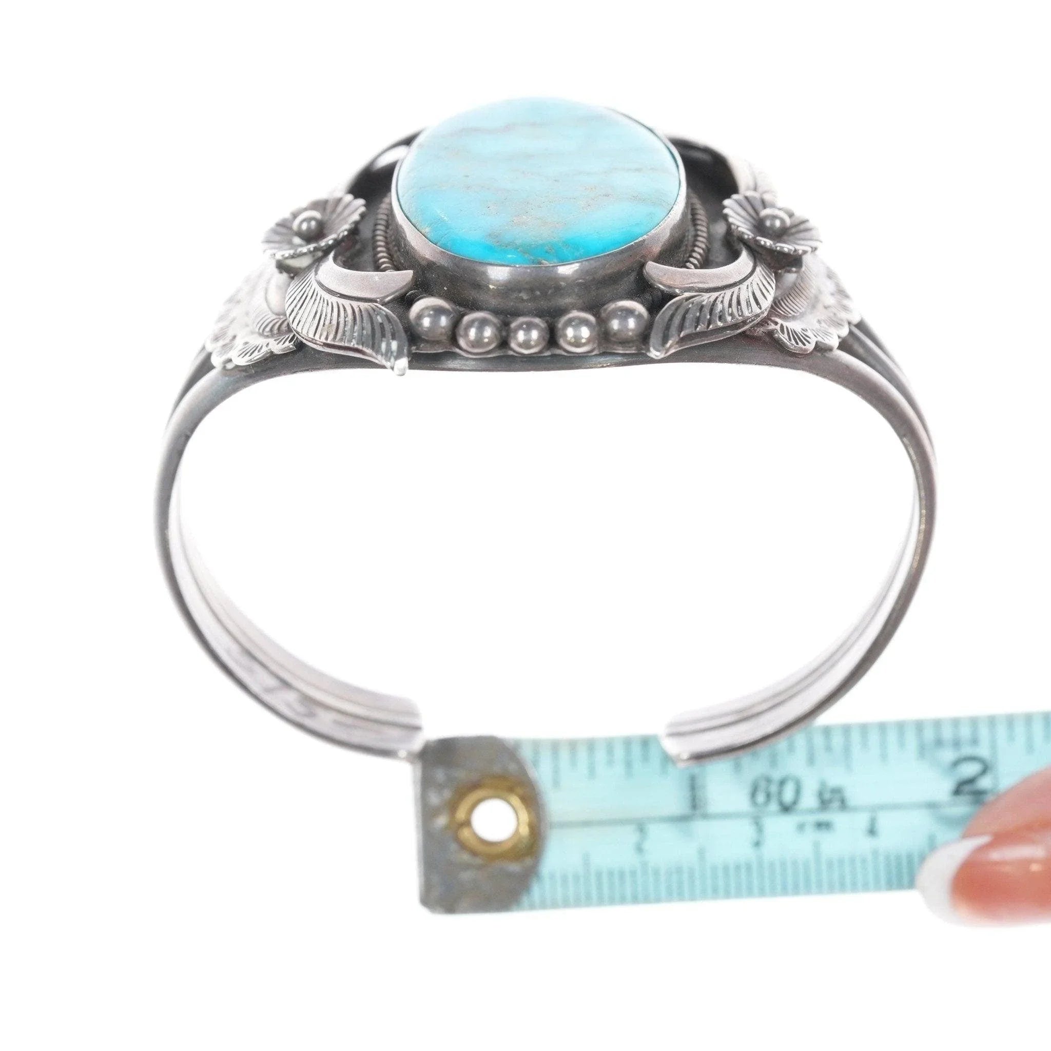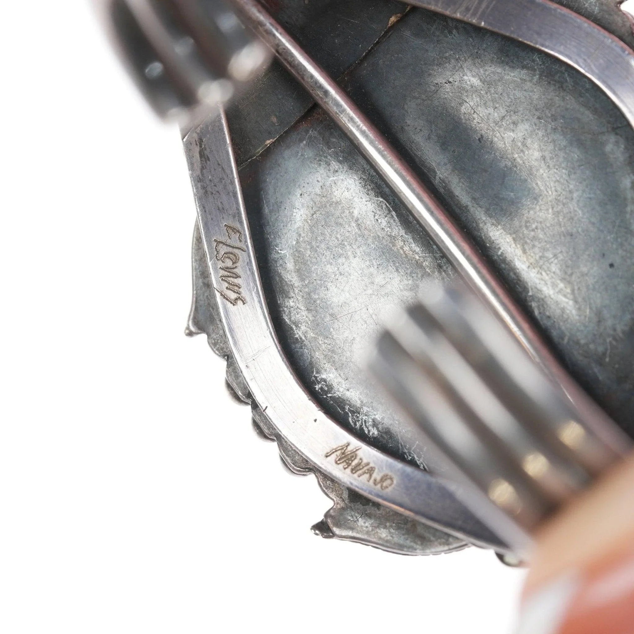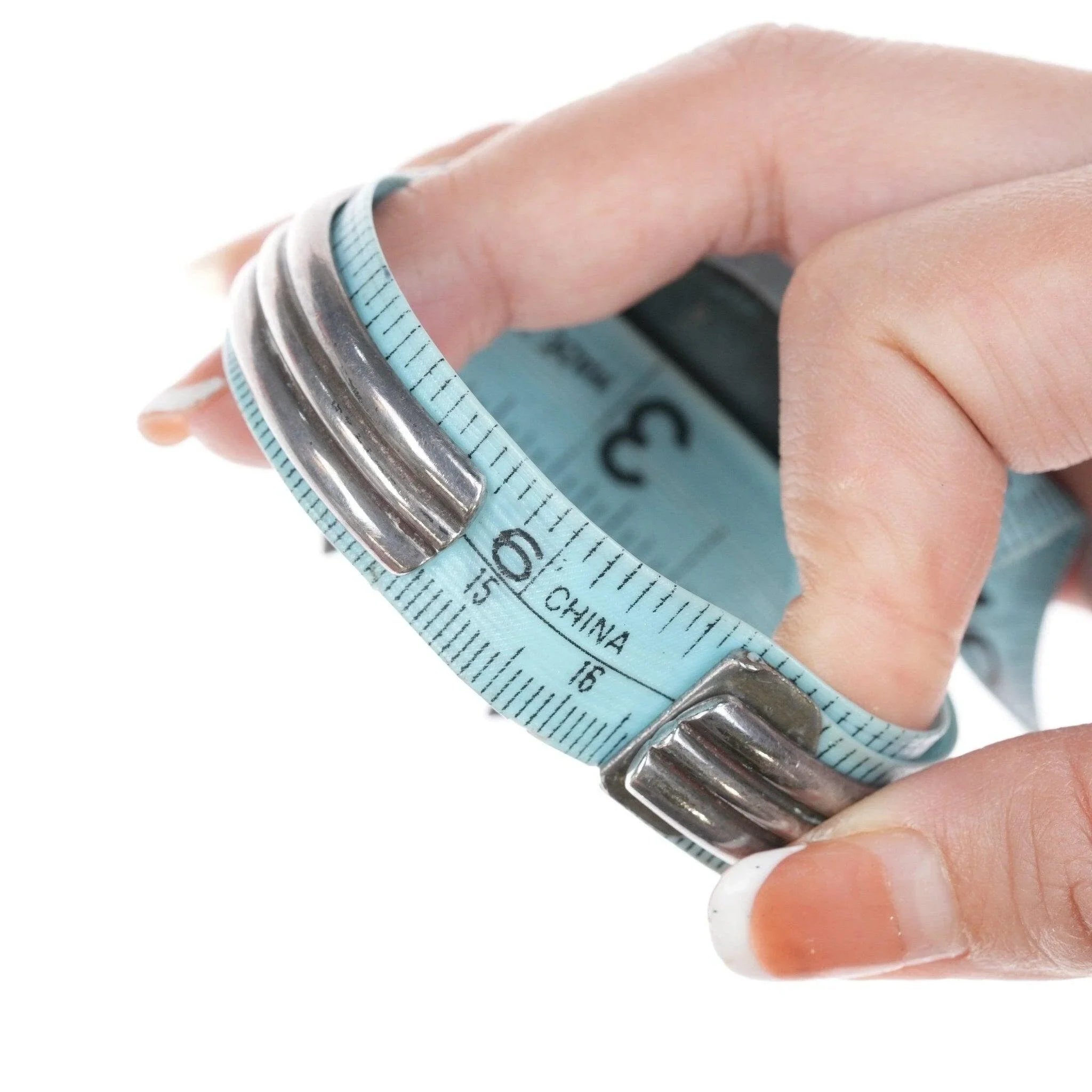 Bracciale da 6,5" vintage E Lewis Navajo in sterline e turchese con quadrante da 50 mm sul lato lungo.
