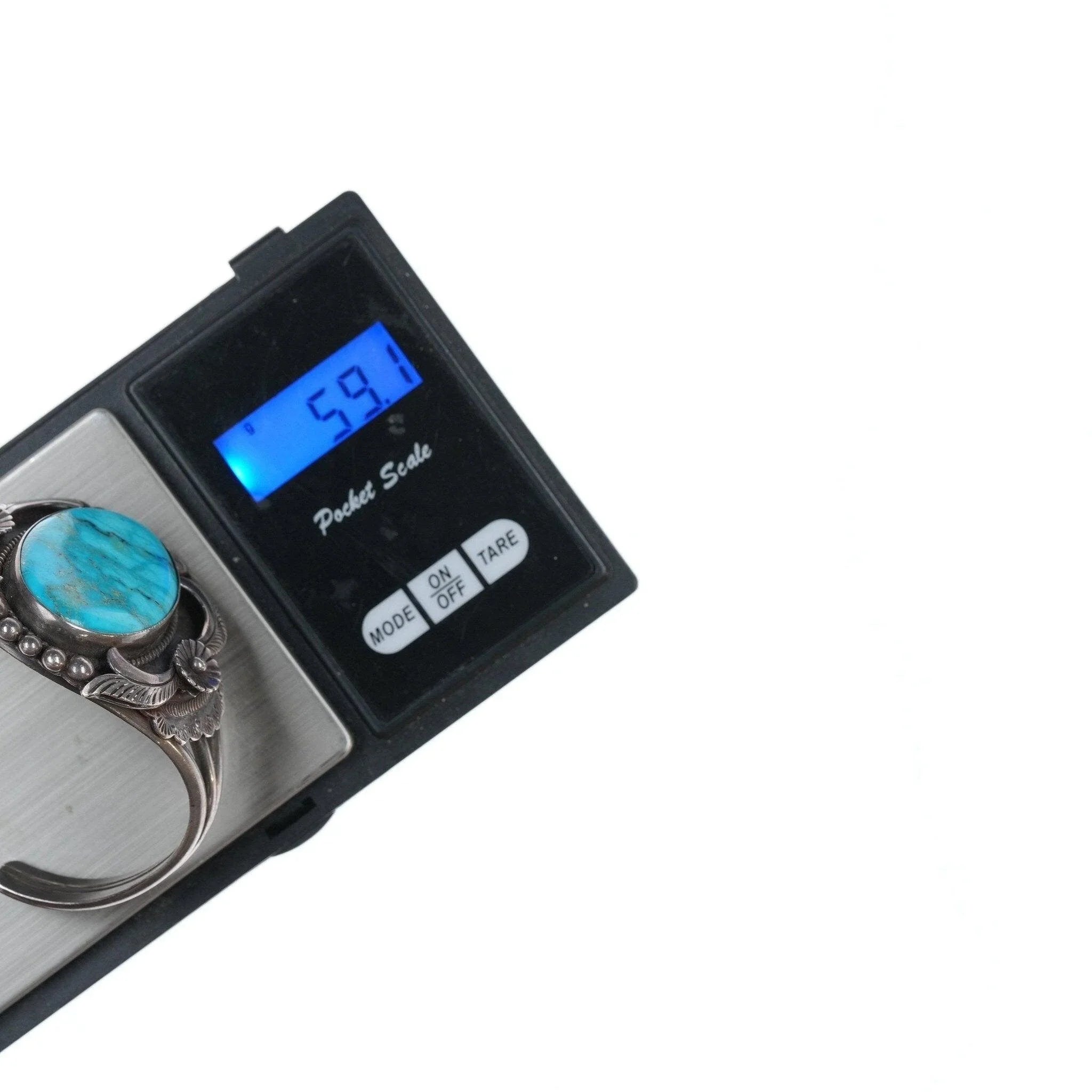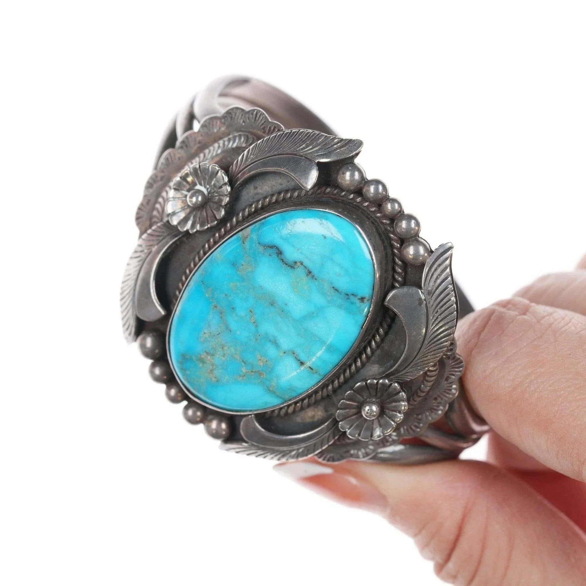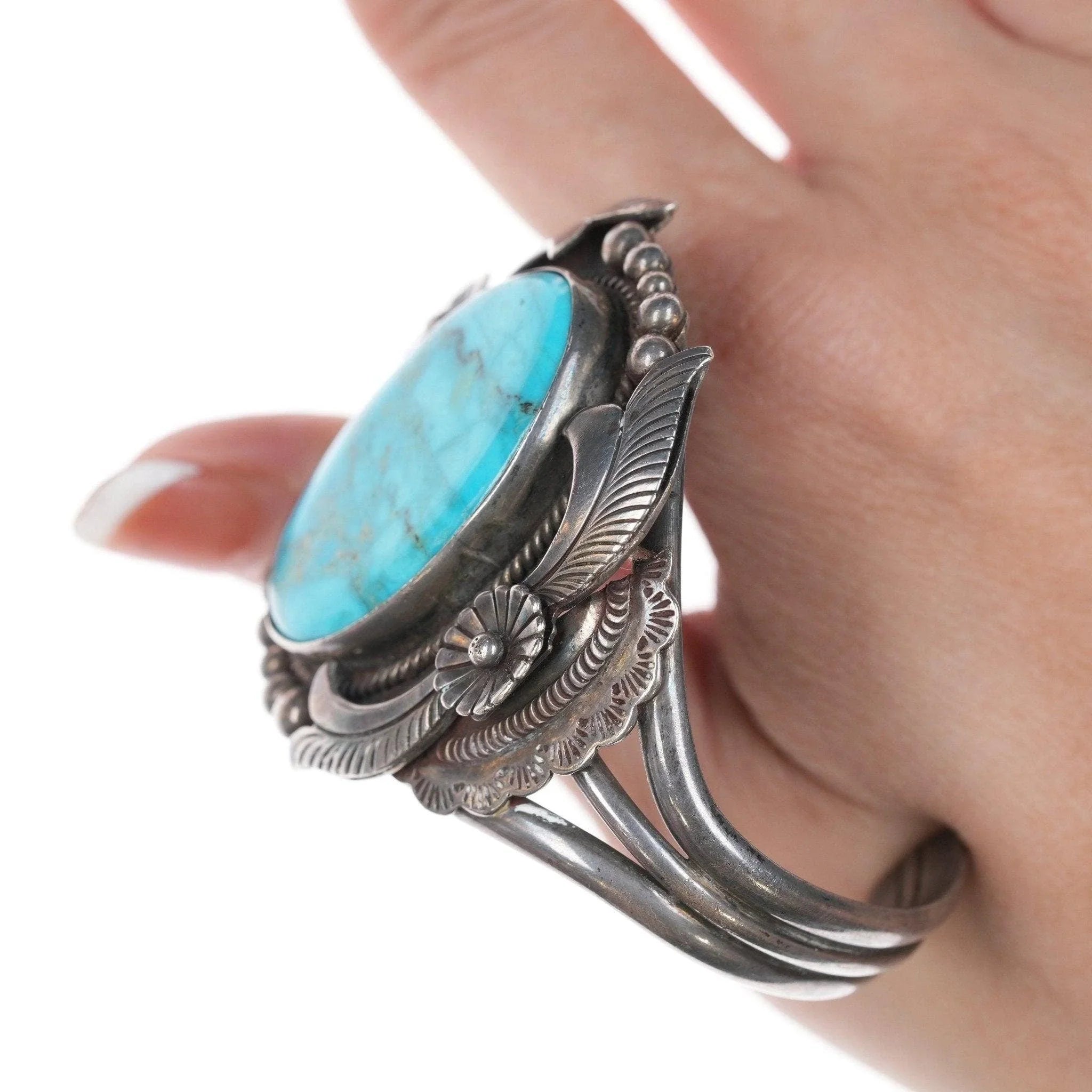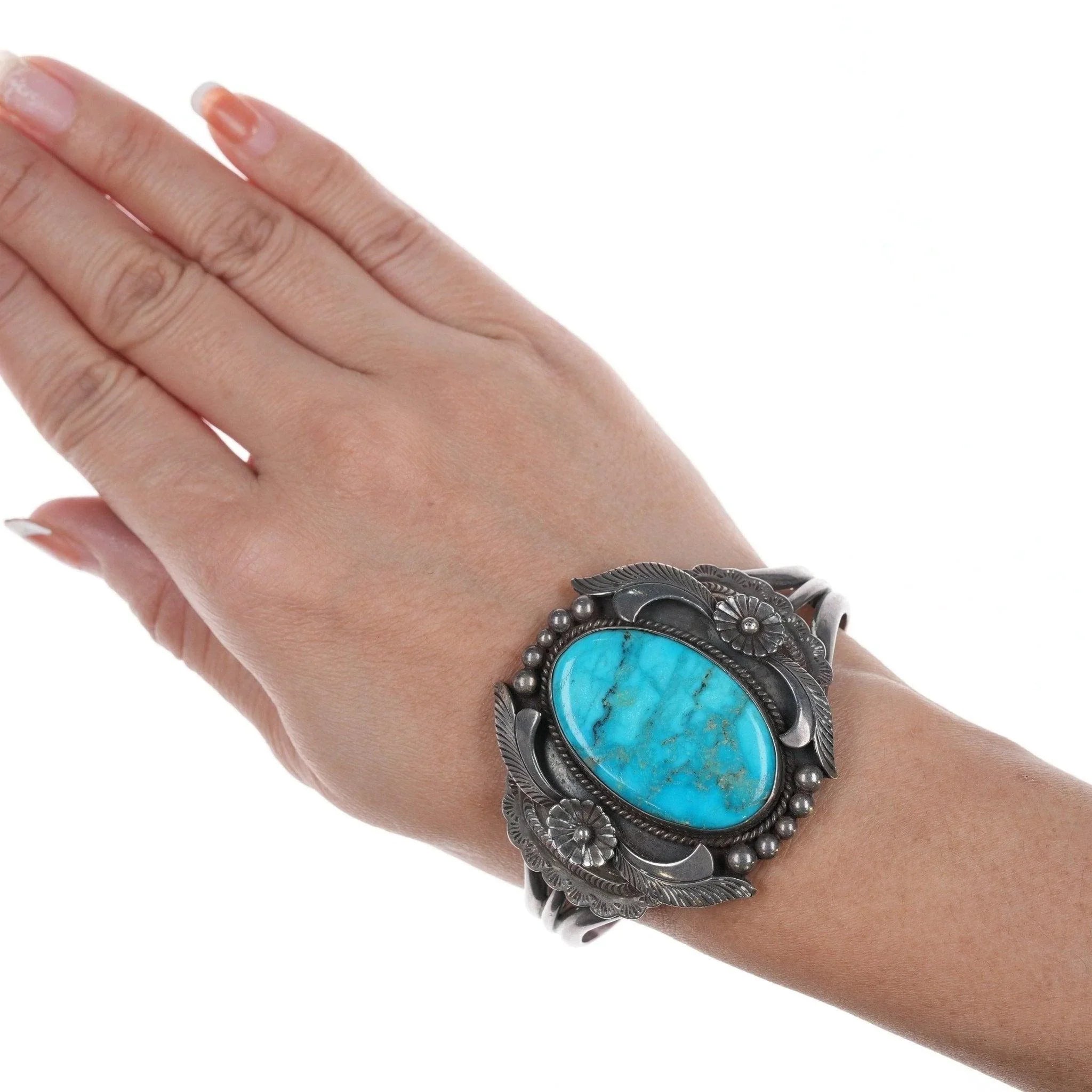 Bracciale da 6,5" vintage E Lewis Navajo in sterline e turchese con quadrante da 50 mm sul lato lungo.