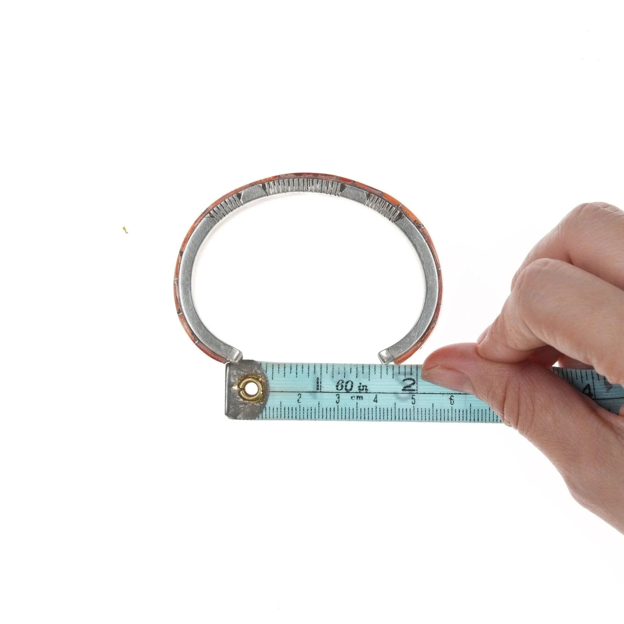 Tutti i metalli preziosi sono testati e garantiti, si garantisce che qualsiasi gioiello dei nativi americani denominato argento o sterlina abbia una percentuale minima del 90% (moneta) argento e possibilmente un contenuto più elevato. La maggior parte dei braccialetti viene mostrata fotografata sul polso di una donna da 6" e includerà una foto che mostra la circonferenza interna dove la punta di metallo incontra il numero sul metro a nastro.