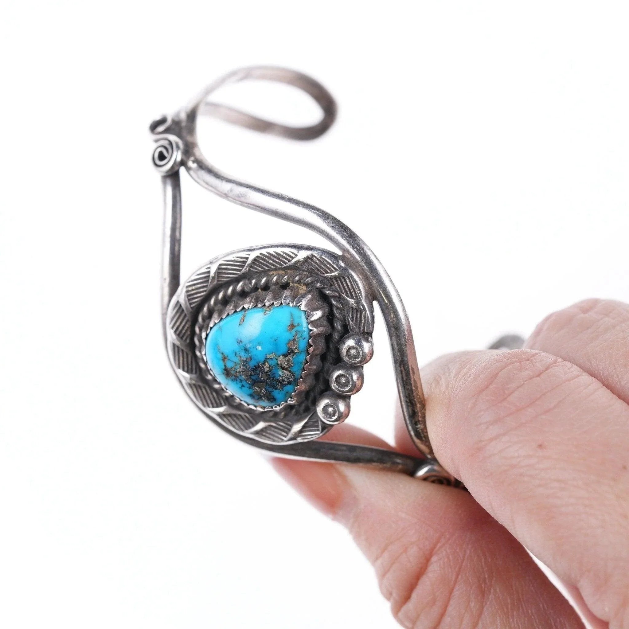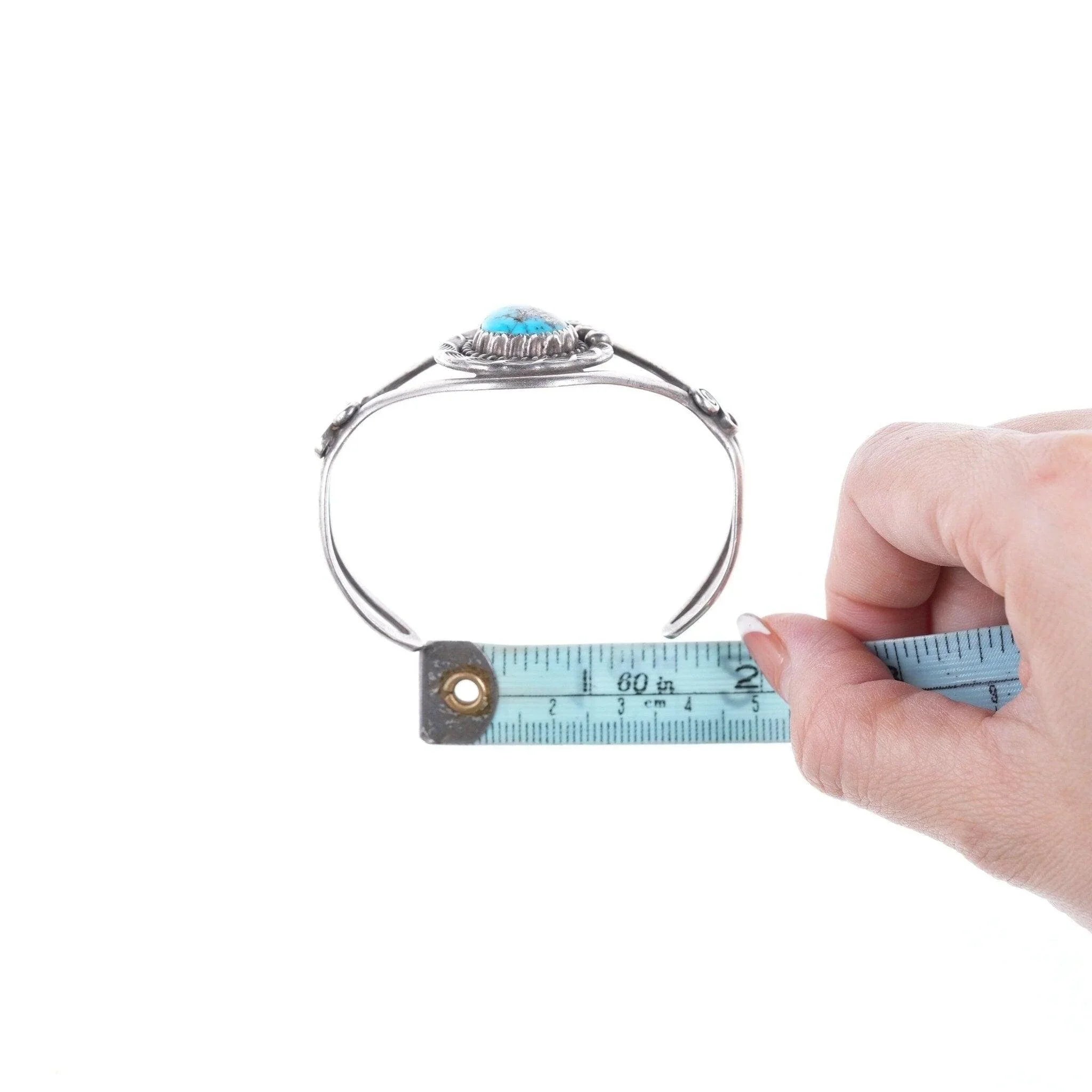 Bracciale vintage in sterlina e turchese dei nativi americani da 6,5", non contrassegnato, largo 35 mm.