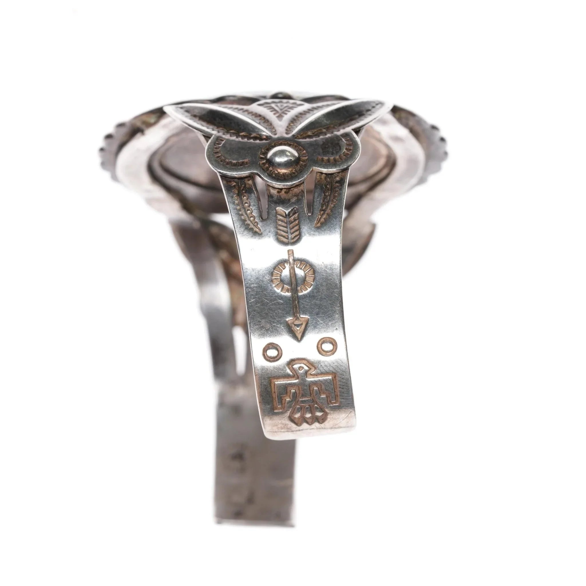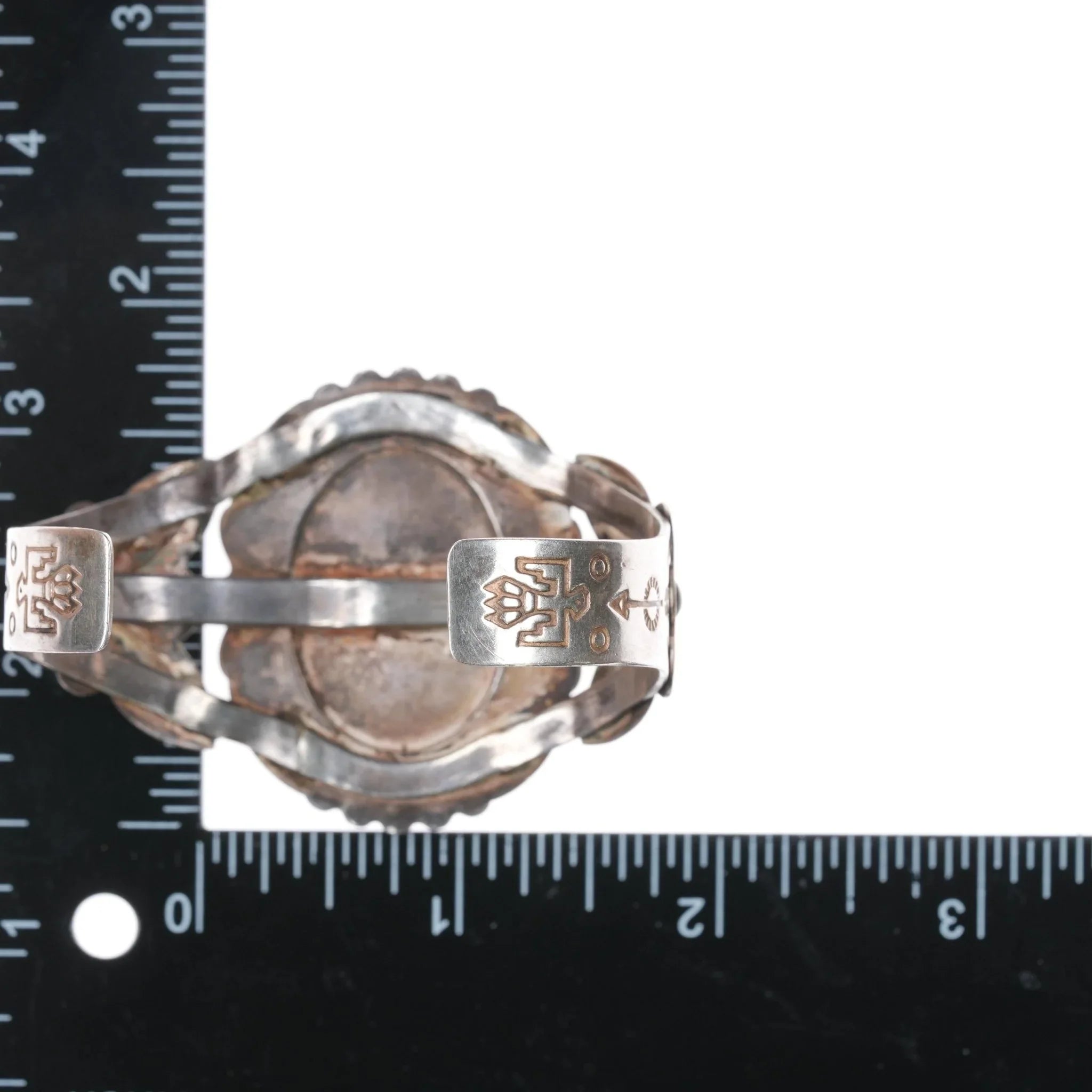All precious metals are tested and guaranteed. A Native American jewelry piece referred to as "silver" or "ingot" is guaranteed to be at least 90% silver. I rarely use the word "sterling" when referring to older Native American silver or really any older silver jewelry as silver contents vary and "sterling" is 92.5% silver. No older jewelry is going to be exactly 92.5% silver, some a little over, some a little under. It wasn‘t an exact thing with handmade jewelry. I‘ve seen thousands of pieces xrf‘d to prove this. Bracelets are photographed on a 6" women‘s wrist.