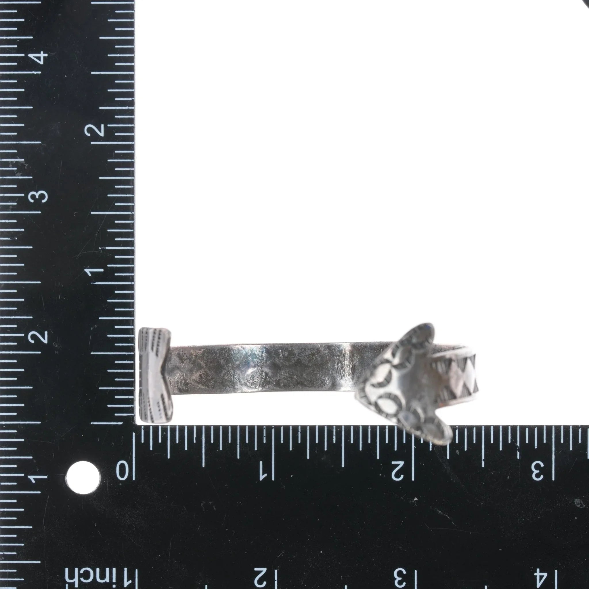 All precious metals are tested and guaranteed. A Native American jewelry piece referred to as "silver" or "ingot" is guaranteed to be at least 90% silver. I rarely use the word "sterling" when referring to older Native American silver or really any older silver jewelry as silver contents vary and "sterling" is 92.5% silver. No older jewelry is going to be exactly 92.5% silver, some a little over, some a little under. It wasn‘t an exact thing with handmade jewelry. I‘ve seen thousands of pieces xrf‘d to prove this. Bracelets are photographed on a 6" women‘s wrist.