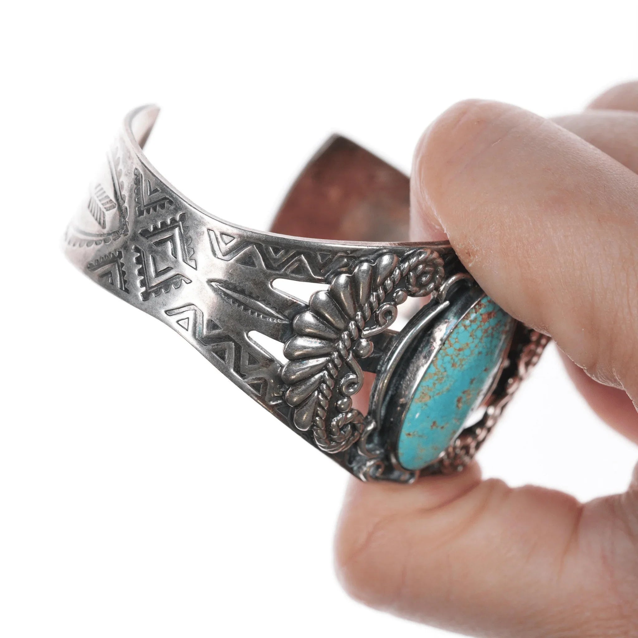 6.5" c1950's Navajo Curio silver and turquoise cuff bracelet