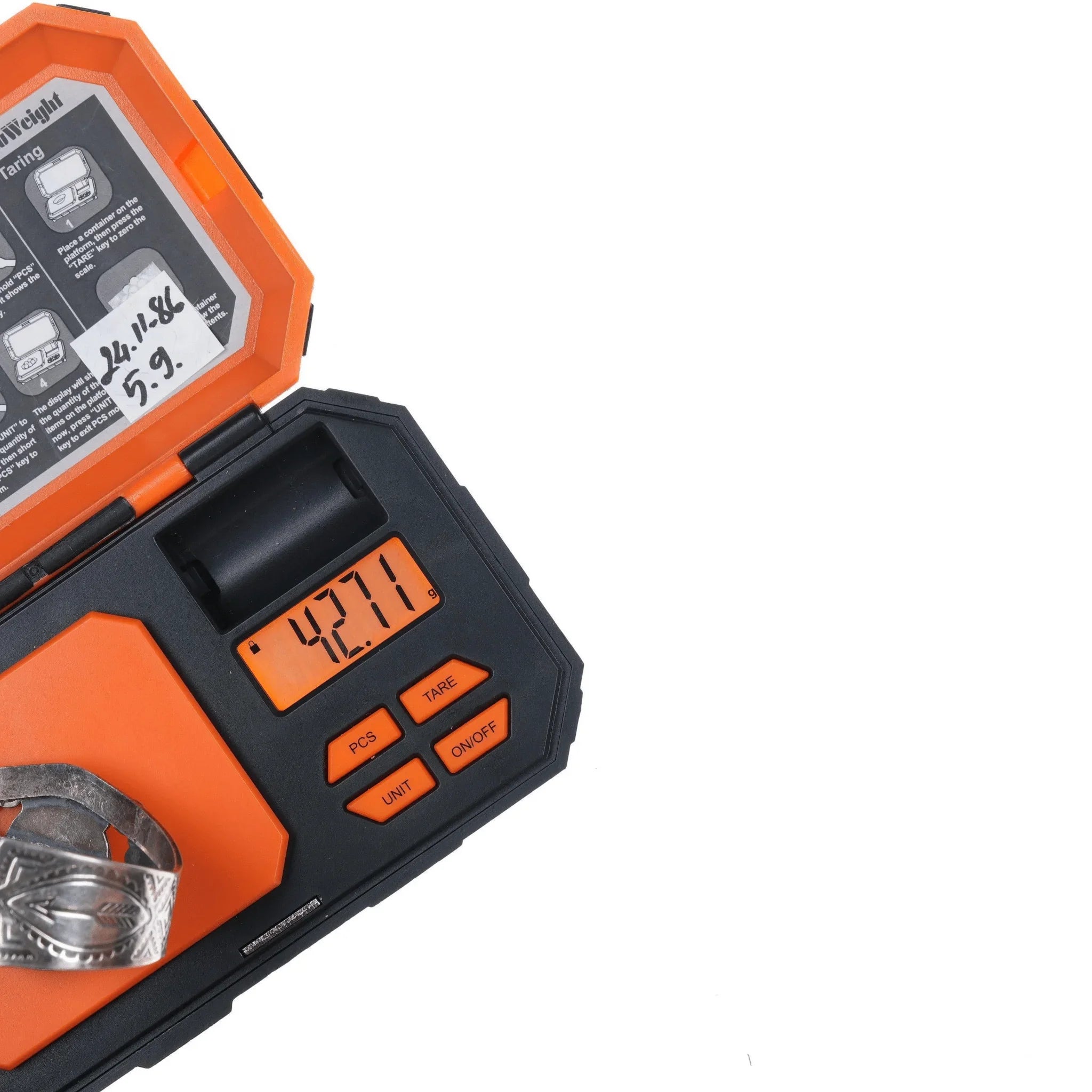 All precious metals are tested and guaranteed. A Native American jewelry piece referred to as "silver" or "ingot" is guaranteed to be at least 90% silver. I rarely use the word "sterling" when referring to older Native American silver or really any older silver jewelry as silver contents vary and "sterling" is 92.5% silver. No older jewelry is going to be exactly 92.5% silver, some a little over, some a little under. It wasn't an exact thing with handmade jewelry. I've seen thousands of pieces xrf'd to prove this. Bracelets are photographed on a 6" women's wrist.
