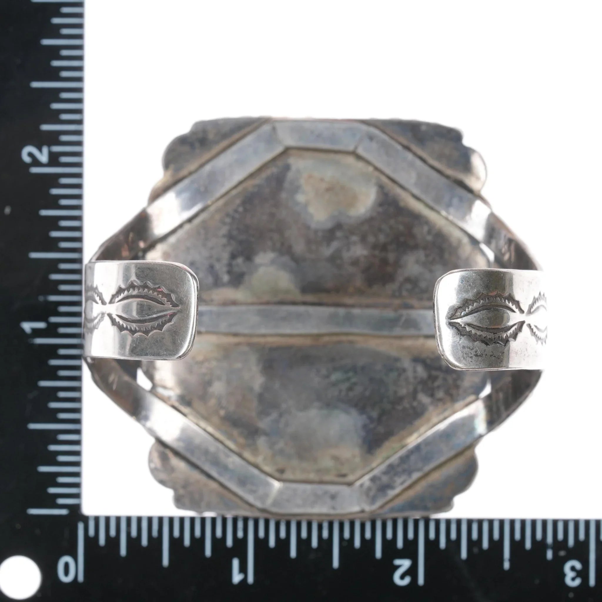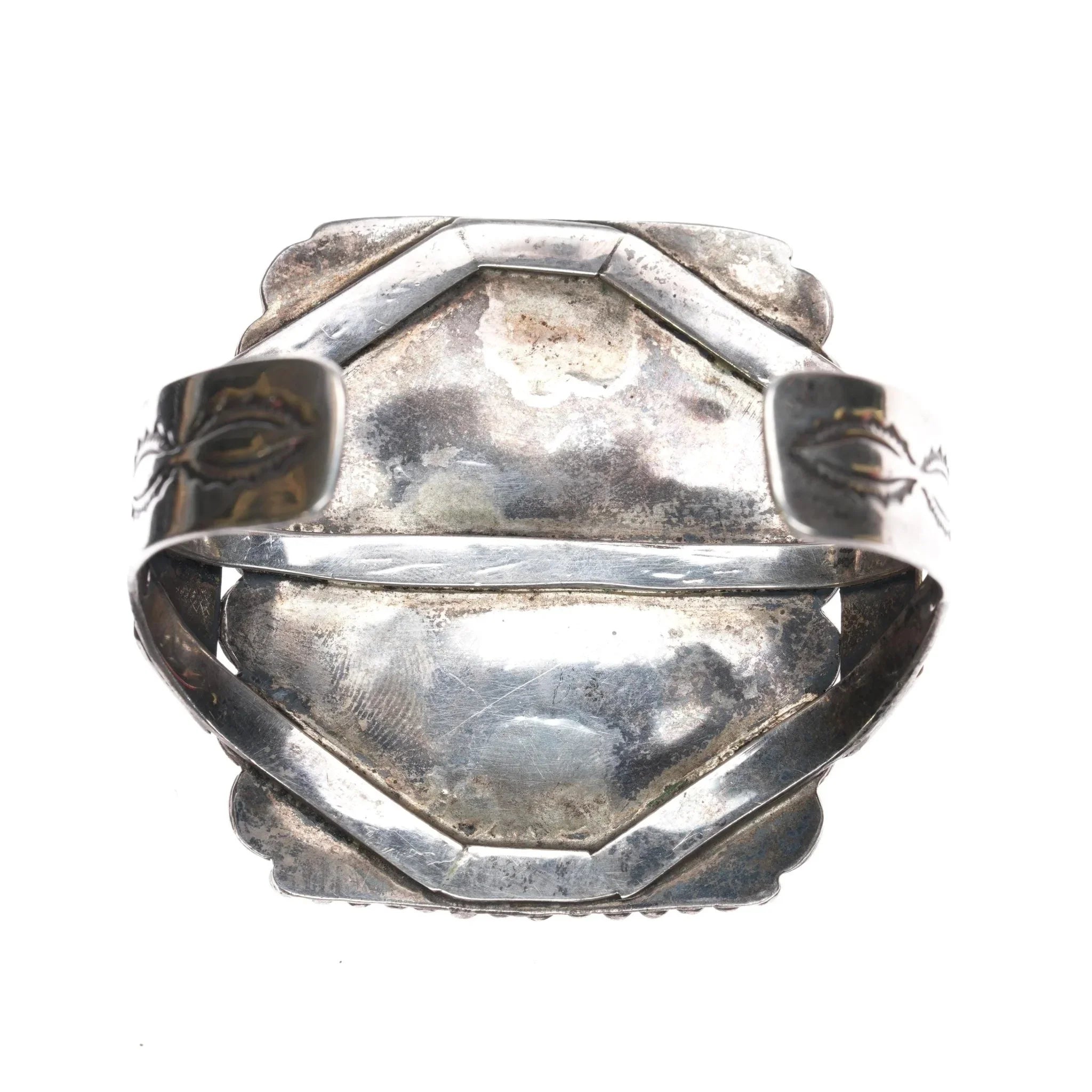 6.5" Large 40‘s-50‘s Native American silver agate cuff bracelet. No issues, weight and measurements in pics. Solid sterling, apparently unmarked as typical of this era (Mid 20th century)