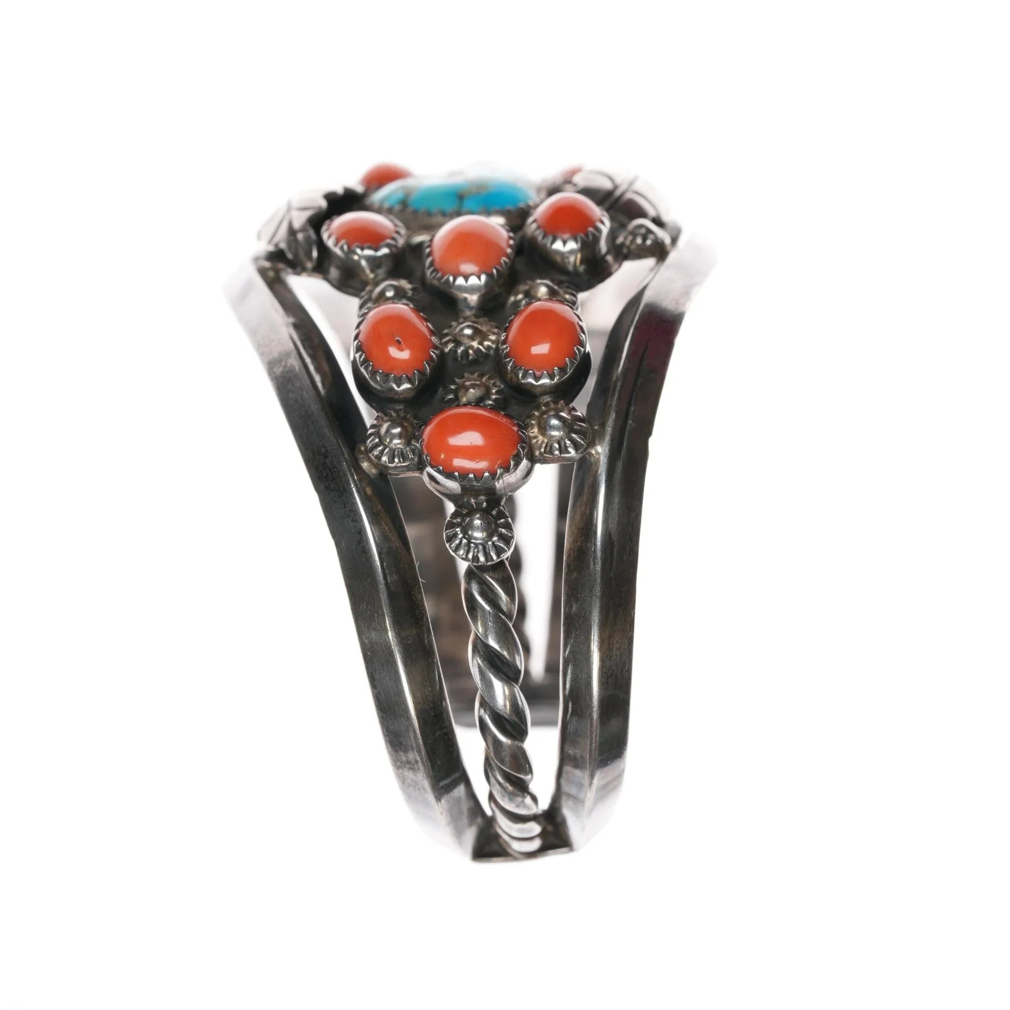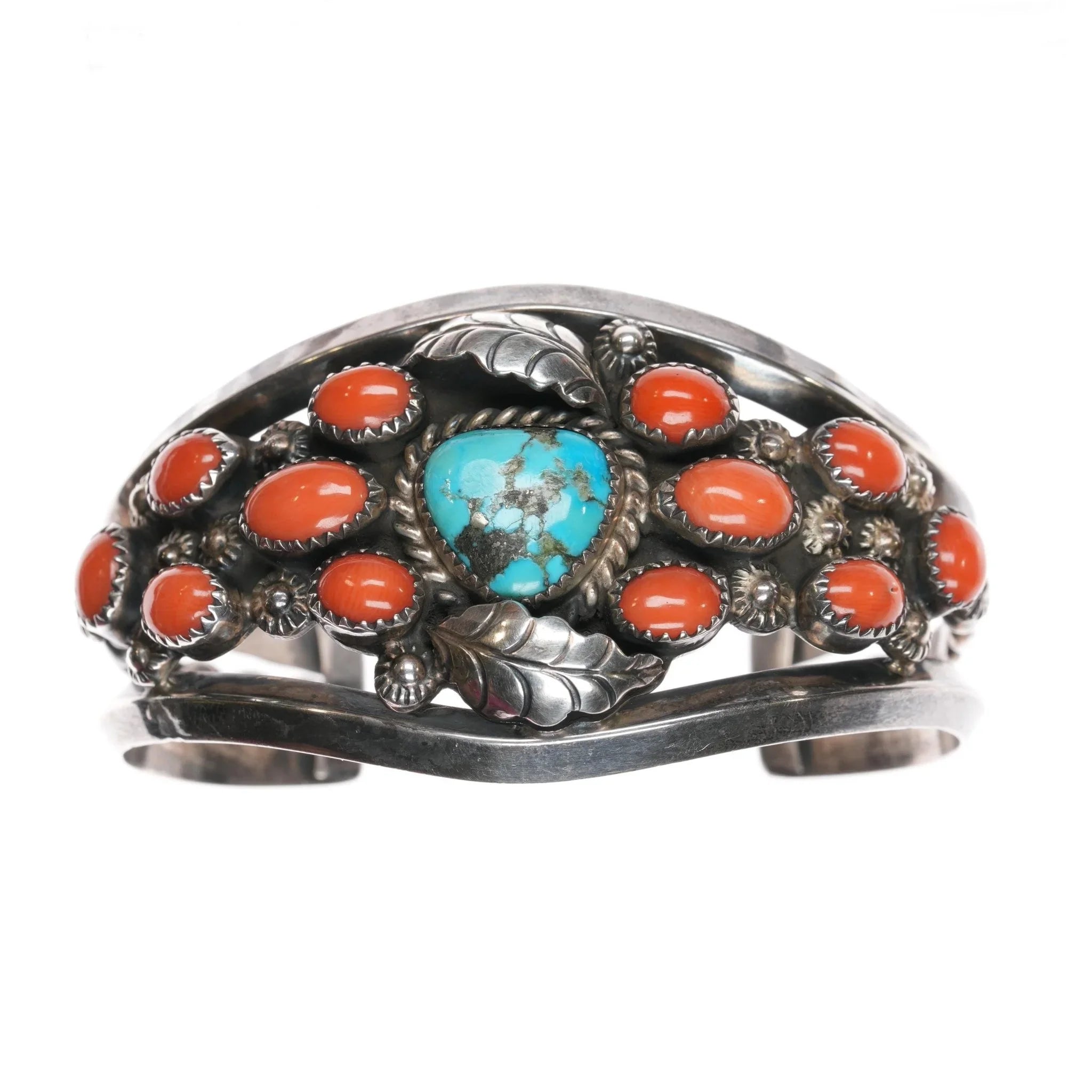 6.5" Mary Matt Navajo (1924-2009)- Atkinsons Trading post Sterling turquoise coral cuff bracelet. No issues, weight and measurements in pics.