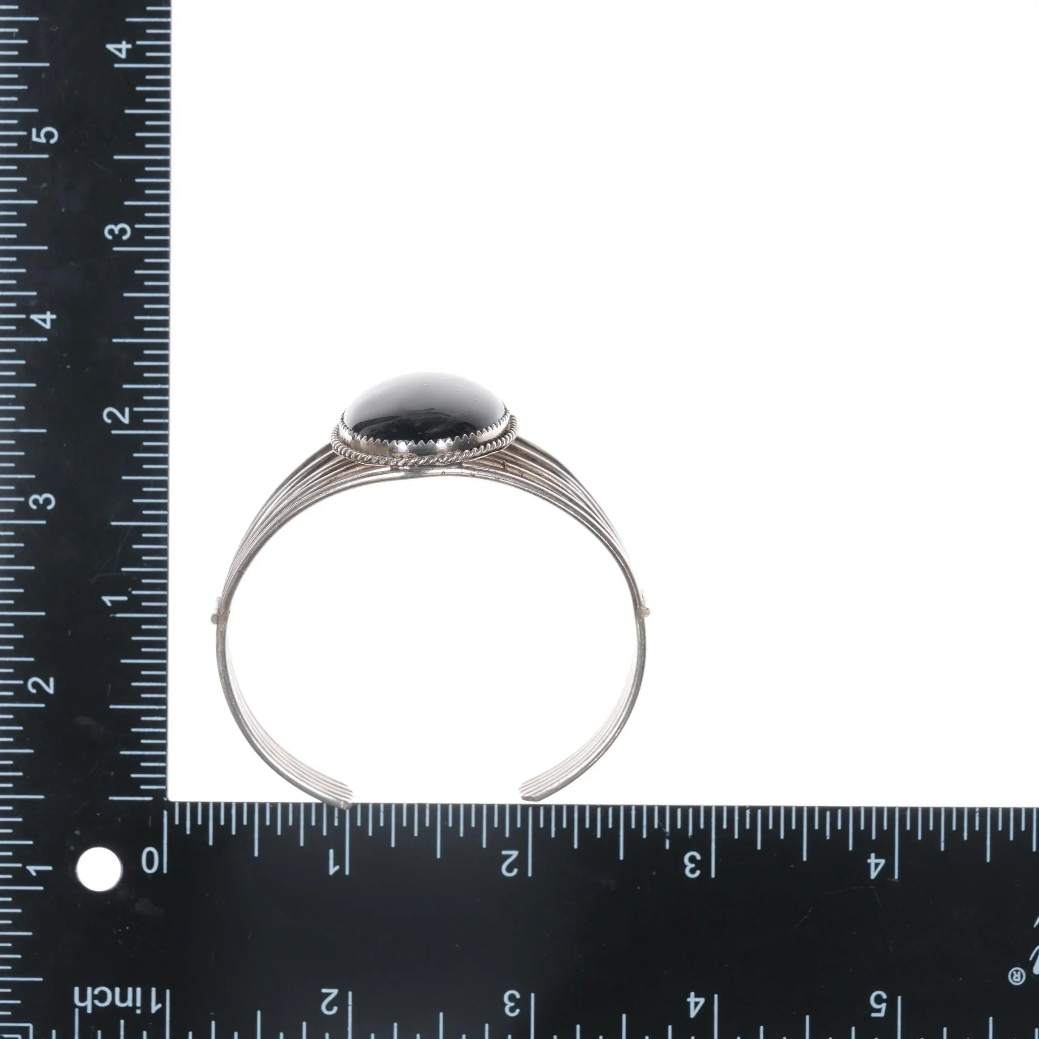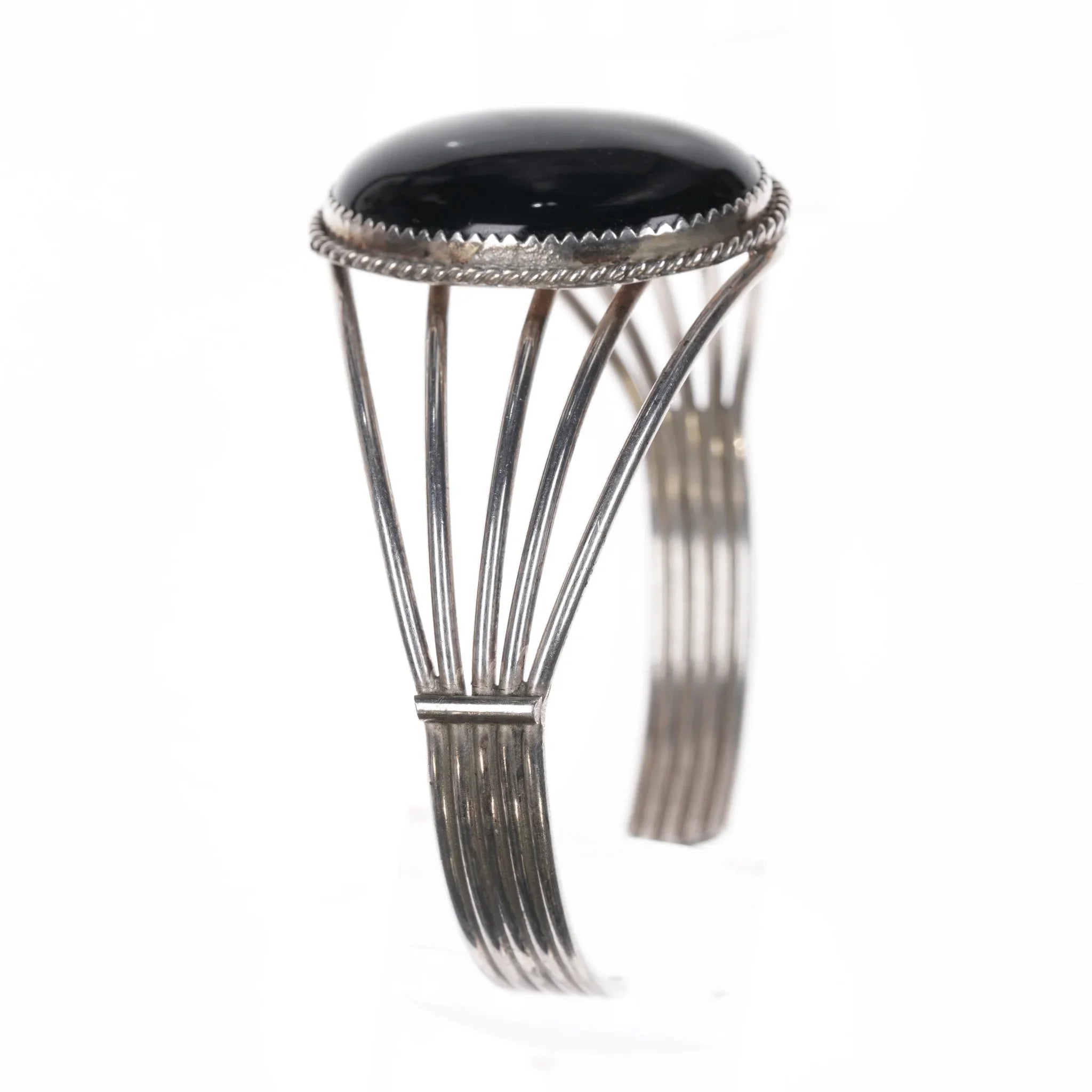6.5" Retro Native American H Springy sterling and onyx cuff bracelet