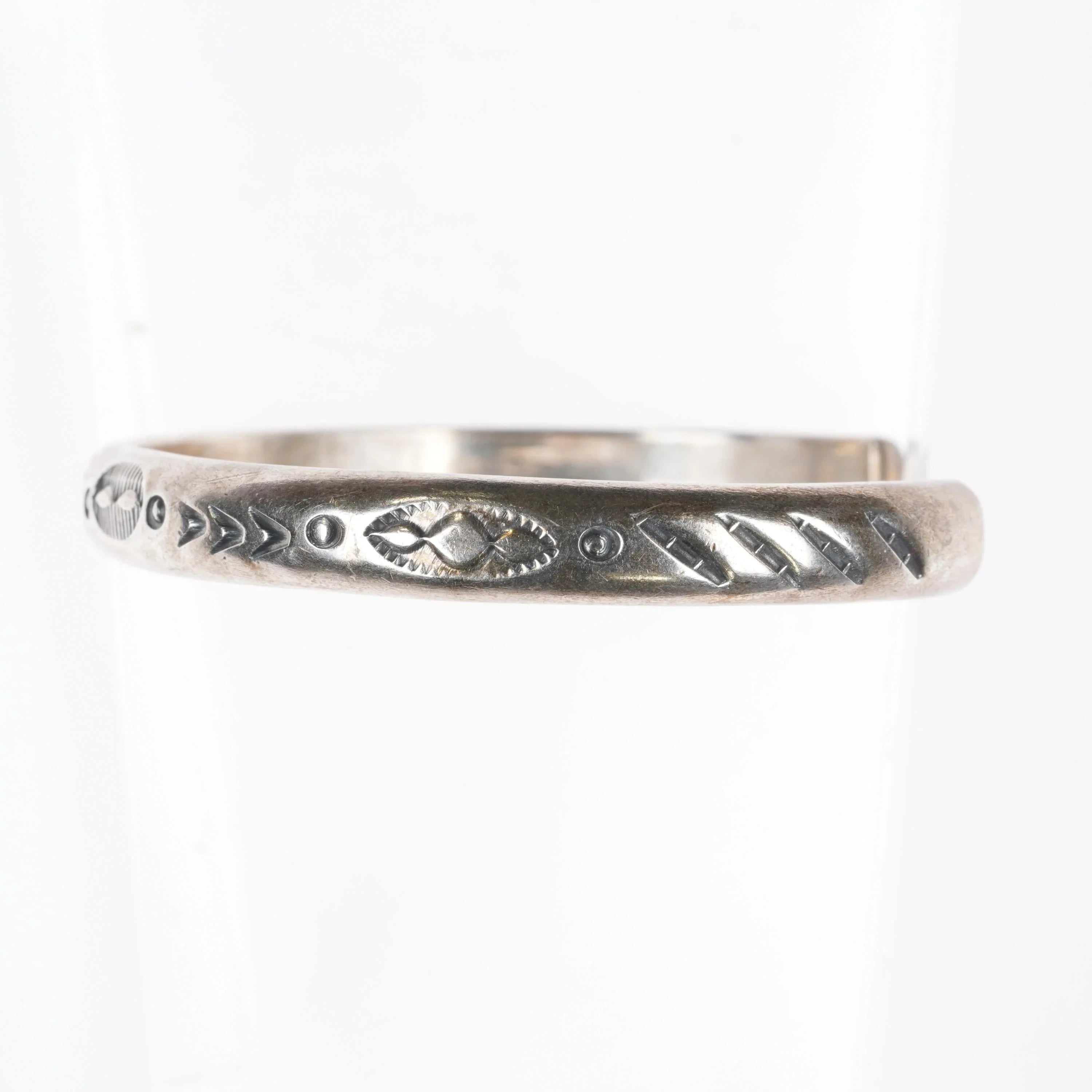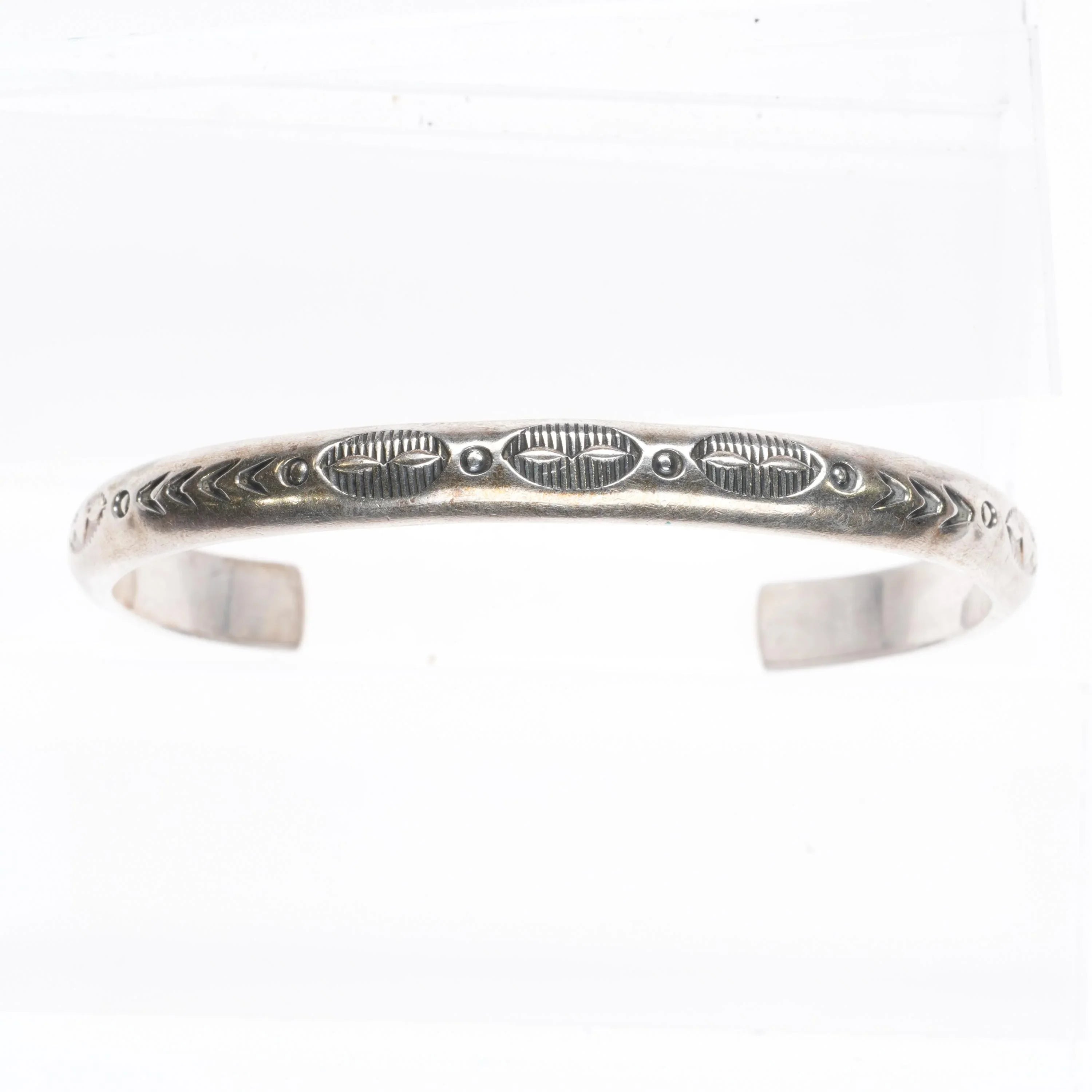 6.5" Sharon Cisco Navajo slim stacker hand stamped sterling silver cuff bracelet