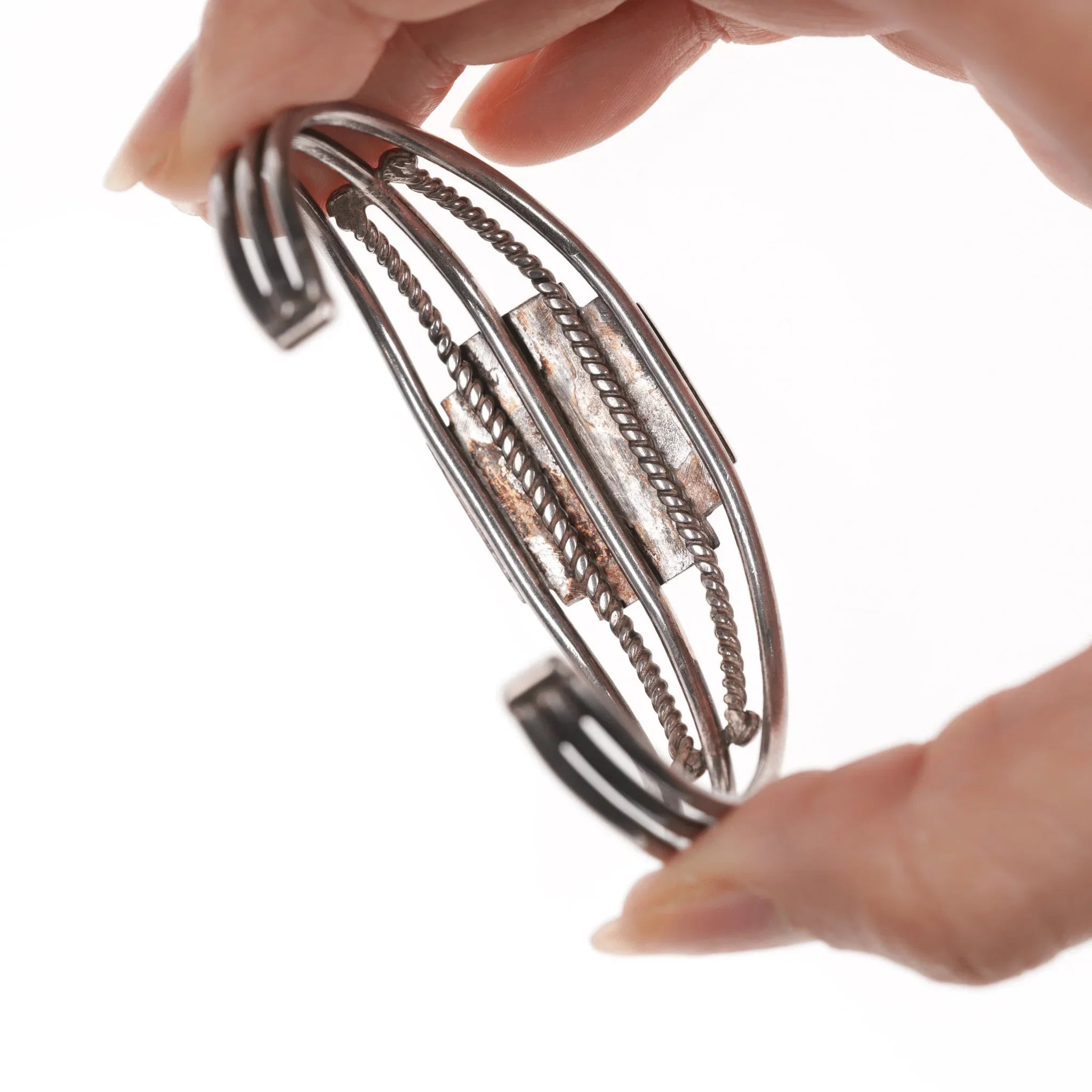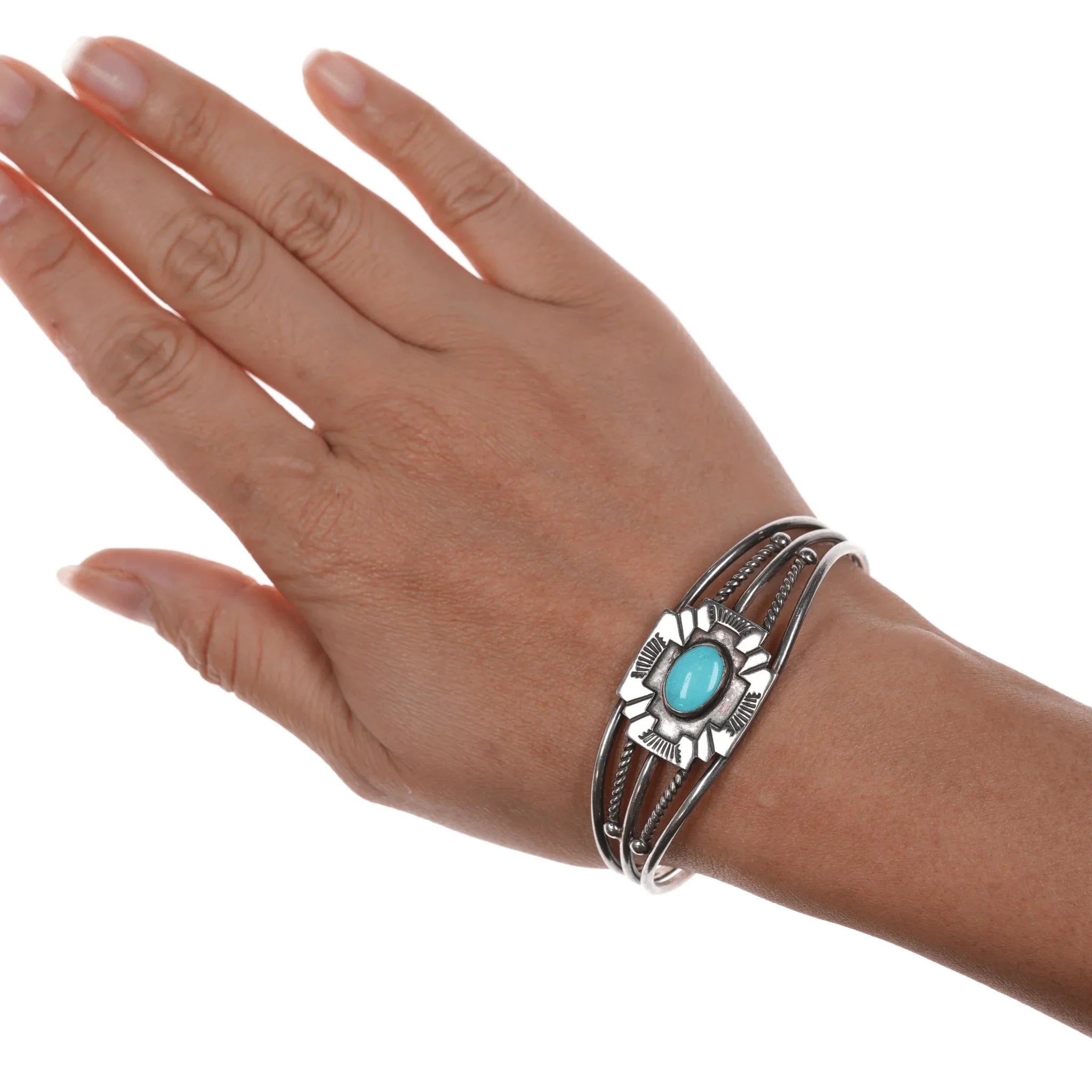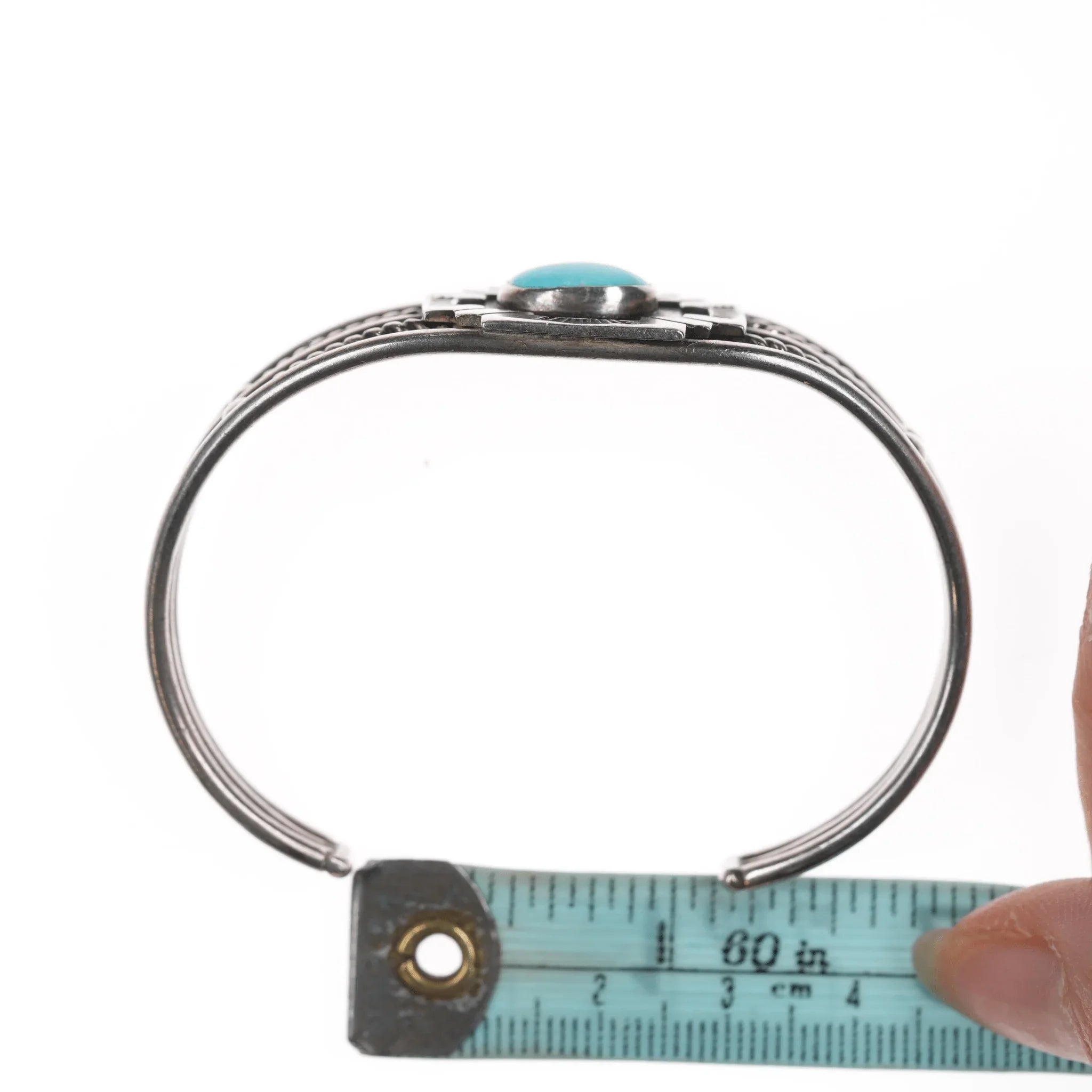 6.5" Vintage Native American silver Maltese Cross cuff bracelet with turquoise