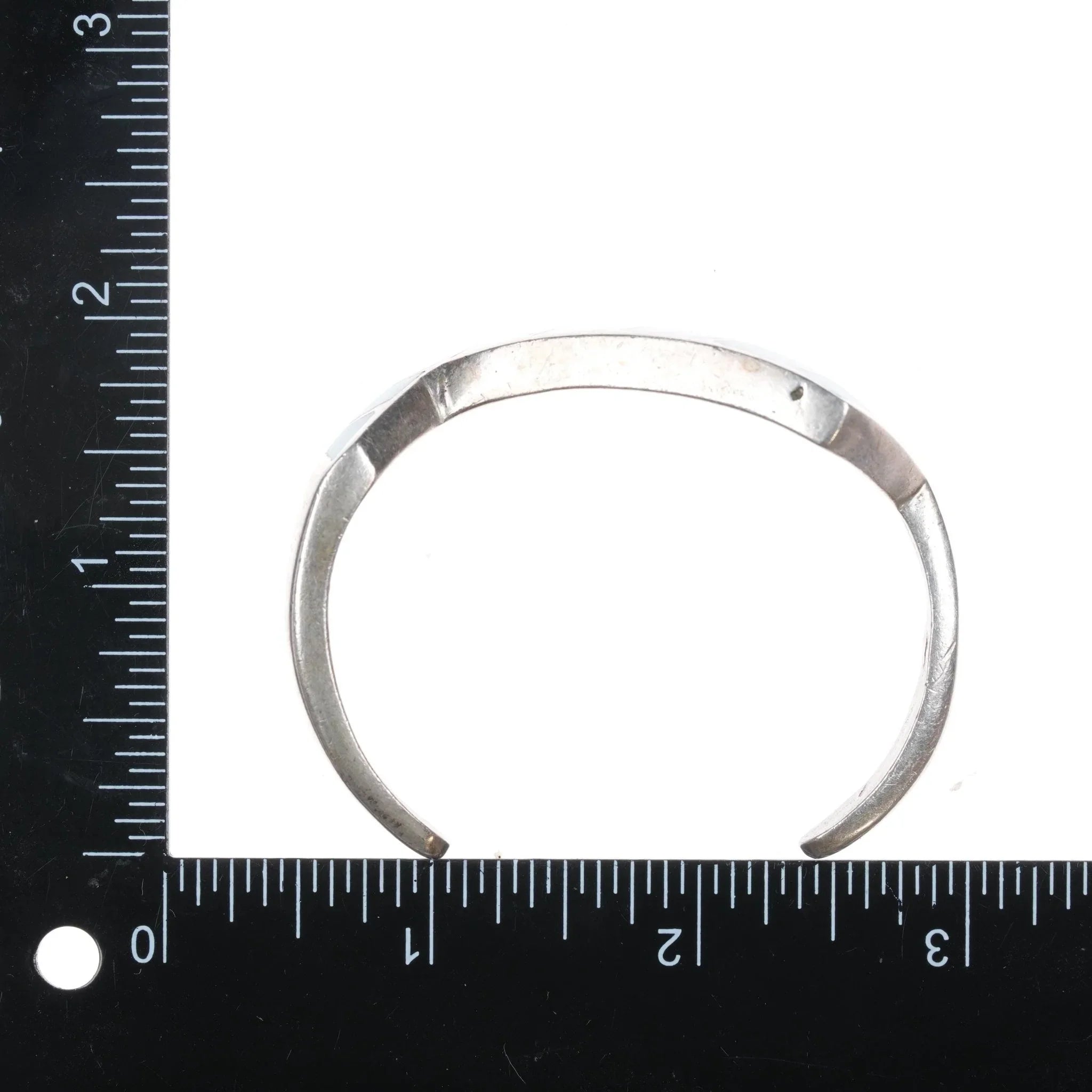 6.5" Vintage Native American silver turquoise channel inlay cuff bracelet. Unmarked as typical of this era (third quarter of 20th century) No issues, weights and measurements in pics.