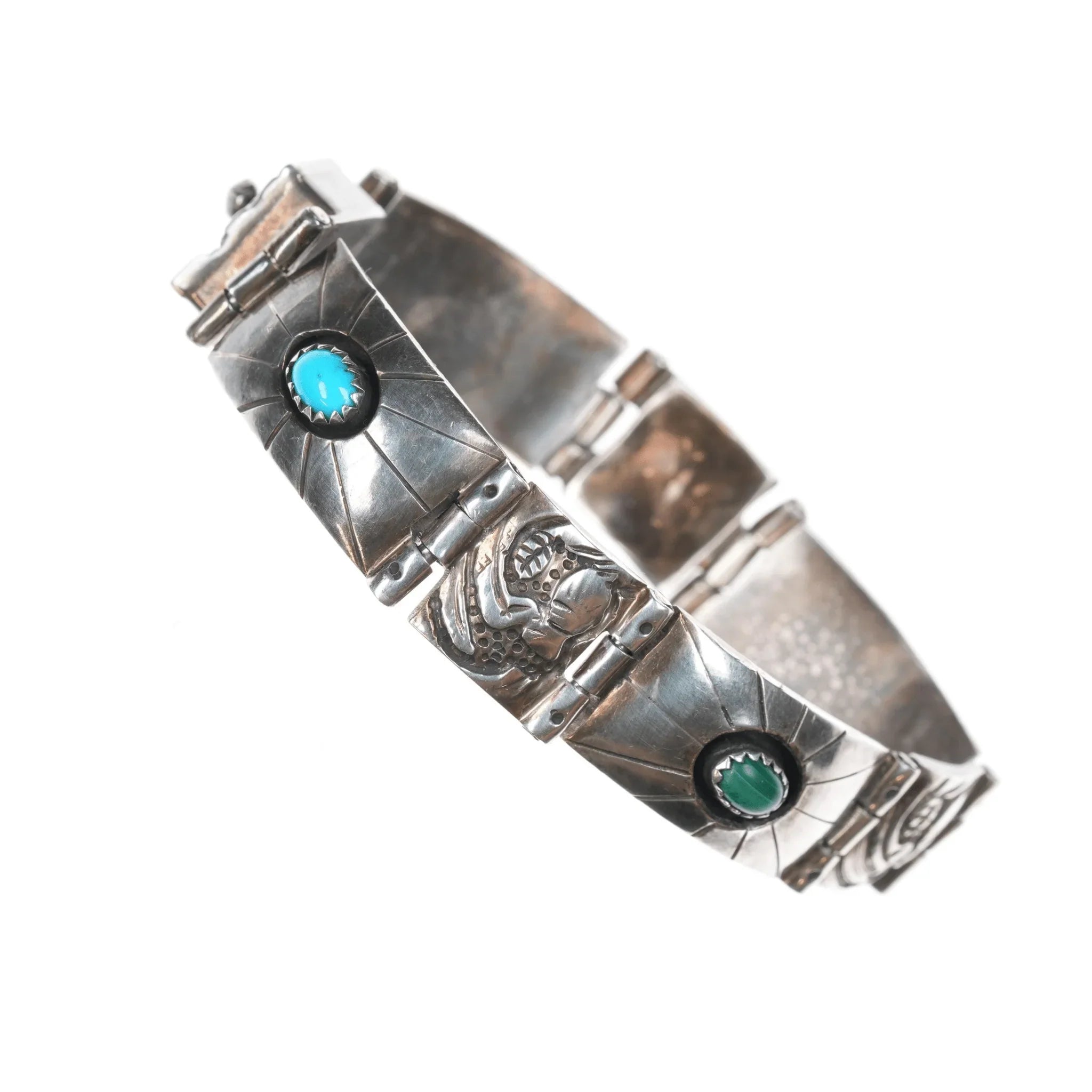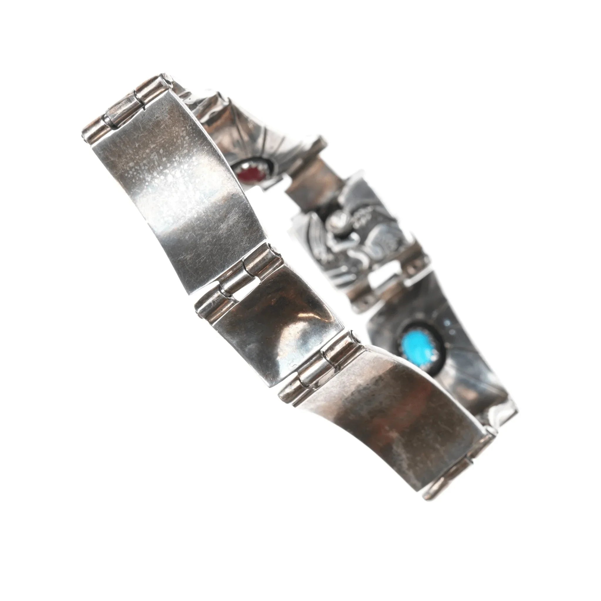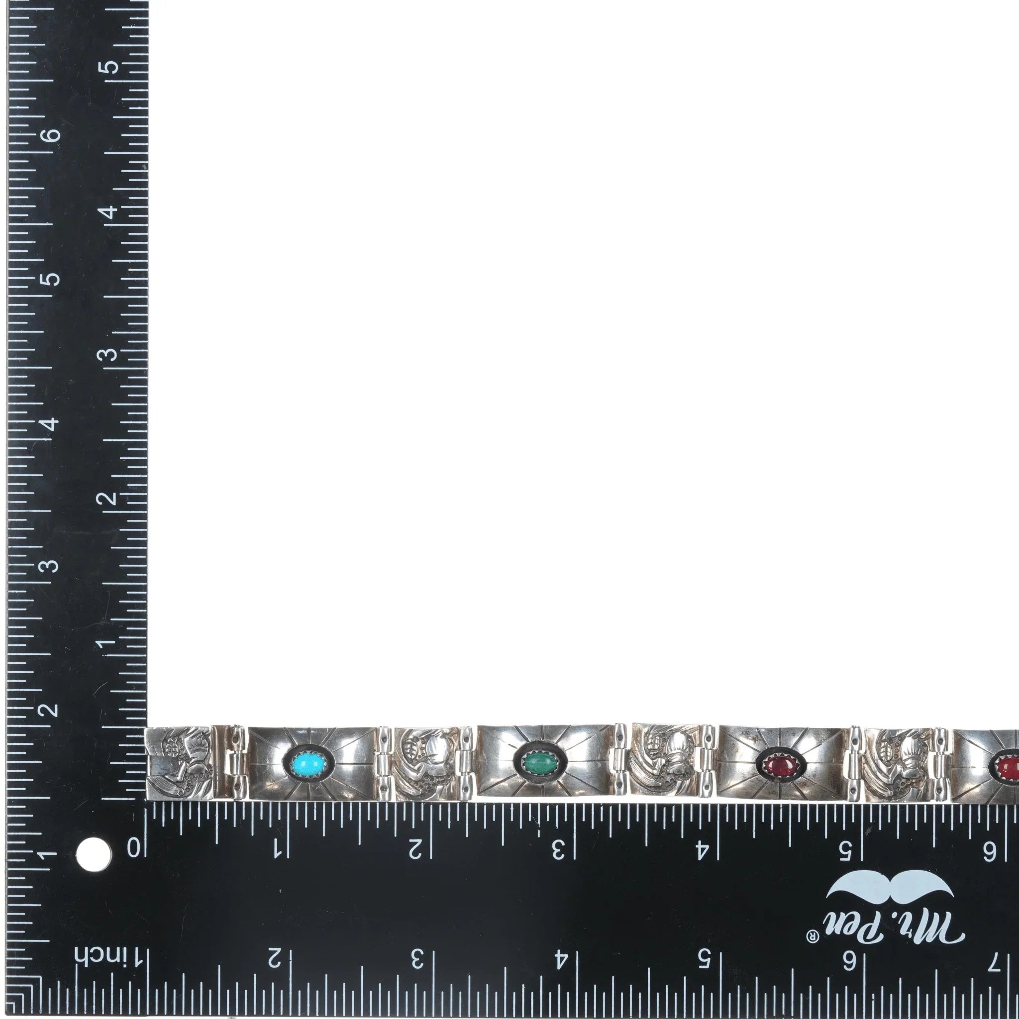 6.5" Vintage Native American sterling multi-stone link bracelet