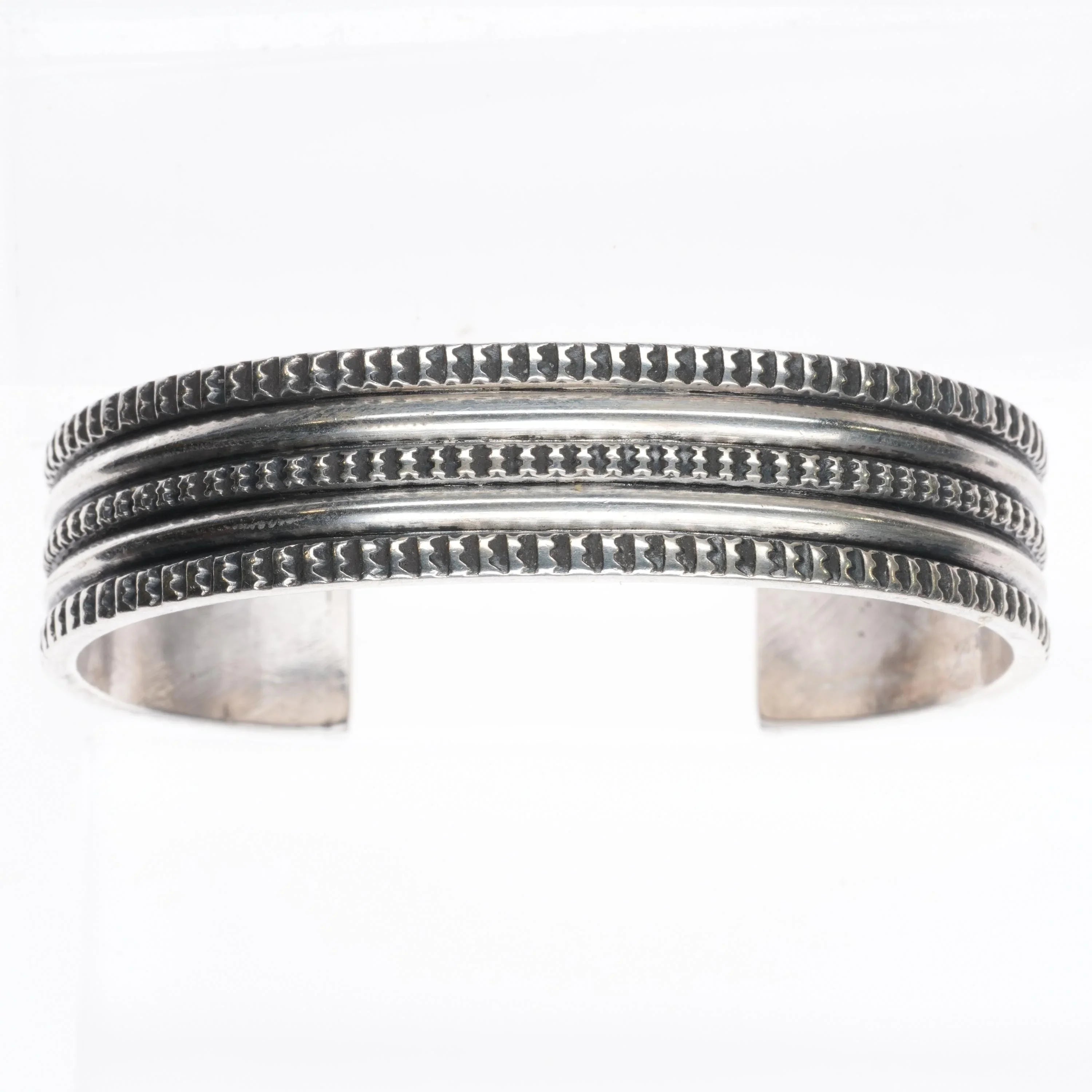 6.5" Vintage Navajo heavily stamped ingot silver cuff bracelet sterling