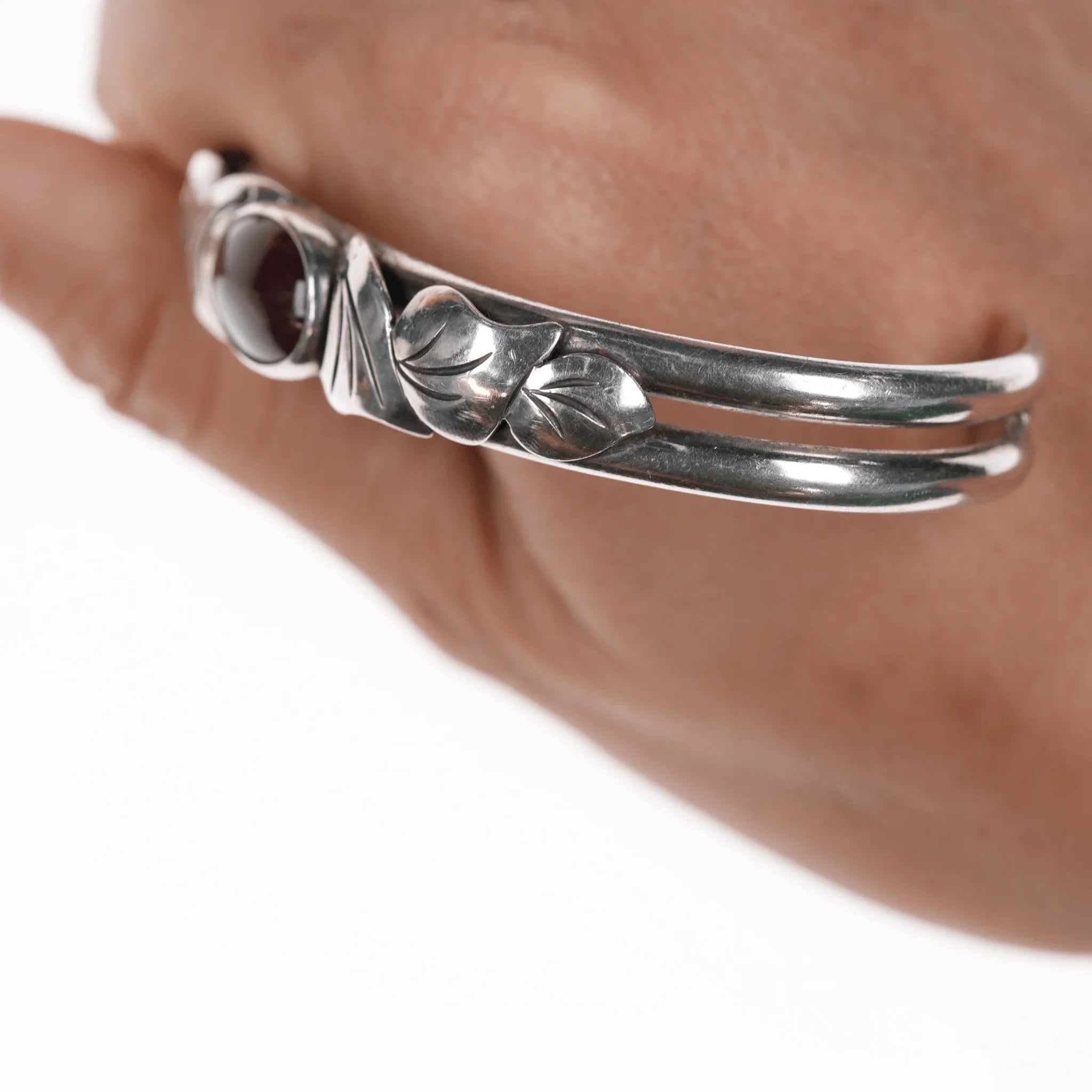 6.5" Vintage Southwestern modernist sterling and carnelian cuff bracelet