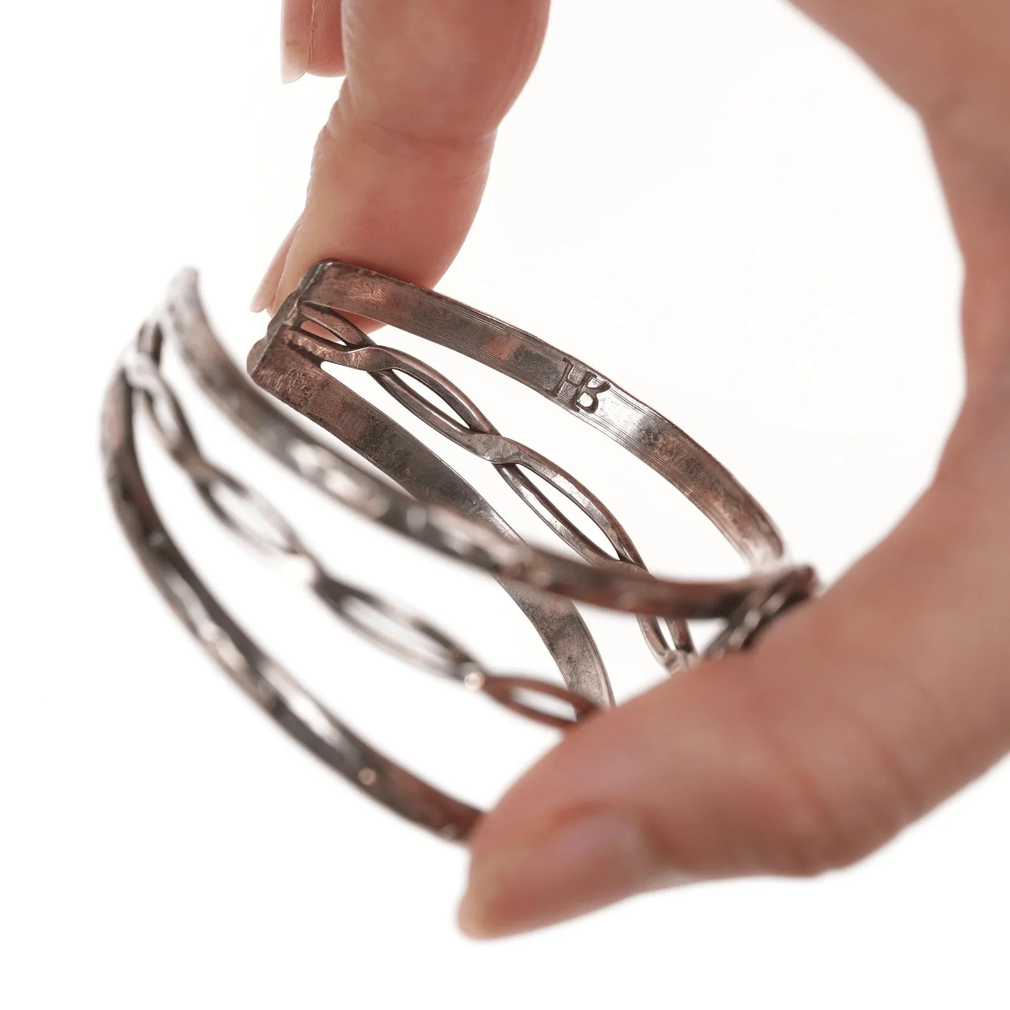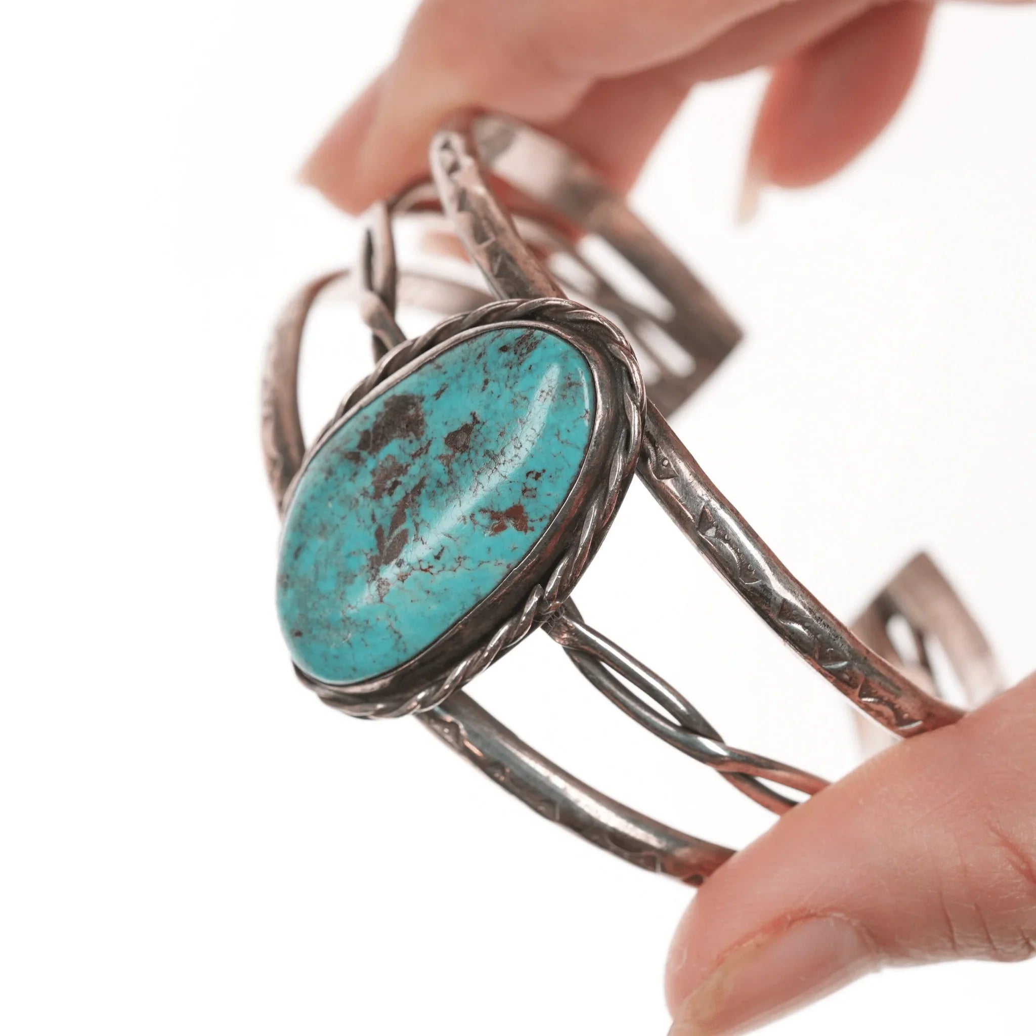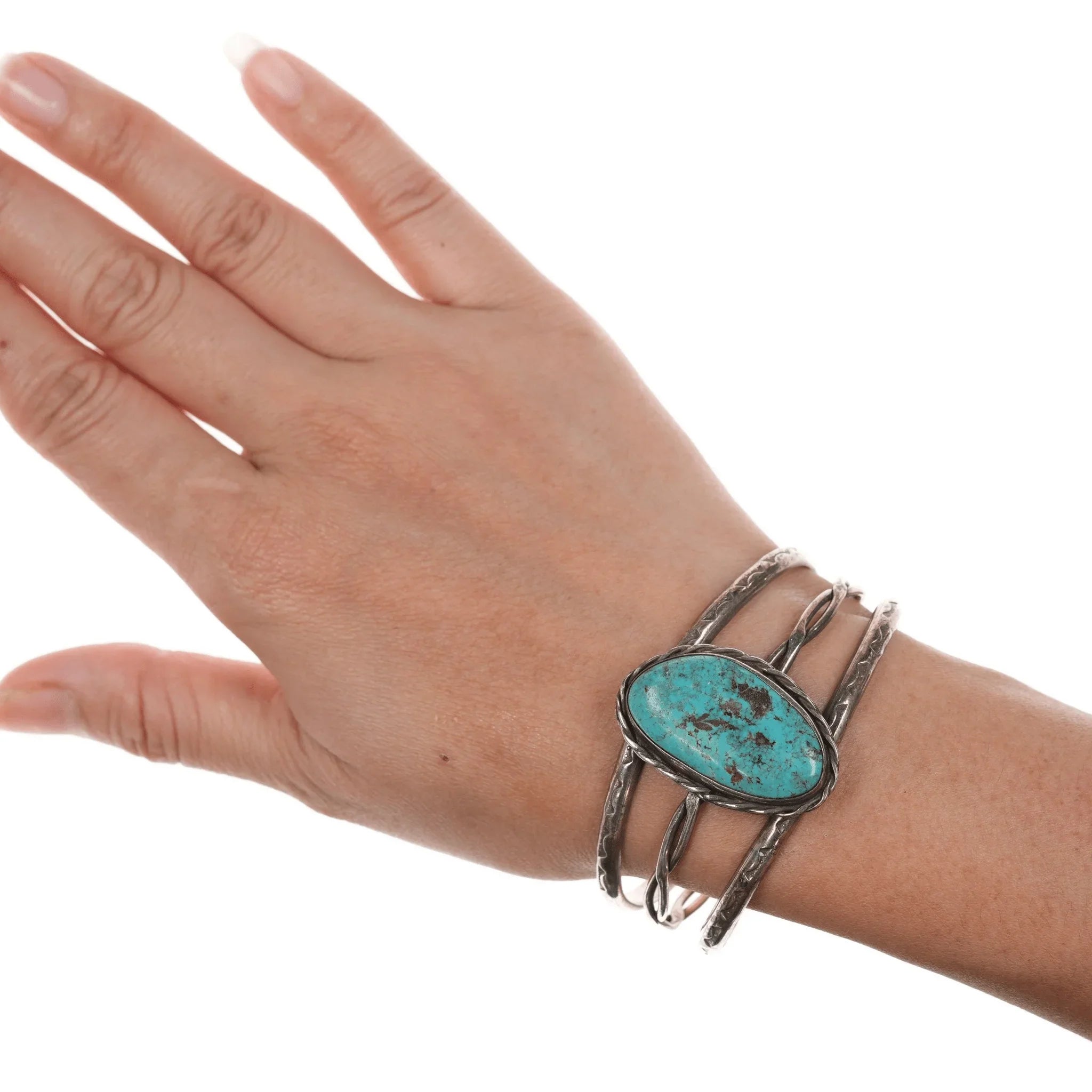 6.5" Vintage Triple shank Sterling turquoise Native American cuff bracelet