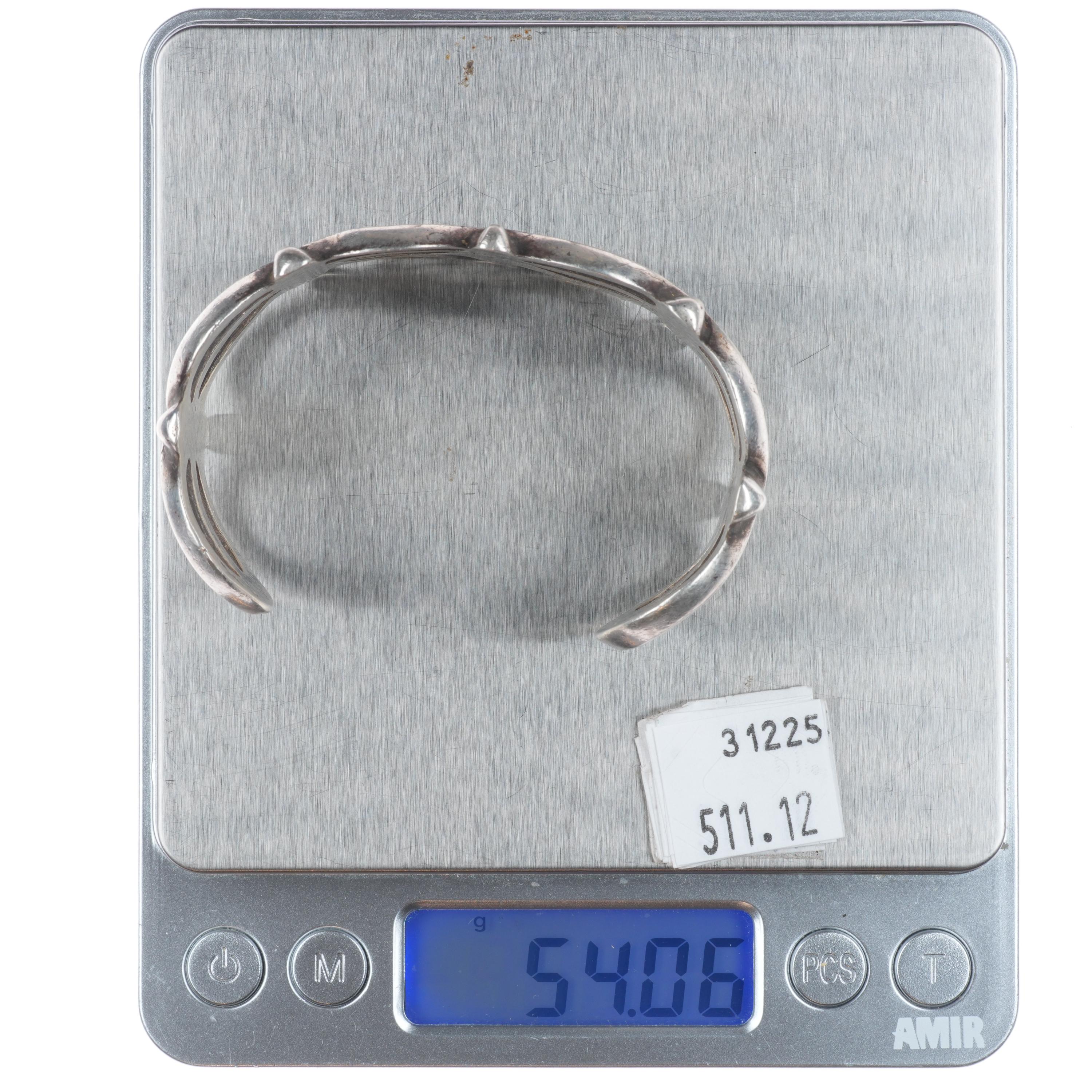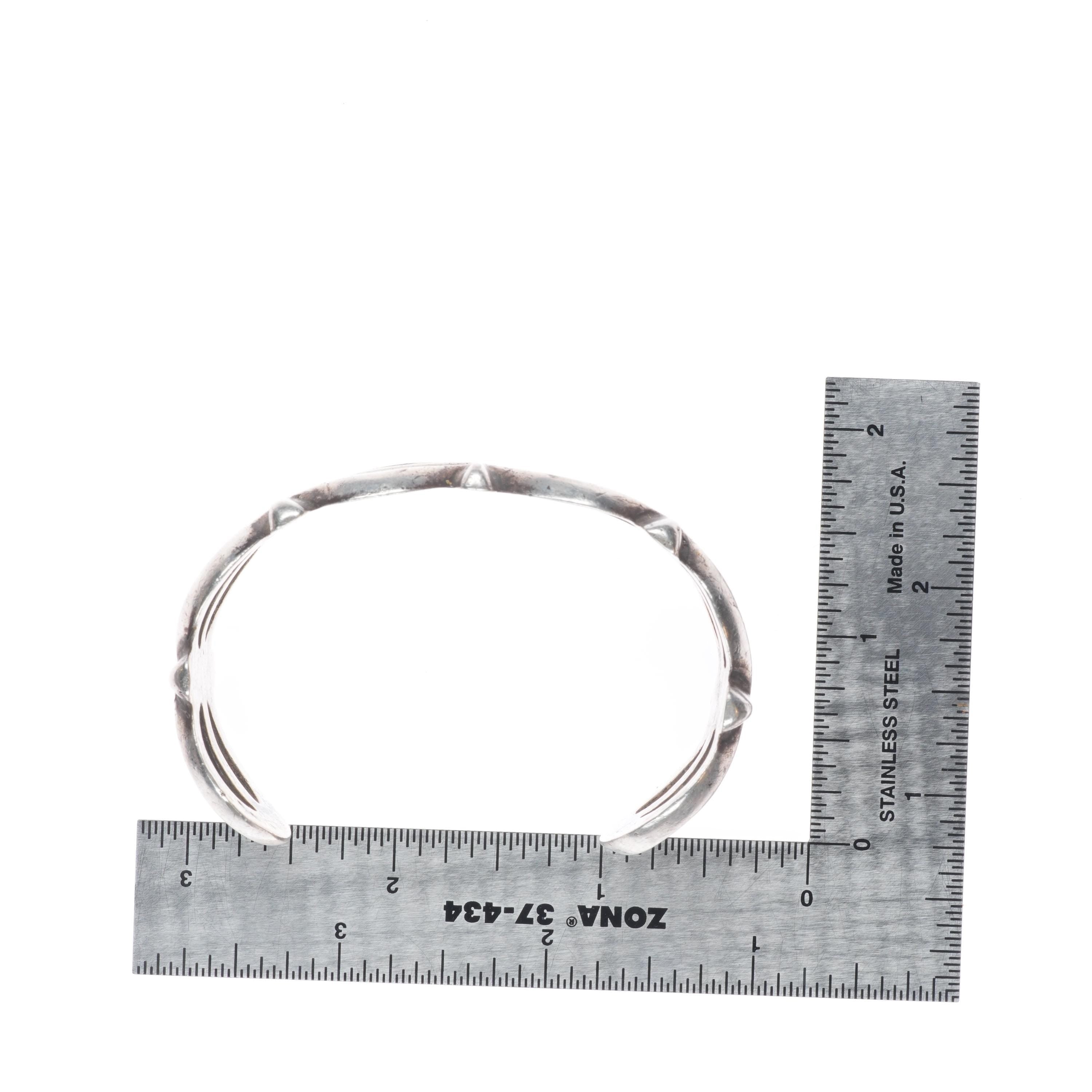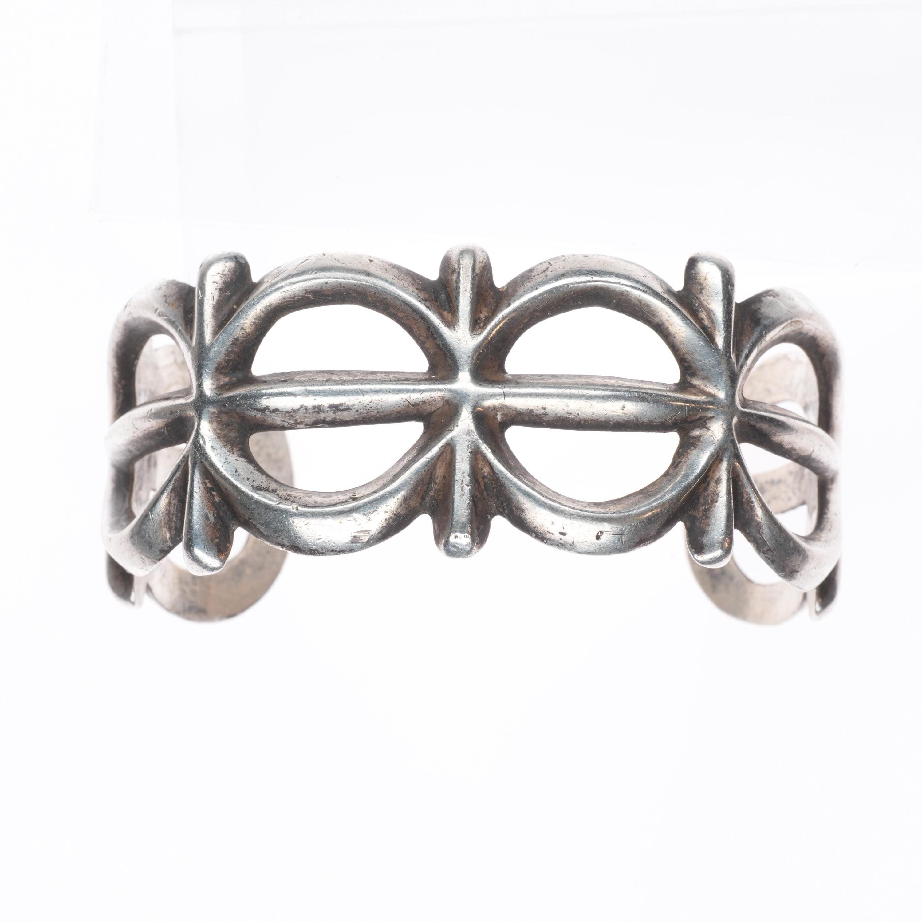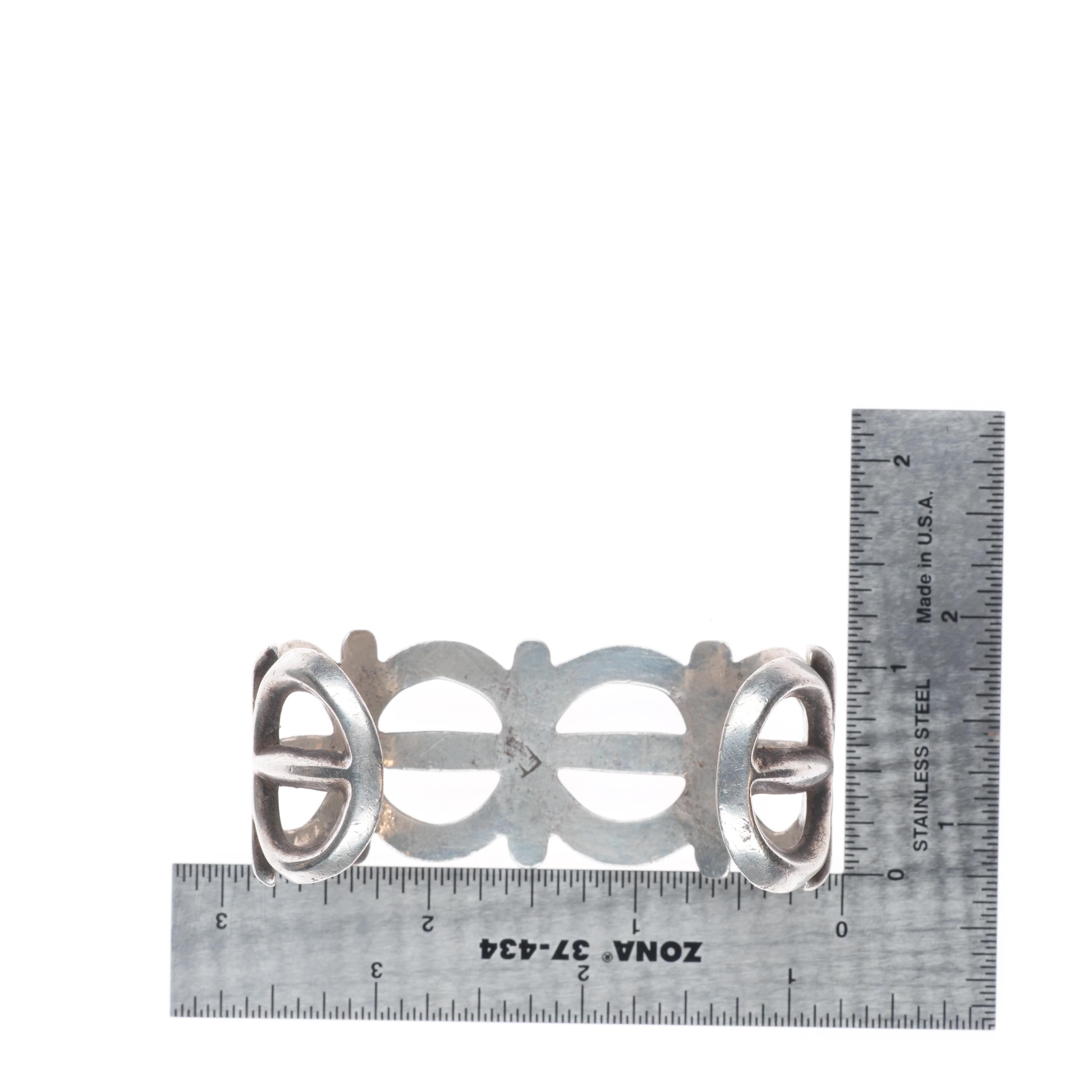 6.6" Vintage Navajo or Zuni cast ingot/sterling silver cuff bracelet. Tested and guaranteed solid sterling silver with weight and measurements in pictures. Circa second quarter of the 20th century with age appropriate wear.. Illegible partial hallmark, I don‘t feel like this is FJ for Felix Joe. I think this is an old bracelet.