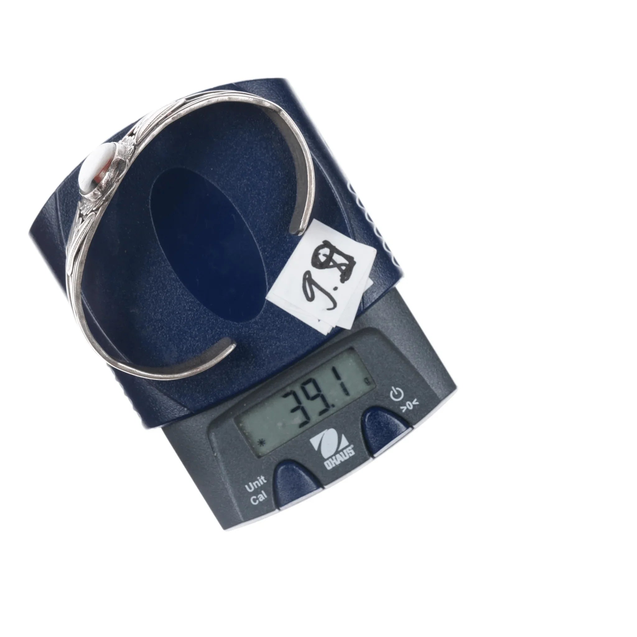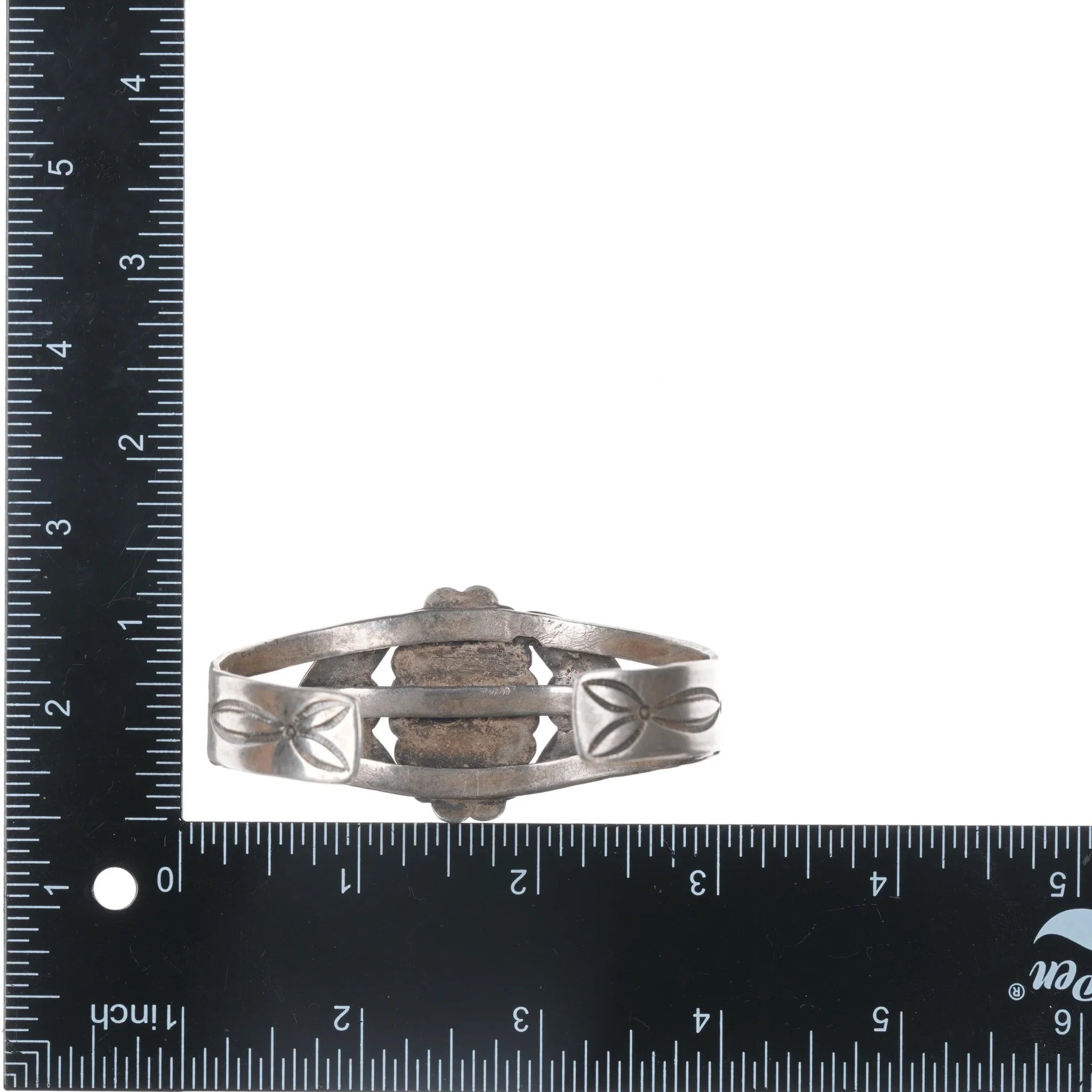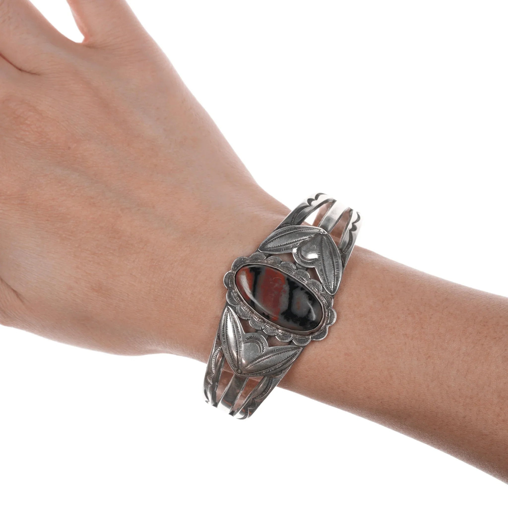 6.75" 1940's Native American silver petrified wood cuff bracelet