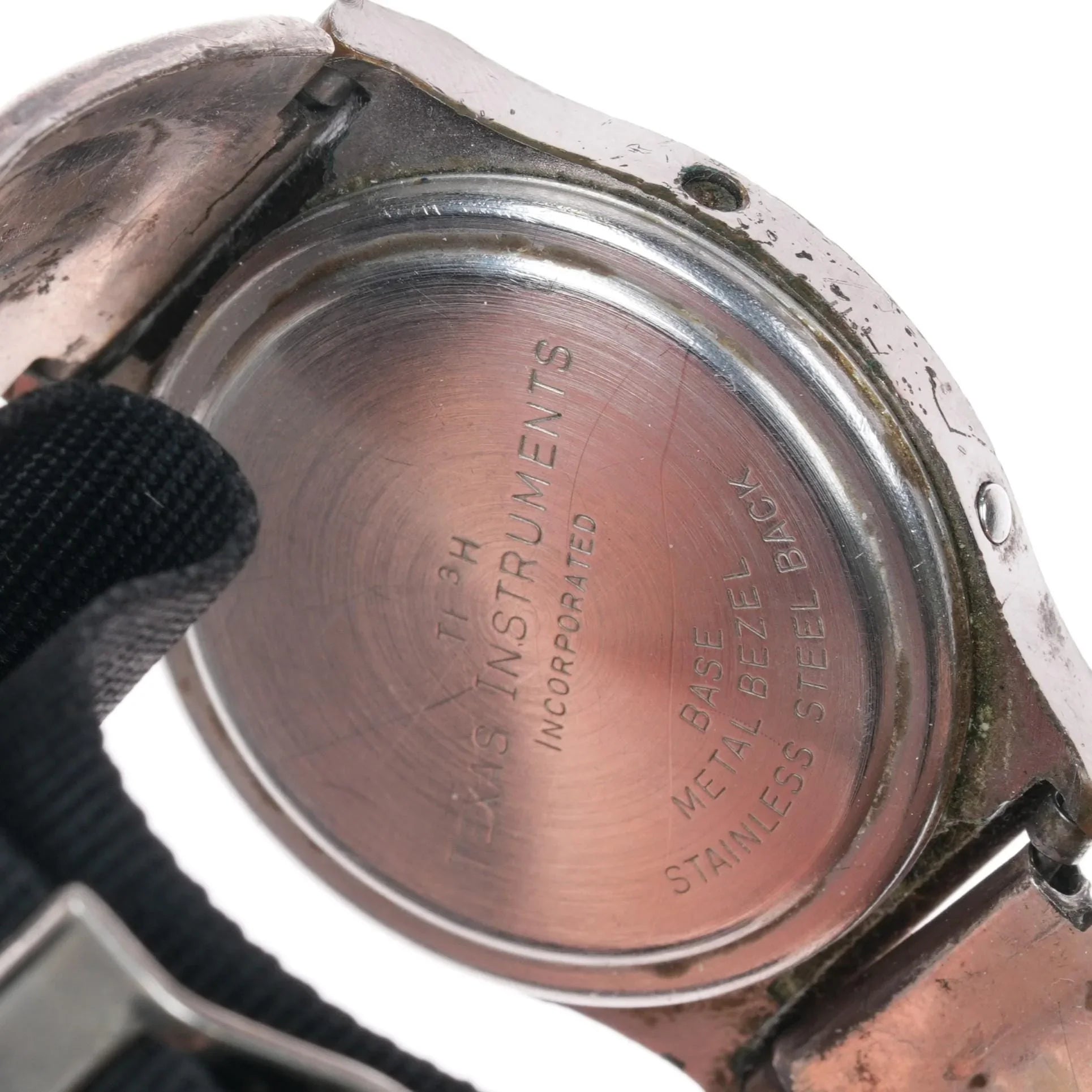 6.75" c1950 Zuni sterling silver turquoise flush inlay watch tip 70‘s TI digital. Selling the combo shown, band is adjustable and replaceable. Watch is untested in any way, sterling tips are unmarked.