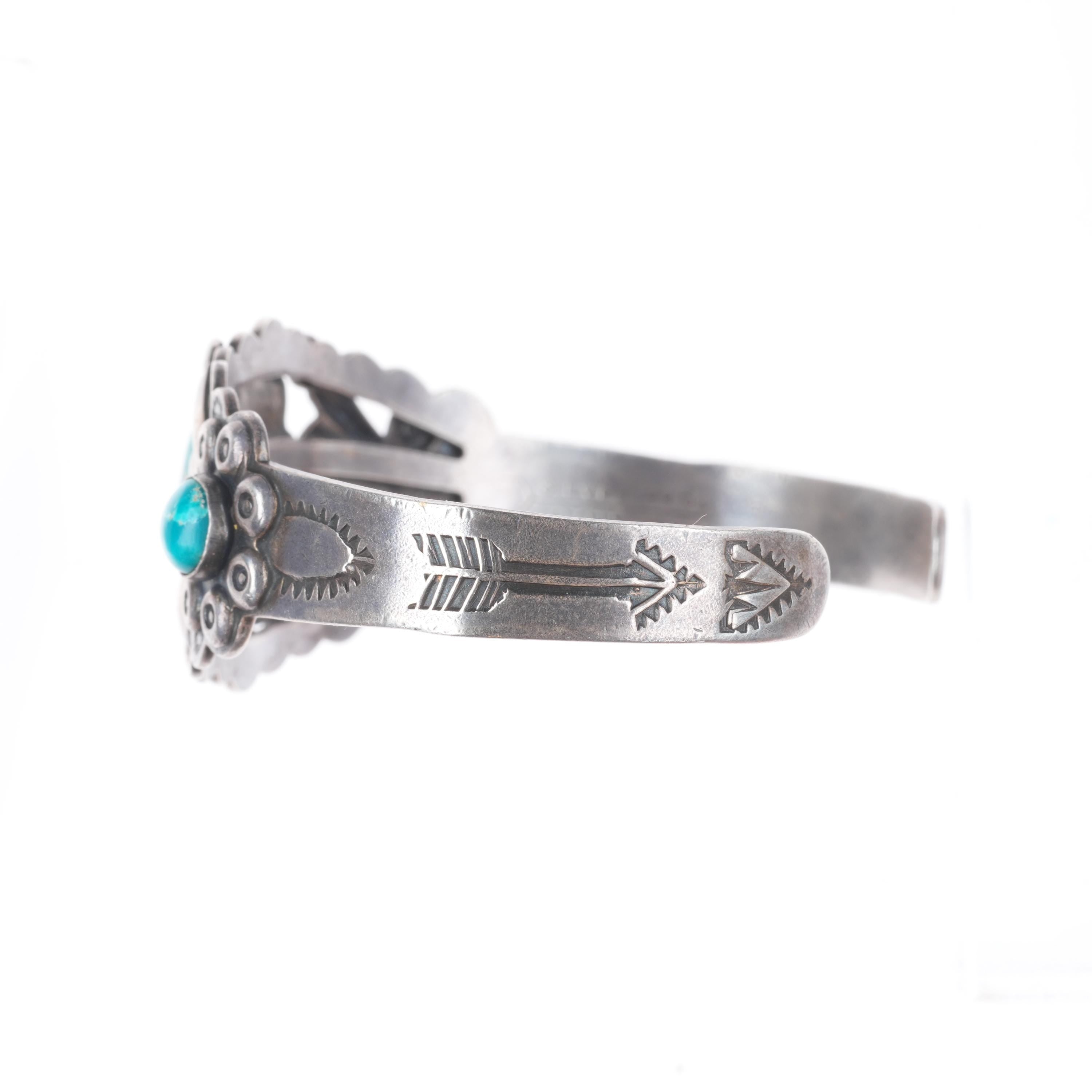 6.75" Fred Harvey Era c1940's green turquoise sterling silver cuff bracelet Condividi WhatsApp Facebook X Pinterest Messenger Email Forma del prodotto $295.00 escl. I.V.A. 1 in magazzino Quantità Aggiungi al carrello Questo articolo è un acquisto ricorrente o dilazionato. Continuando, acconsento all'informativa sulla cancellazione e autorizzo all'addebito del mio metodo di pagamento ai prezzi, alla frequenza e alle date elencati su questa pagina fino all'evasione del mio ordine o al mio annullamento, se consentito.