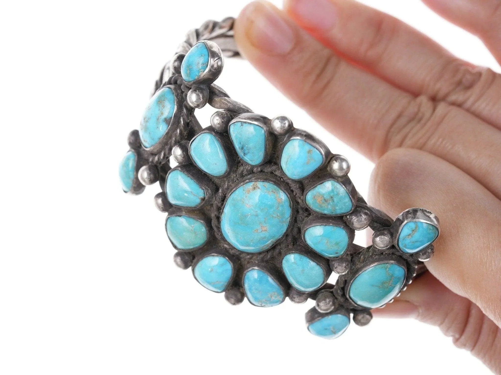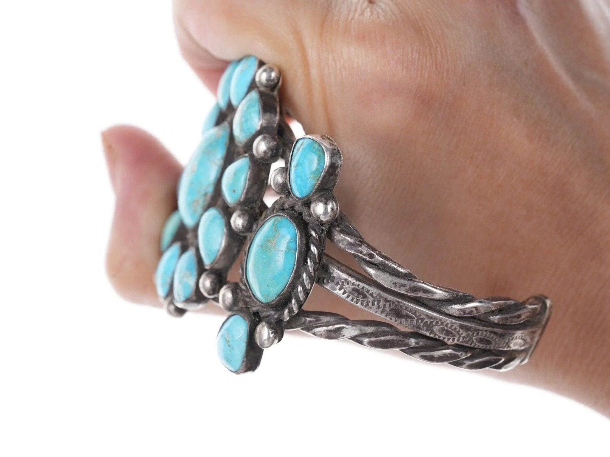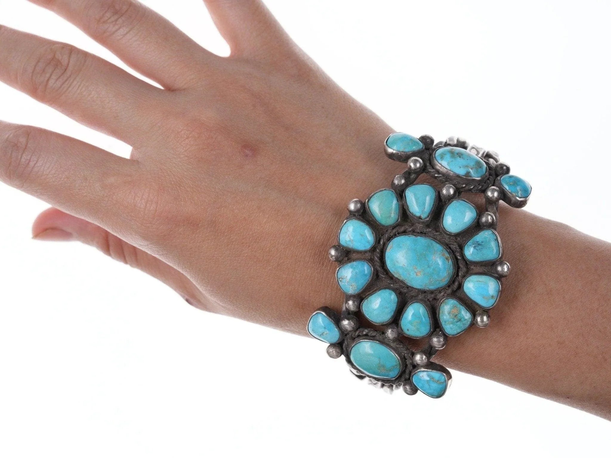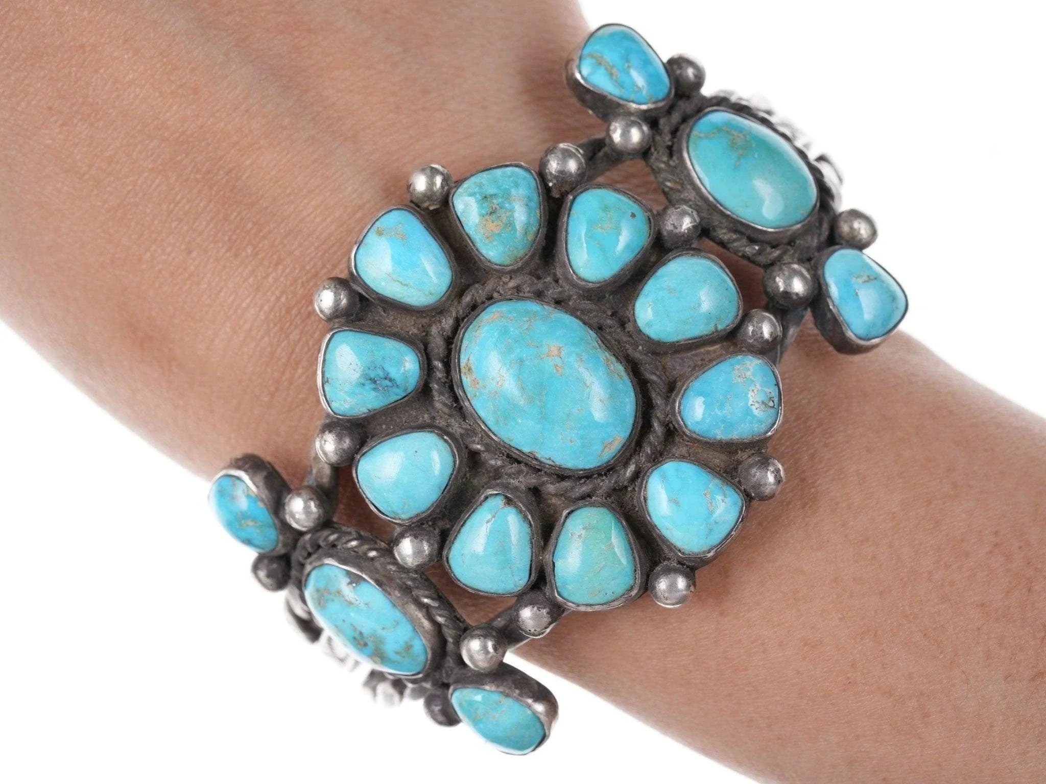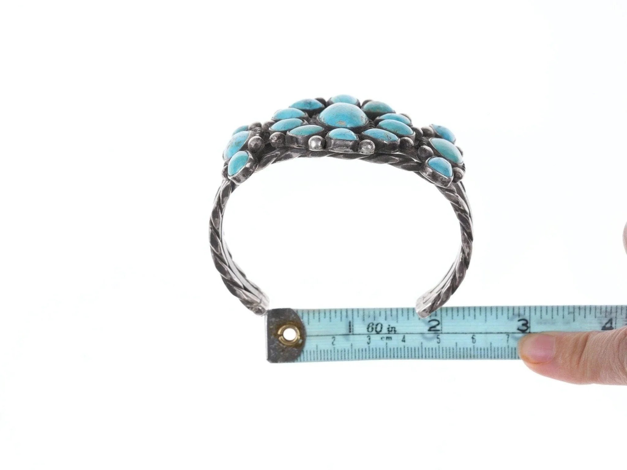 7.5" 30's-40's Navajo Silver Turquoise cluster bracelet. Fits up to a 7.5" wrist.