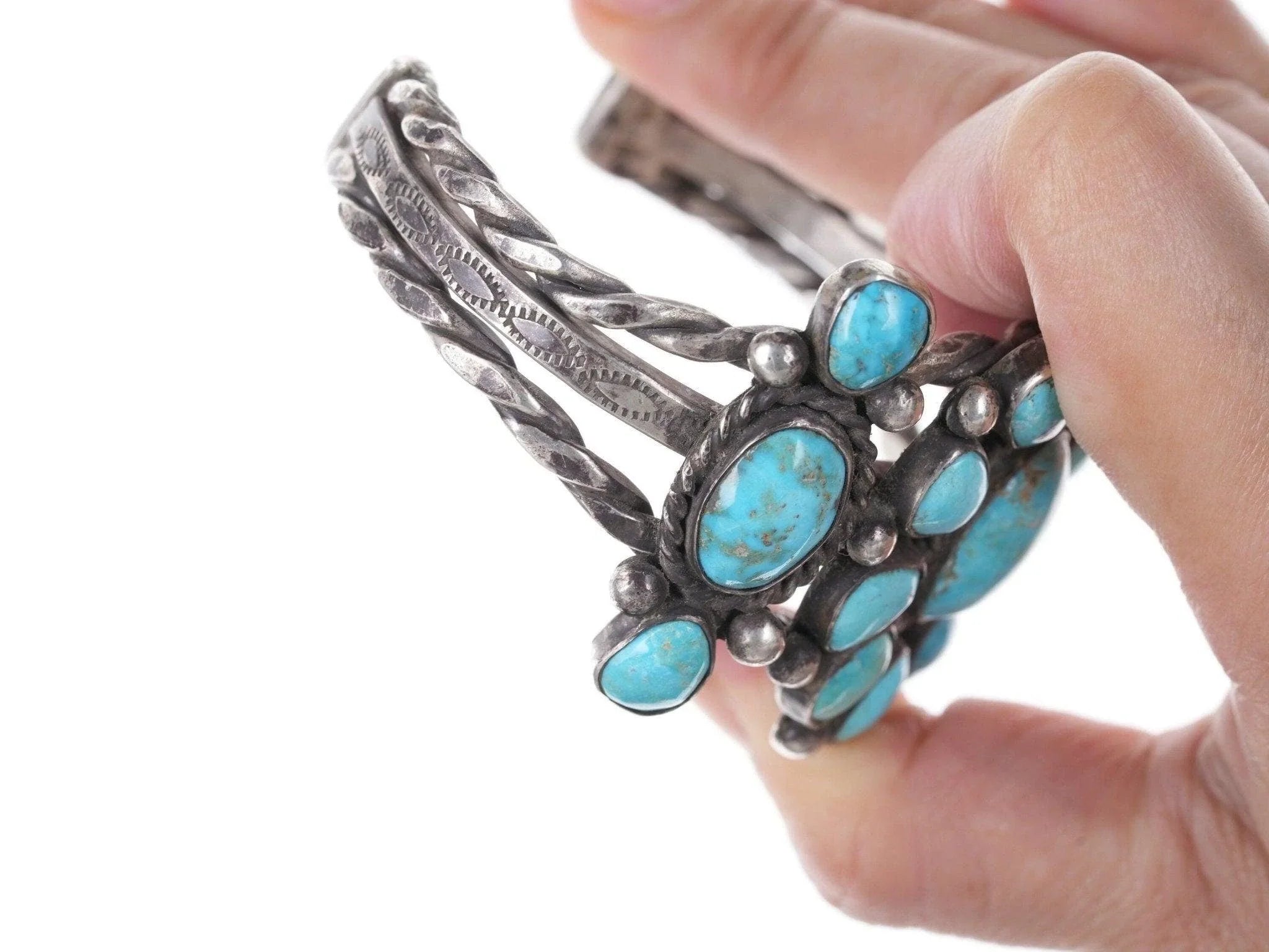 7.5" 30's-40's Navajo Silver Turquoise cluster bracelet 4