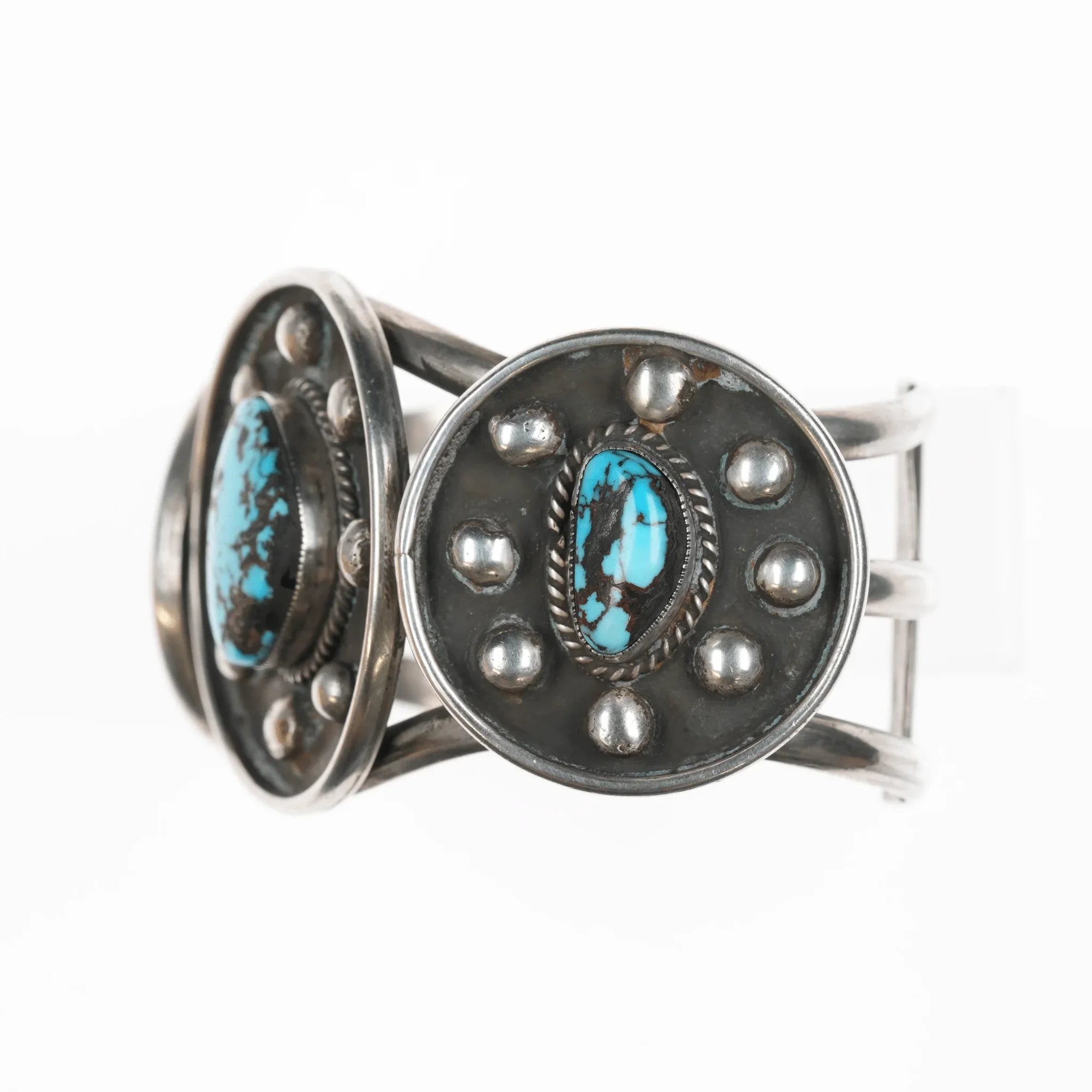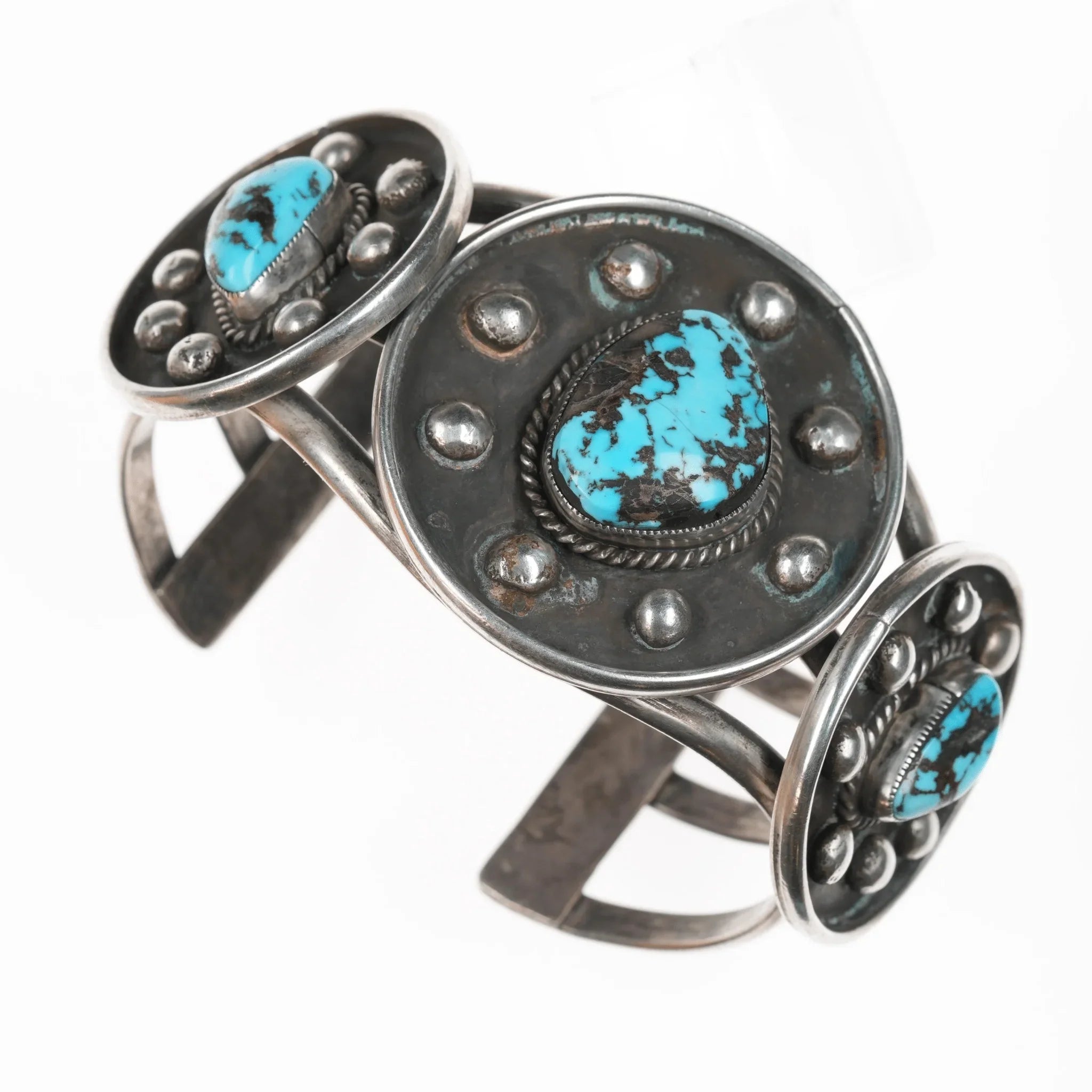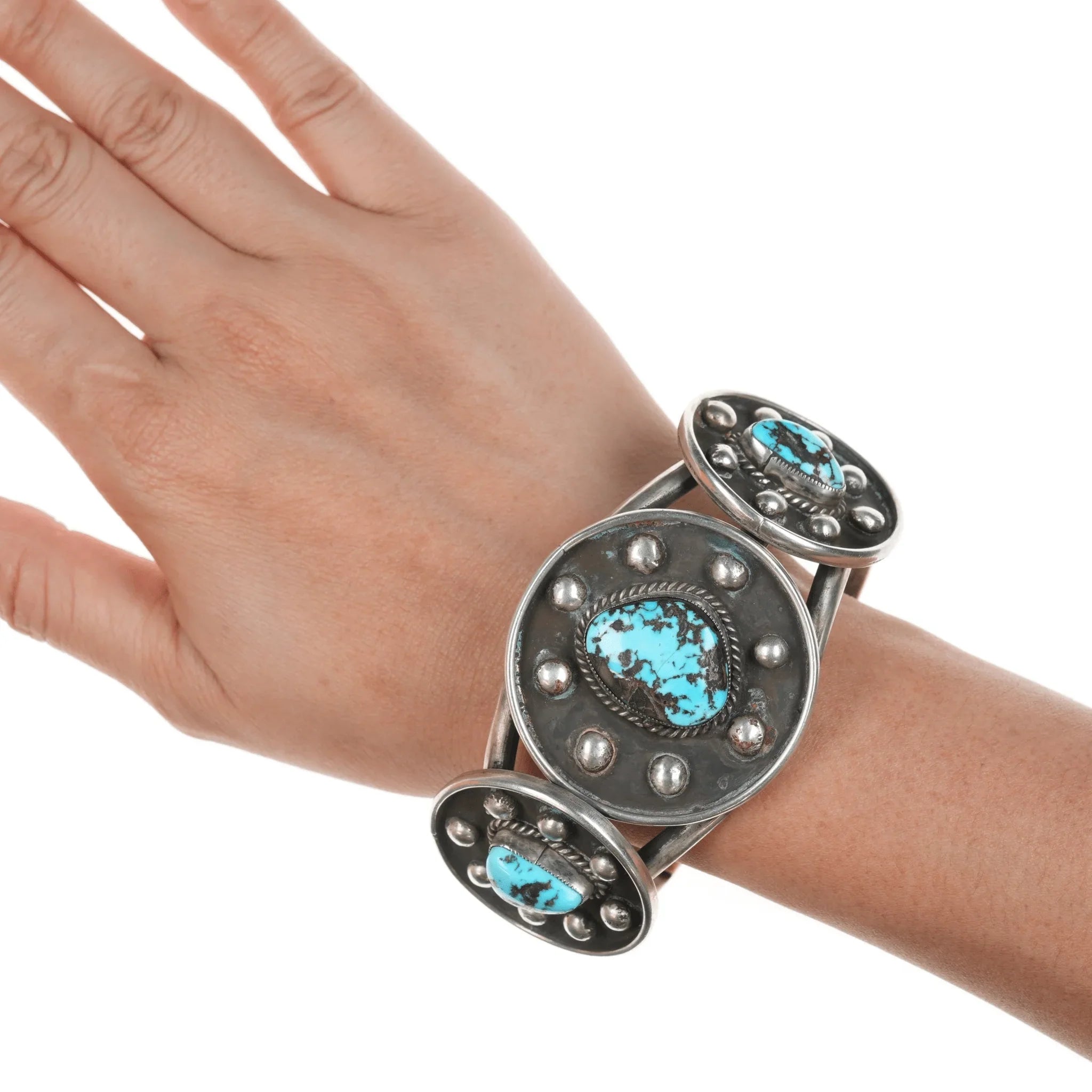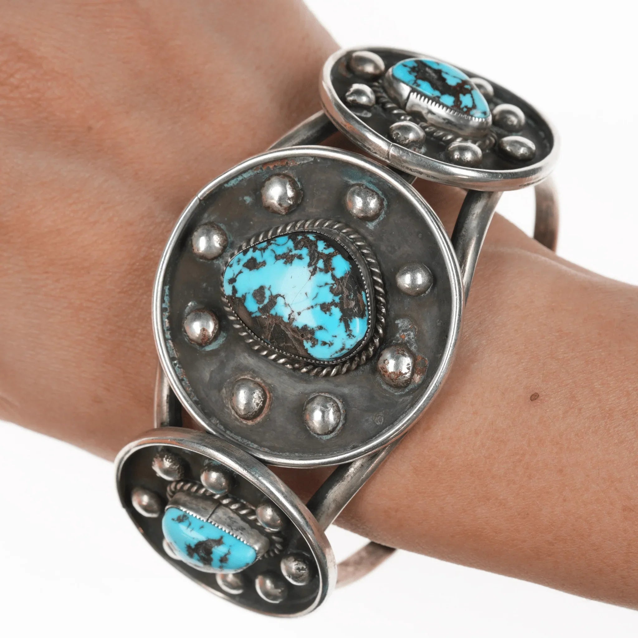 7.5" Vintage Native American sterling and turquoise cuff bracelet
