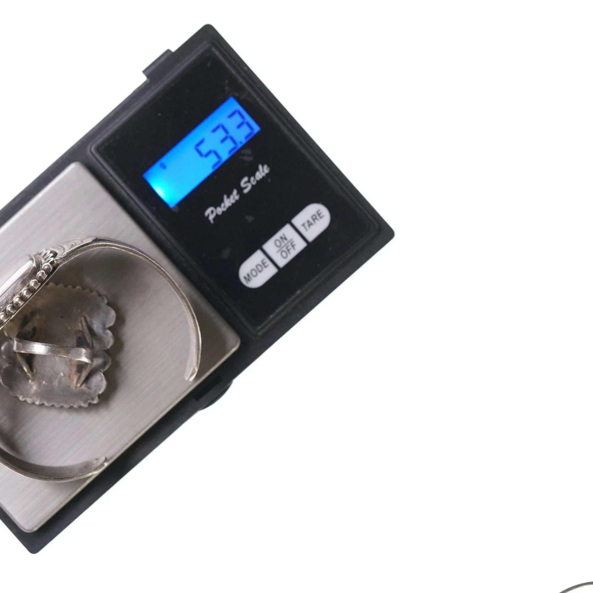Tutti i metalli preziosi sono testati e garantiti, qualsiasi gioiello dei nativi americani denominato argento o sterline è garantito essere almeno al 90% di argento (moneta) e possibilmente un contenuto superiore. Tutto ciò che è contrassegnato è garantito per essere ciò che è contrassegnato, la maggior parte dei braccialetti sono fotografati su un polso da 6" (non peloso), gli anelli fotografati sul dito della dimensione appropriata quando possibile. Con i braccialetti, se la misura non è indicata nella descrizione, viene mostrata la circonferenza interna nel punto in cui il metallo incontra il numero sul metro a nastro di stoffa.
