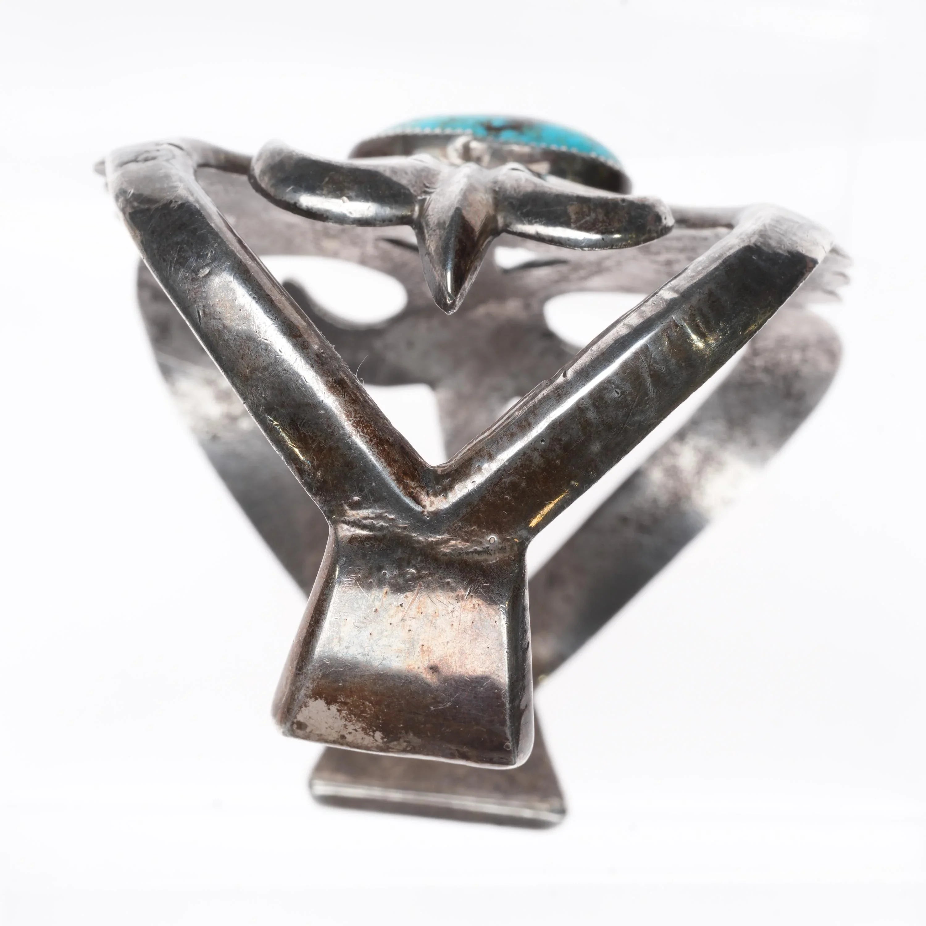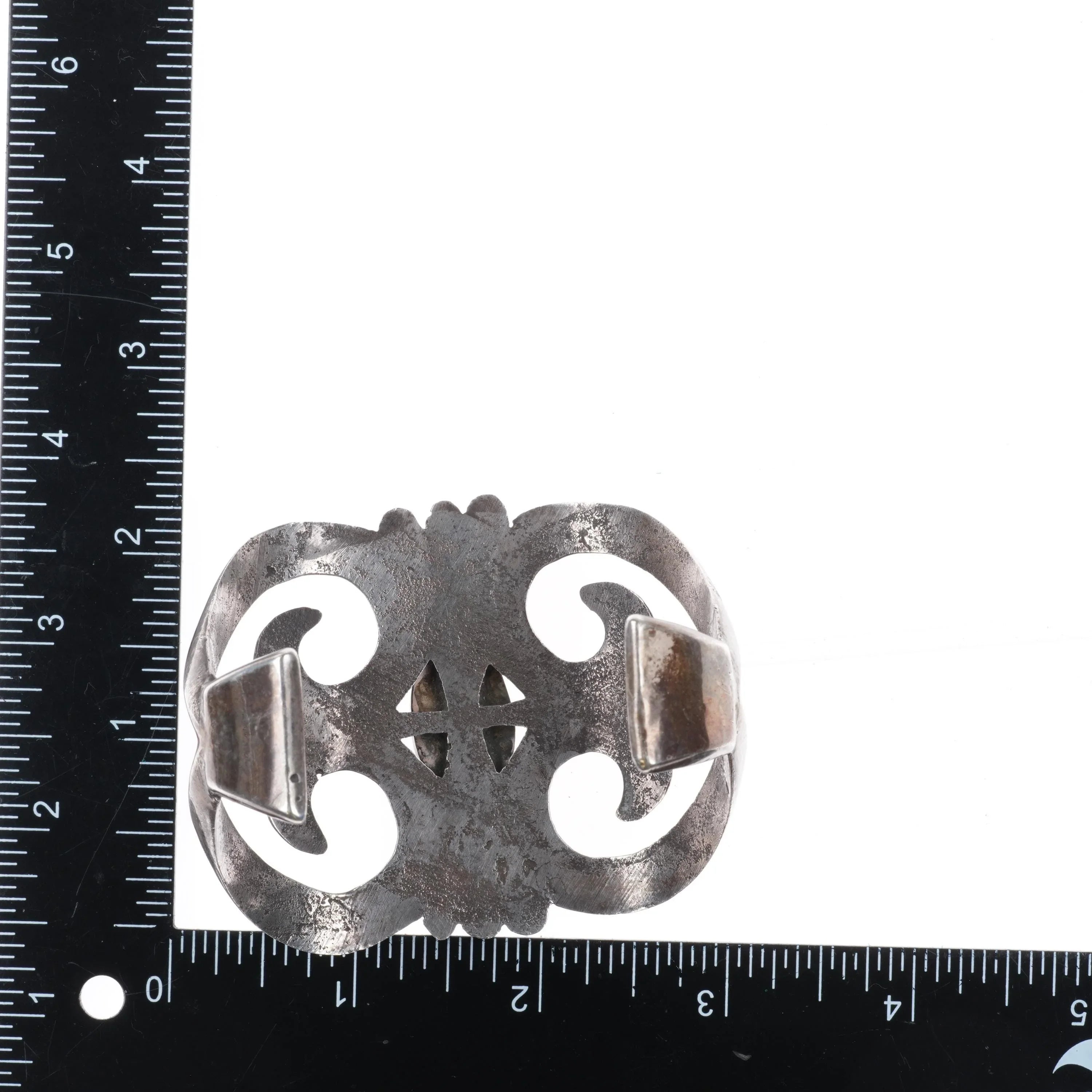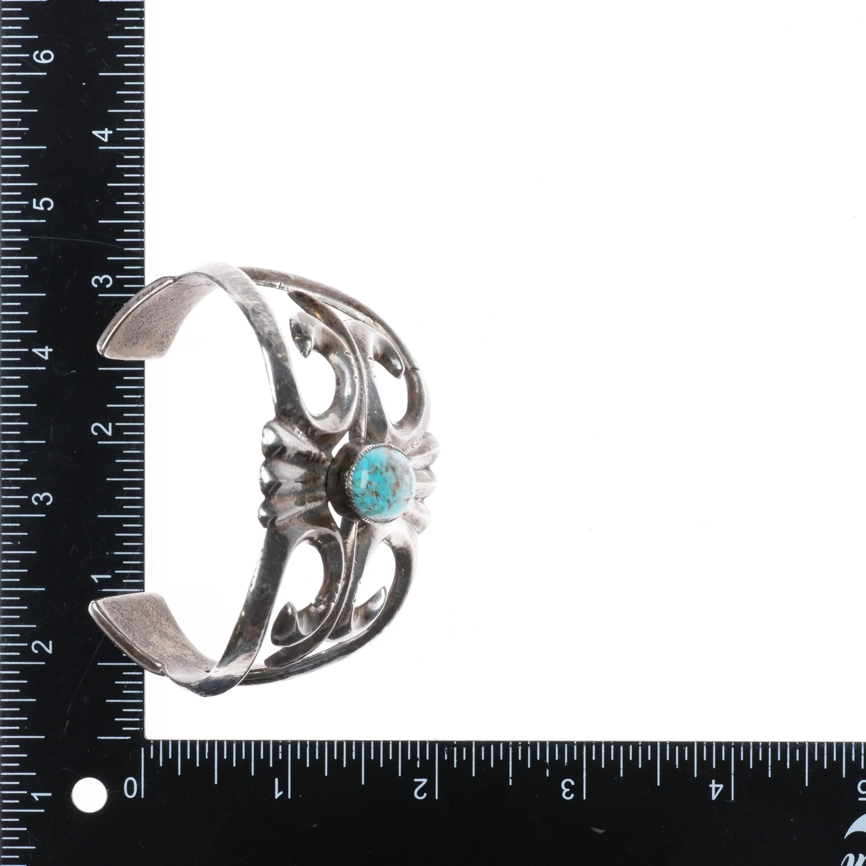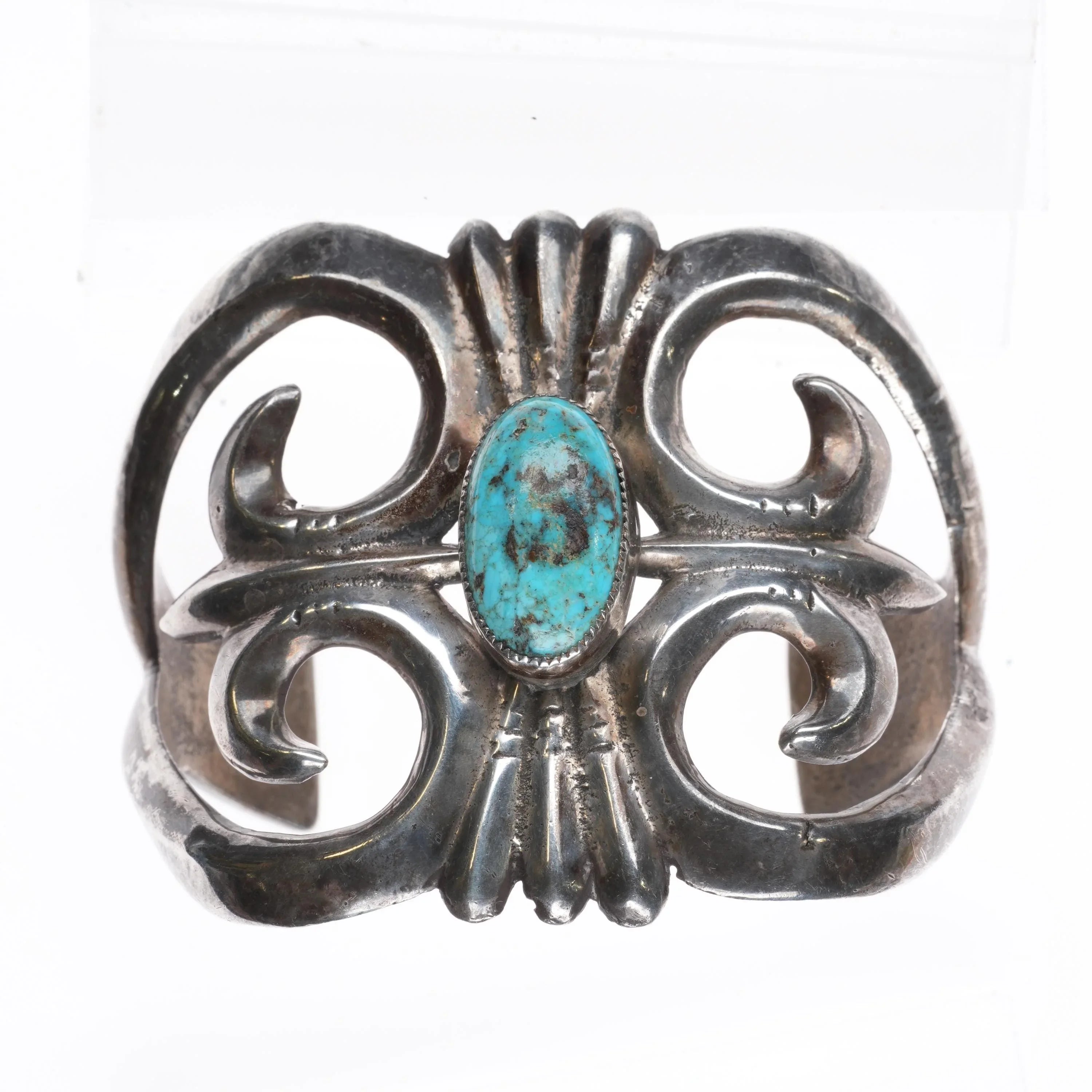 7" c1940's Vintage Navajo cast sterling silver cuff bracelet Morenci turquoise