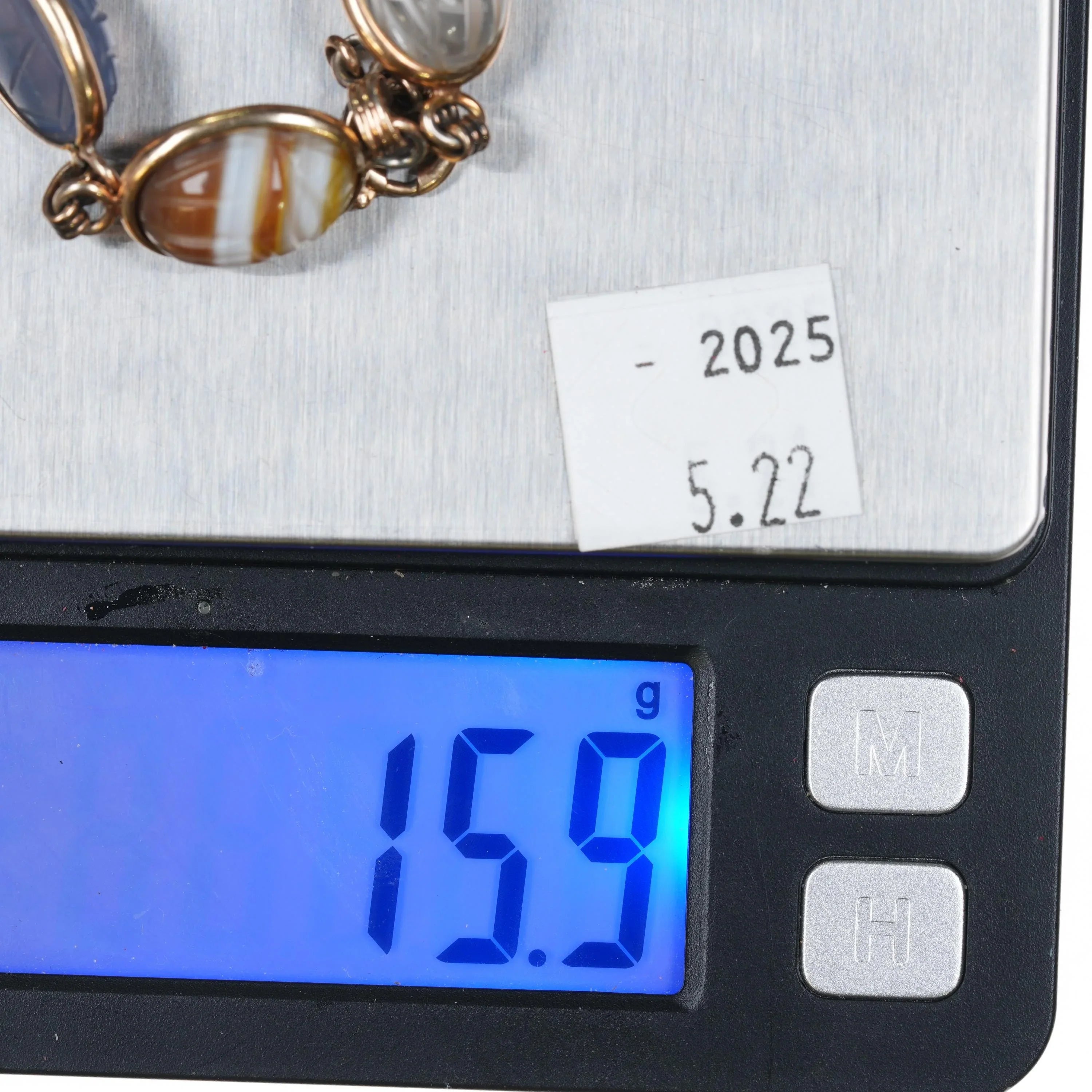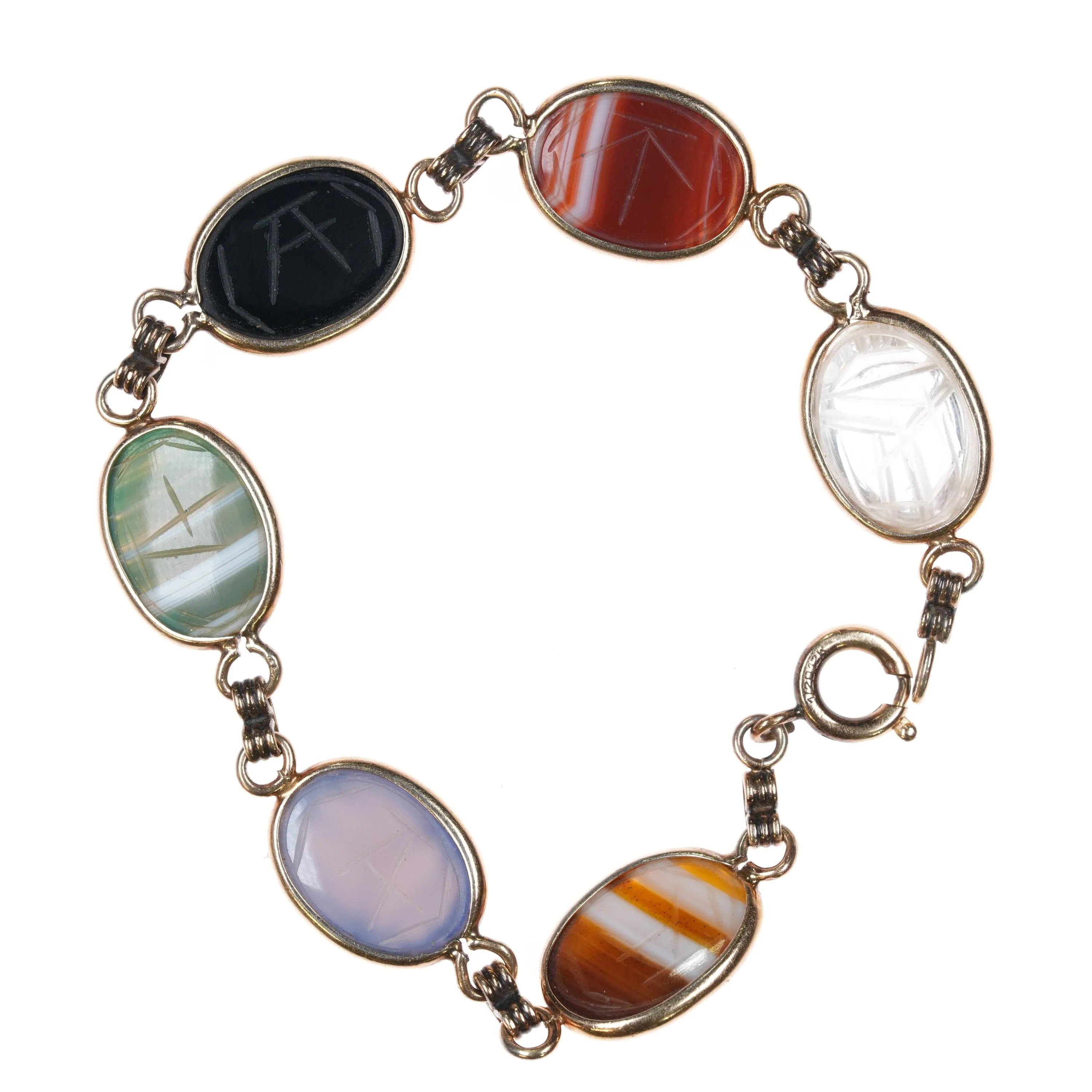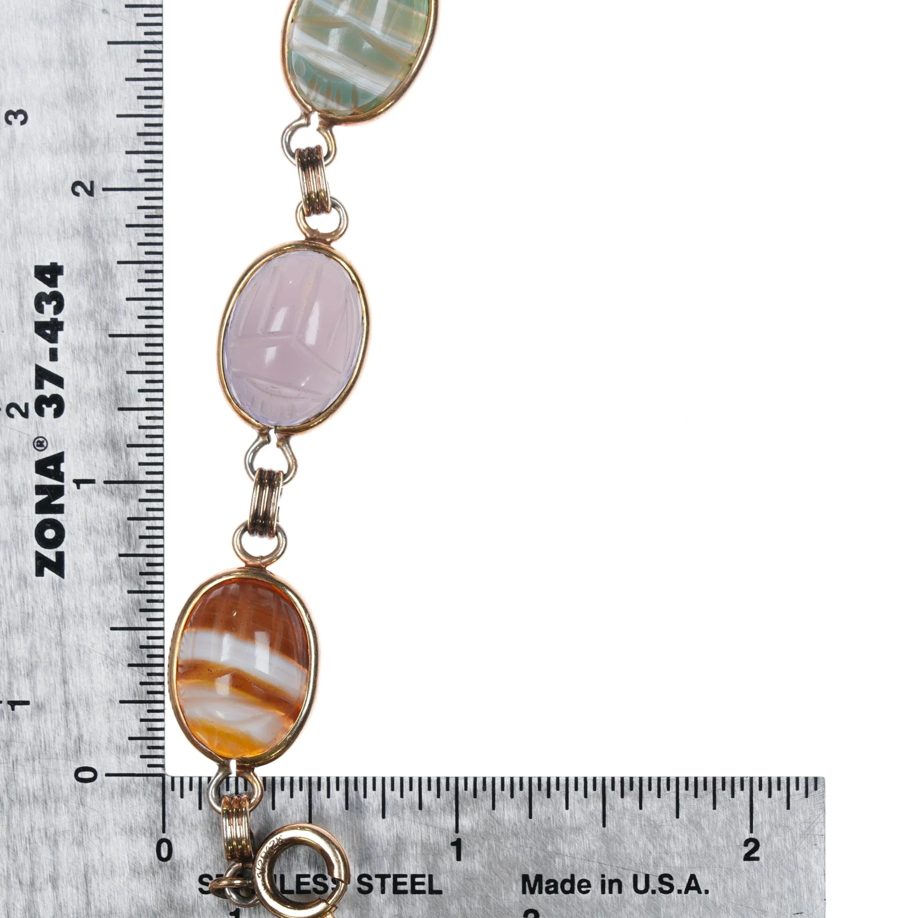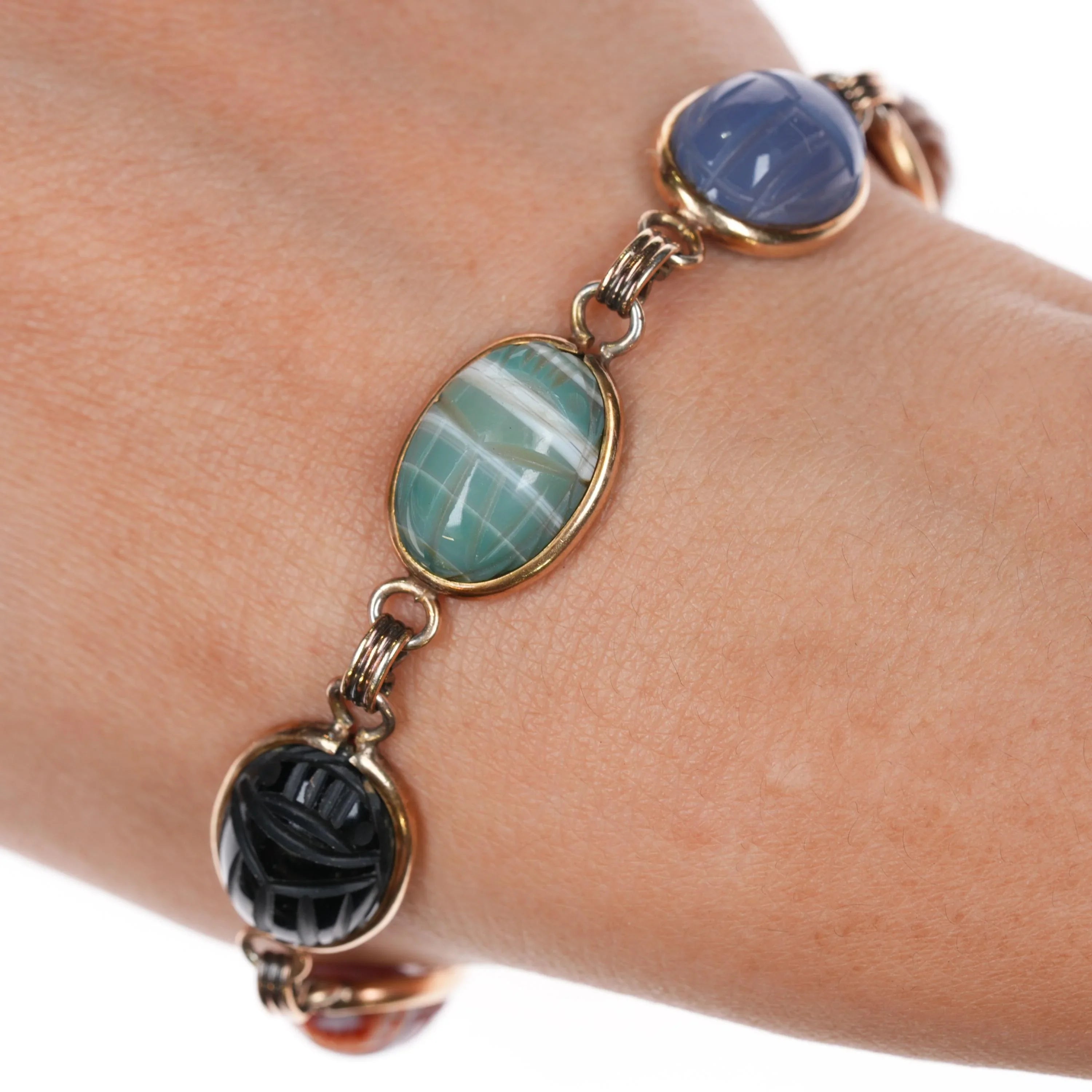7" vintage 12k gold filled carved stone scarab egyptian revival link bracelet