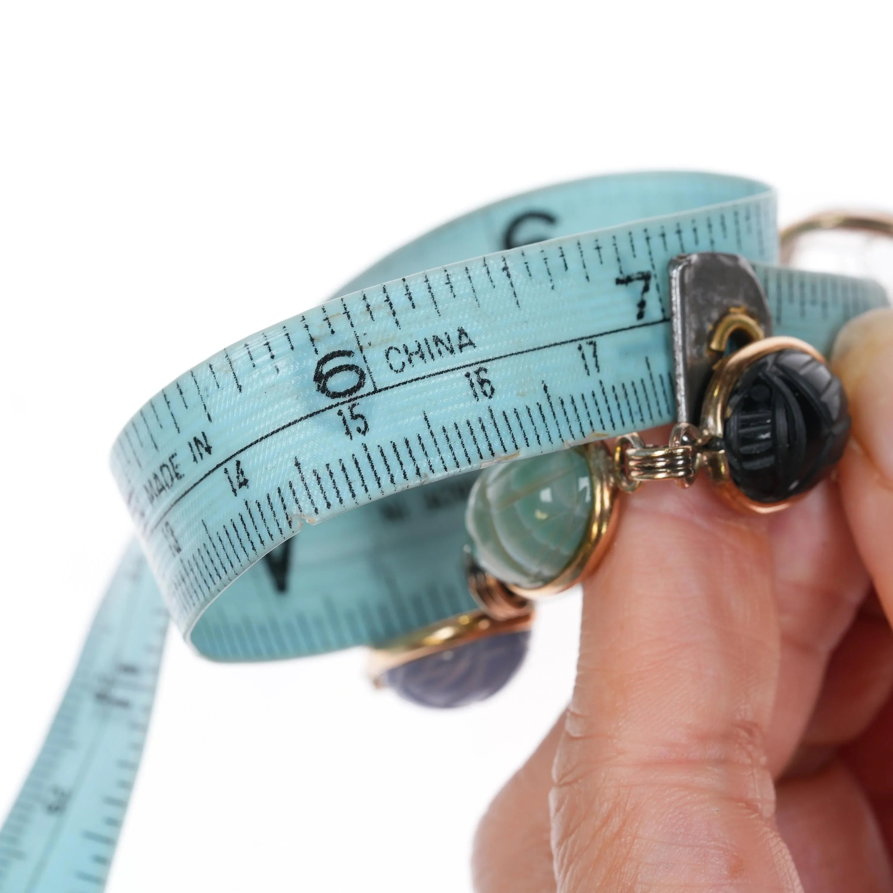 7" vintage 12k gold filled carved stone scarab egyptian revival link bracelet. Weight and measurements in pictures Marked as shown, circa third quarter of the 20th century. clean vintage condition.