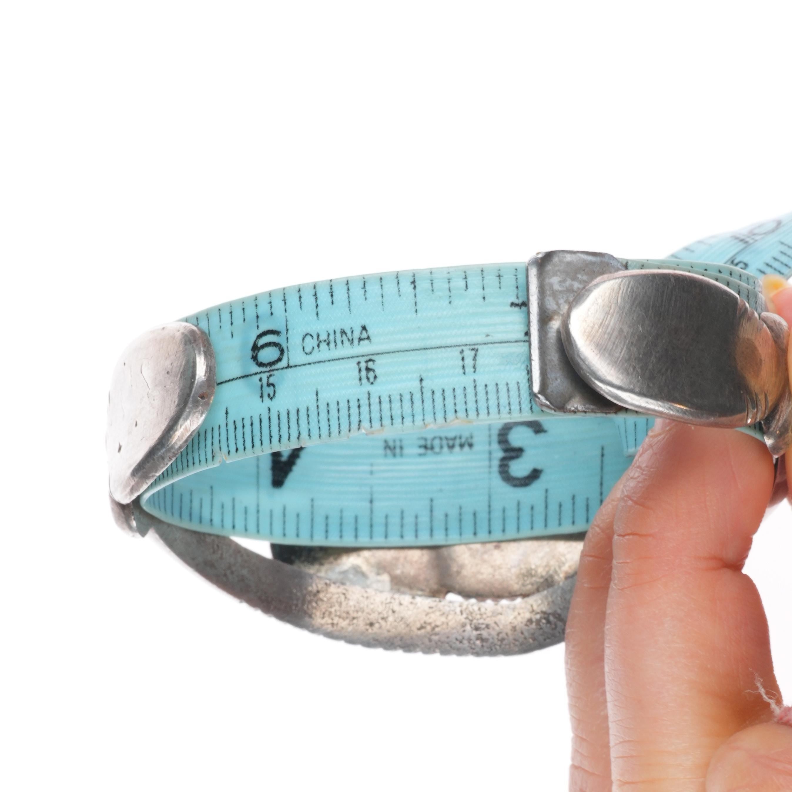 Bracelets are shown in the photos with a tape measure inside the bracelet, other photos will typically show the gap size. The size at the beginning of the title includes the gap. Almost all bracelets that don‘t have inlay work should be adjustable by at least .25", please refer to pictures for the gap size to see if it would work if slightly adjusted as the gap would change.