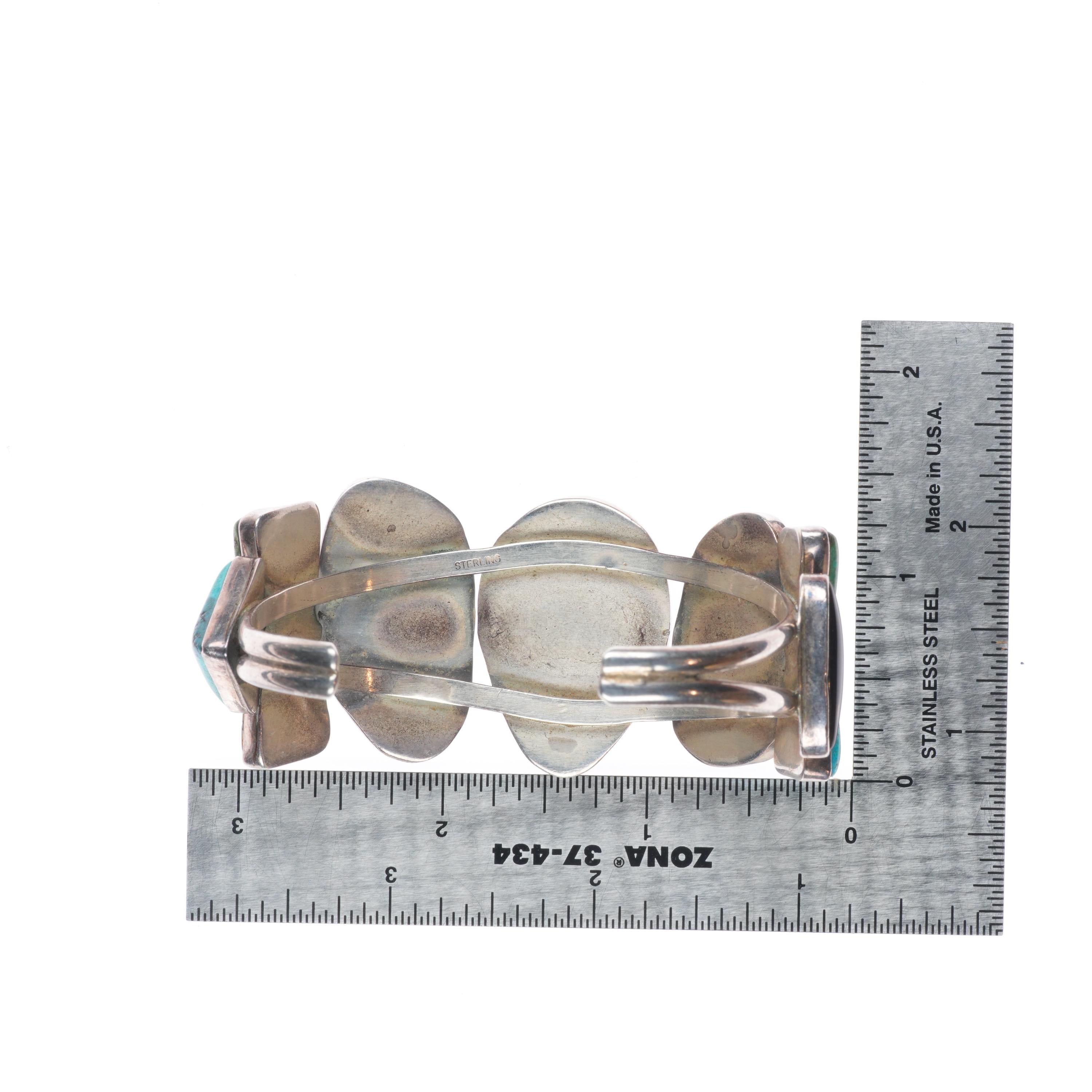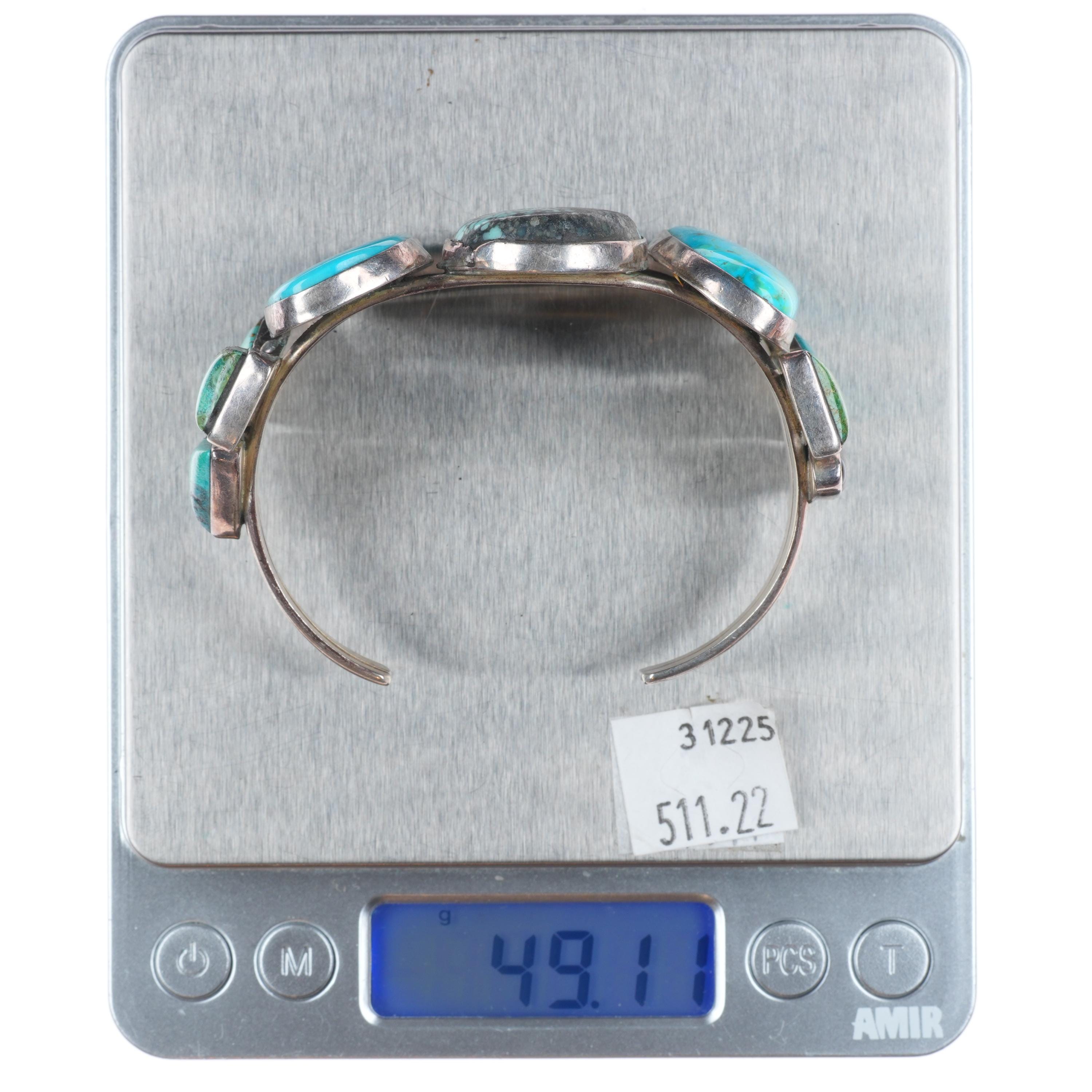 7" Vintage Southwestern/Navajo sterling silver multimine turquoise cuff bracelet. Tested and guaranteed solid sterling silver with weight and measurements in pictures. Circa last quarter of the 20th century with some expected age appropriate wear.
