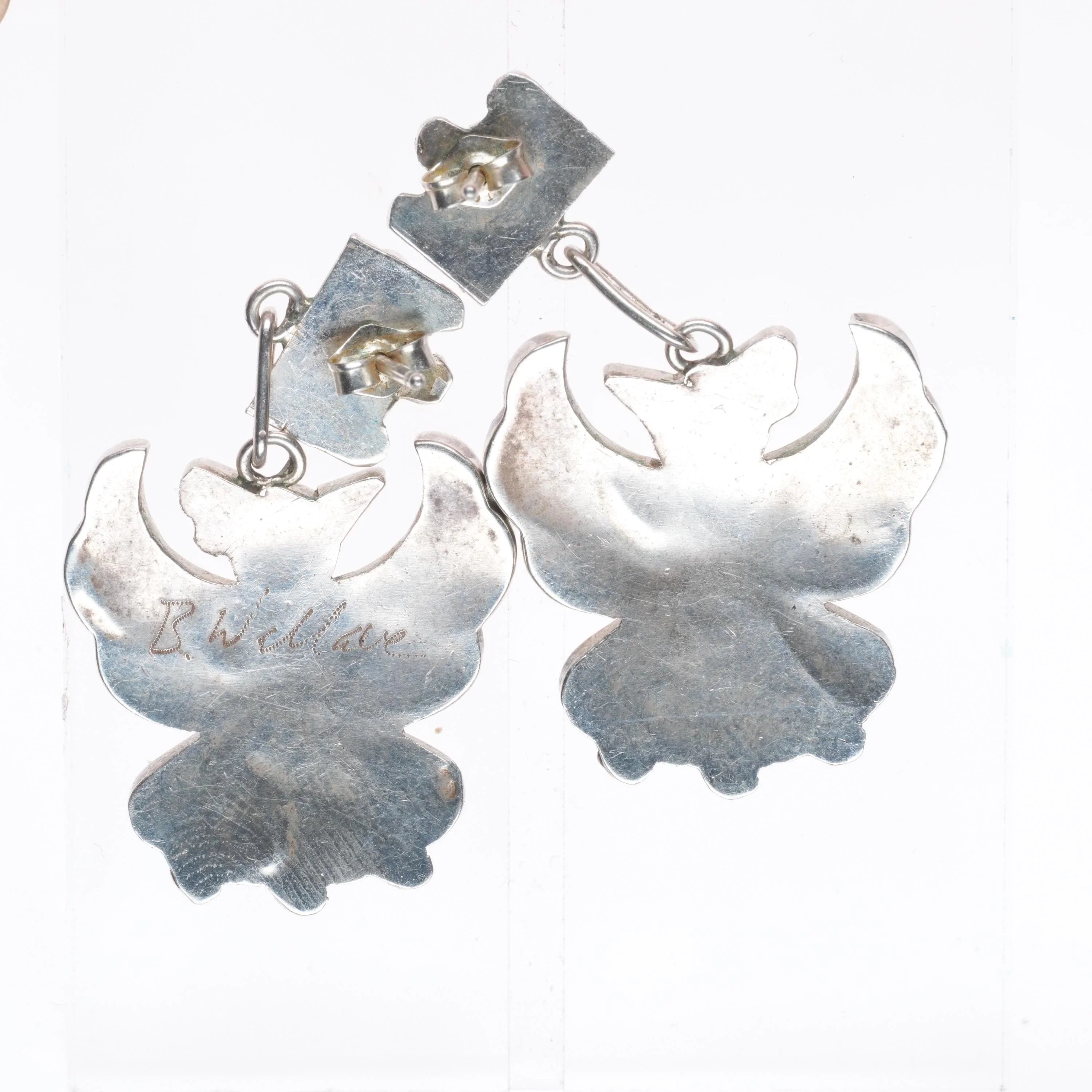 B Wallace Zuni sterling silver channel inlay thunderbird dangle earrings