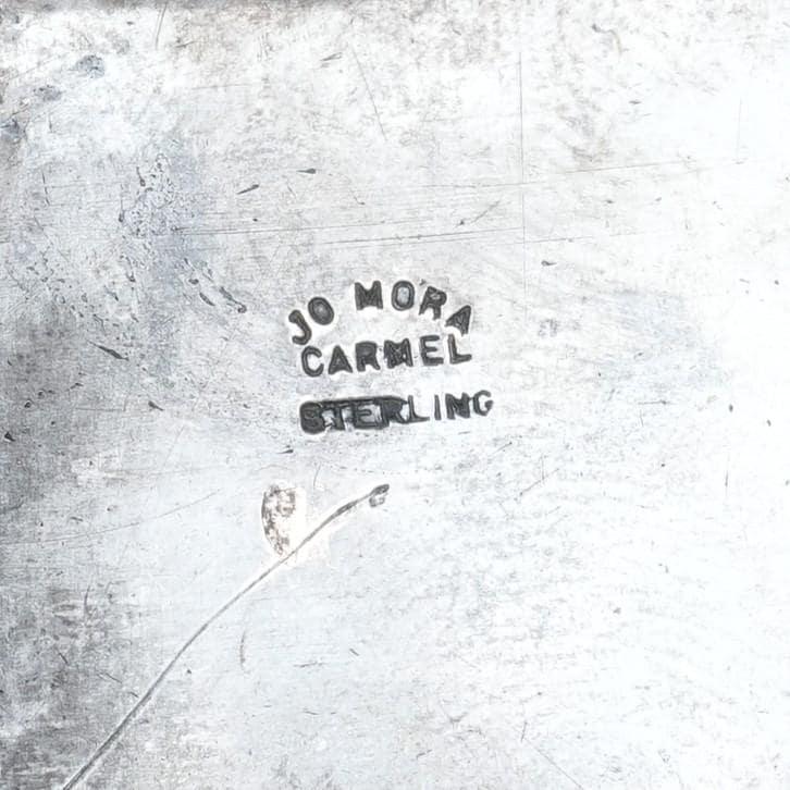 c1940‘s Joe Mora Carmel CA Sterling silver Art Deco belt buckle. Solid sterling silver with weight and measurements in pictures, no damage.