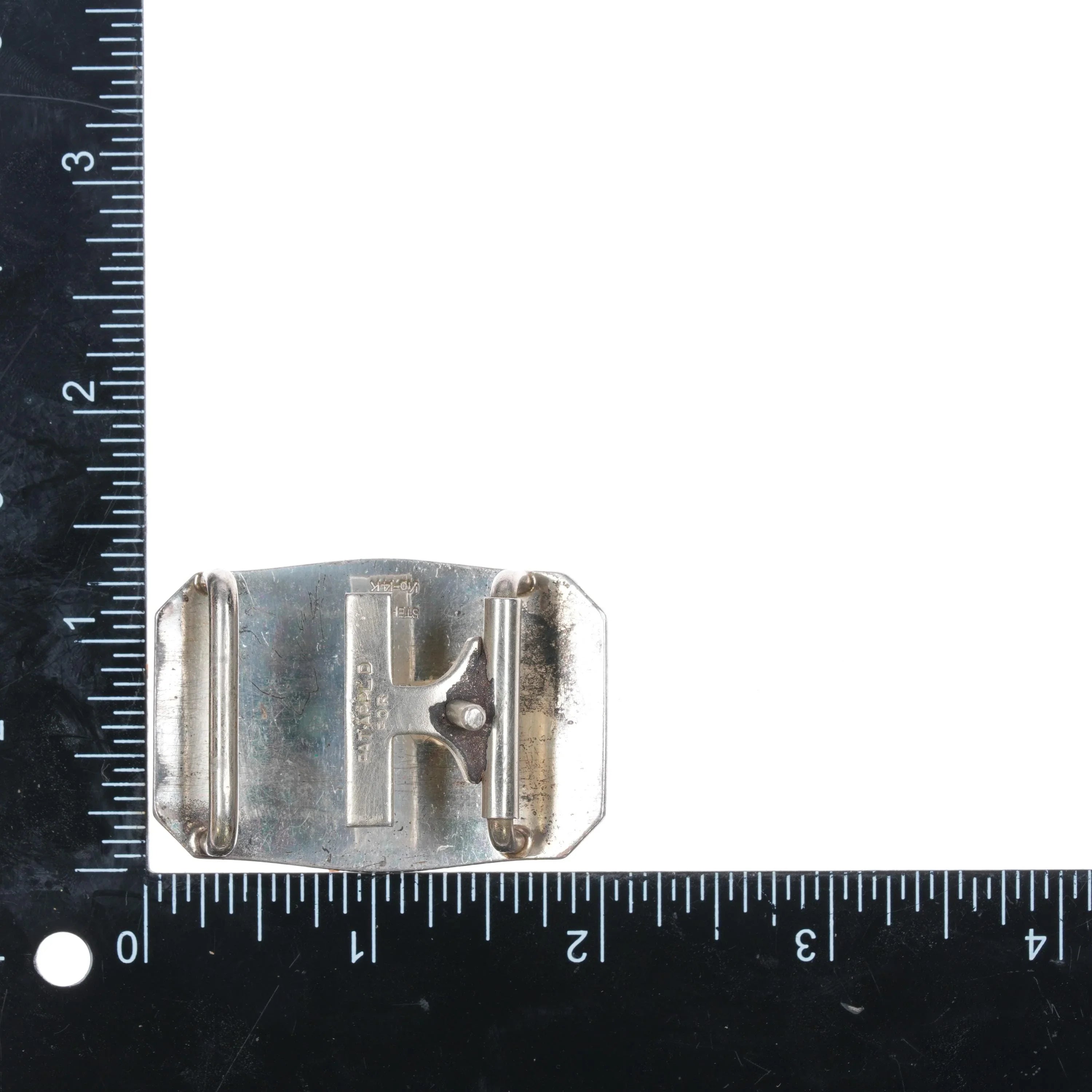 c1950‘s Keyston Bros SF CA Sterling Hunting dog belt buckle gold filled. Solid sterling silver with weight and other measurements in the pictures. Fits up to a 1" belt, no issues. No damage, minimal wear.