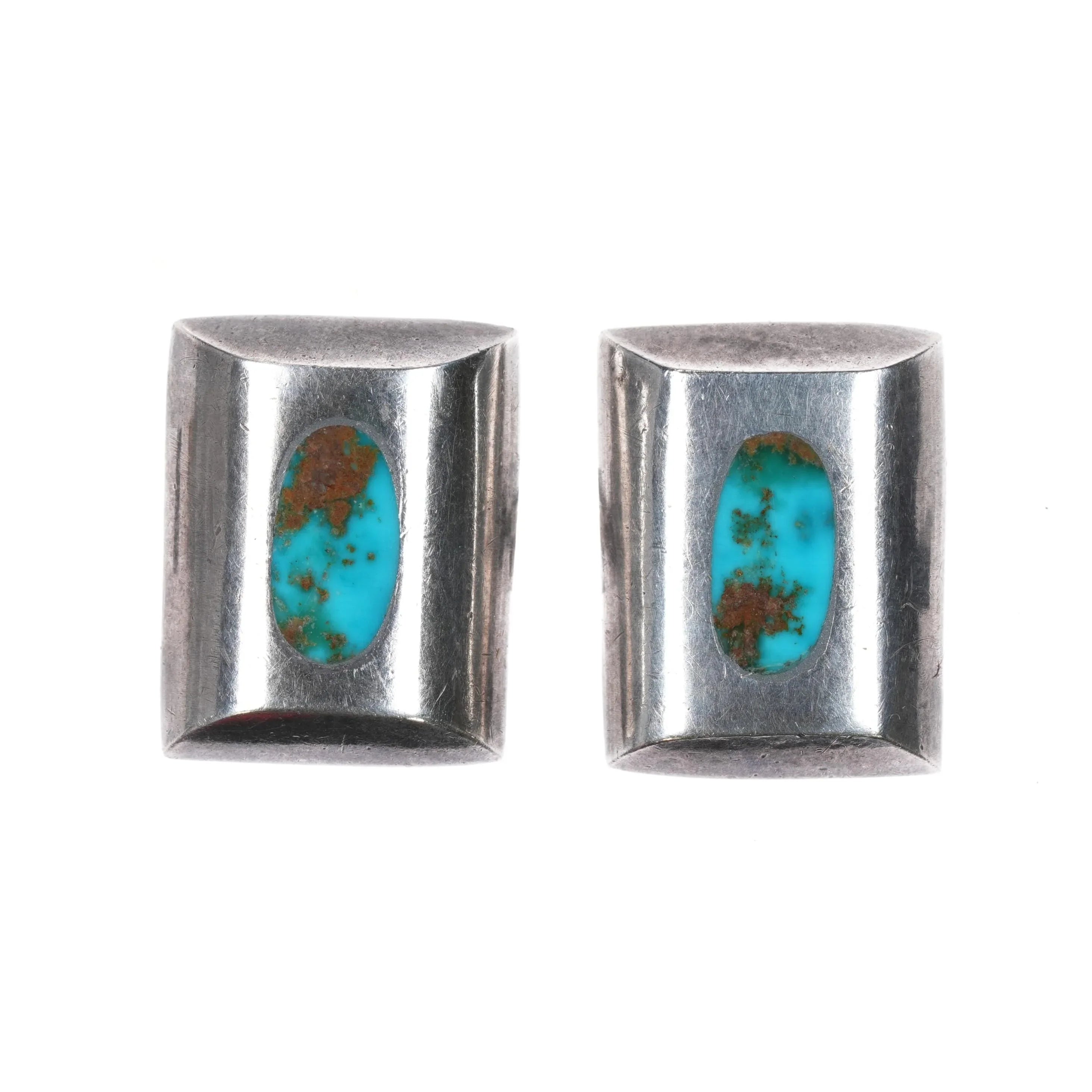 c1950‘s Modernist sterling high grade turquoise cufflinks. Weight and measurements in the pictures. Solid sterling silver, unmarked. Very high quality workmanship and stones
