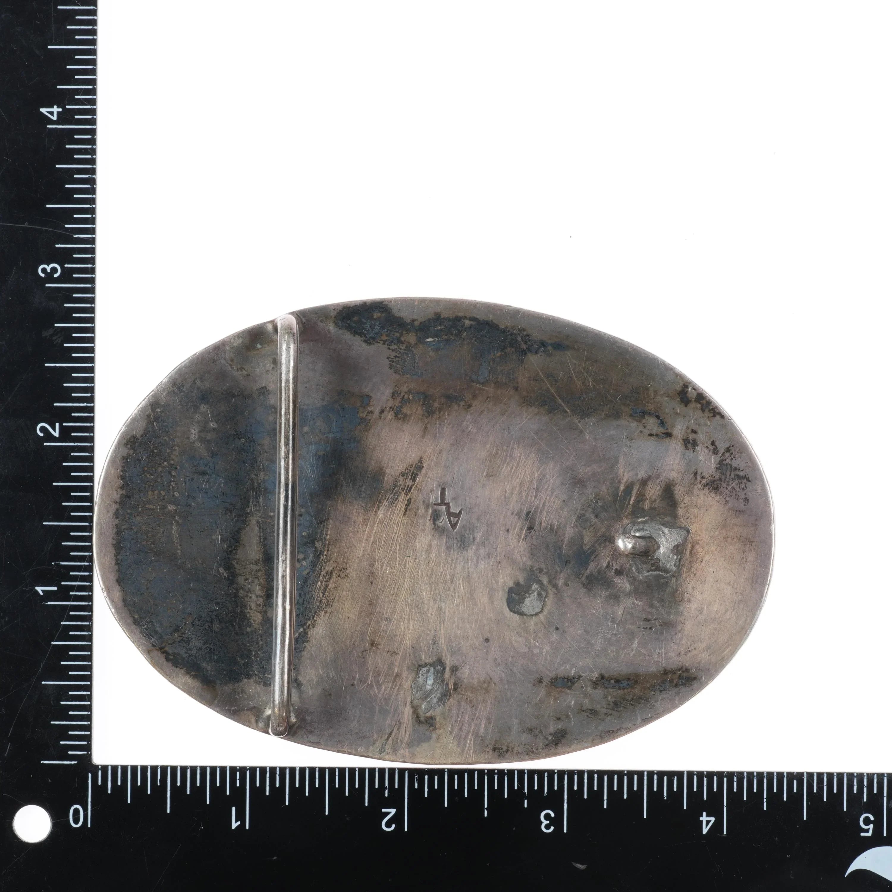 c1960 Huge AT Navajo sterling silver, turquoise, coral feather belt buckle