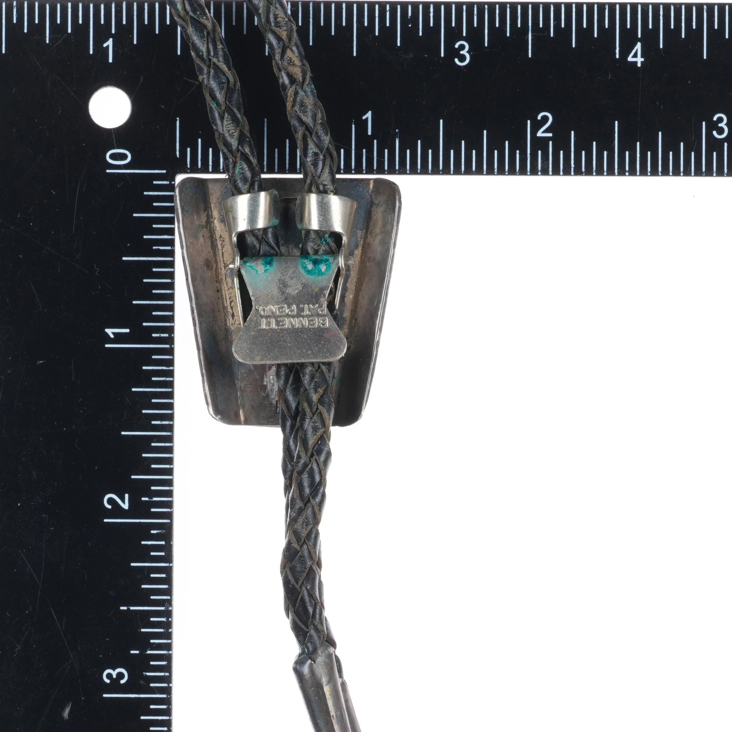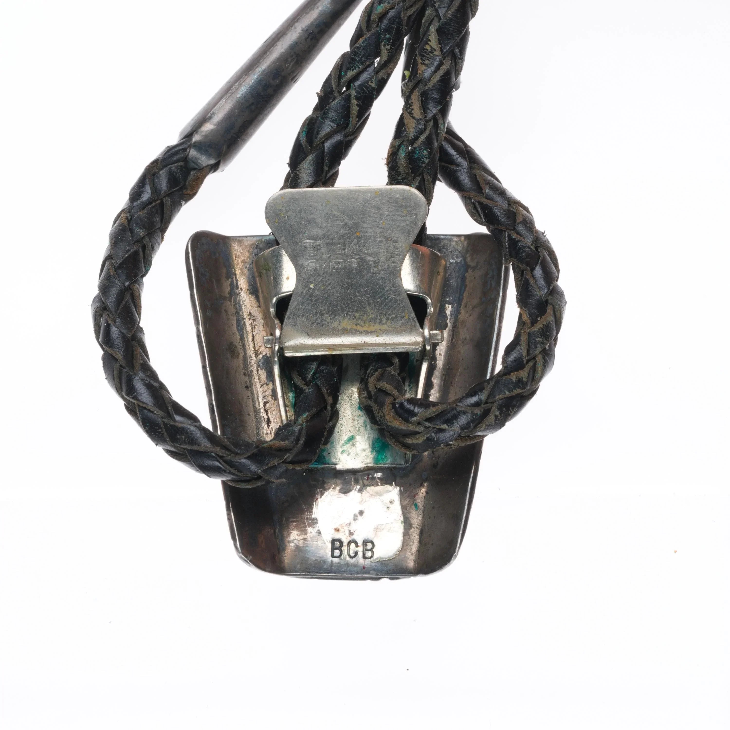 c1970 BCB Navajo hand chiseled sterling silver turquoise shadowbox bolo tie