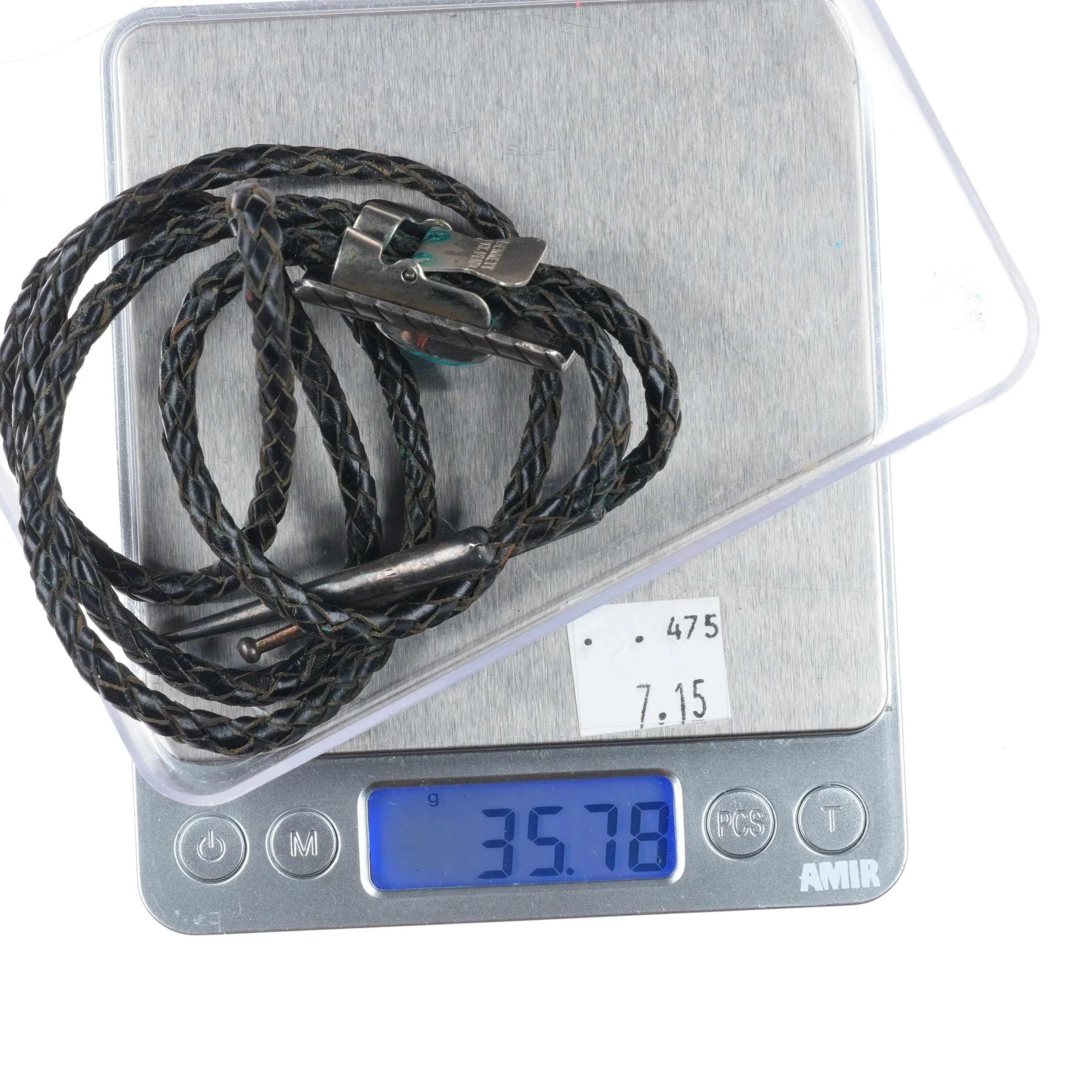 c1970 BCB Navajo hand chiseled sterling silver turquoise shadowbox bolo tie.. Tested and guaranteed solid sterling silver slide and tips. Weight and measurements in pictures. Great bolo, 39" long with no issues. Tray is tared out, so weight shown is just the bolo of course.